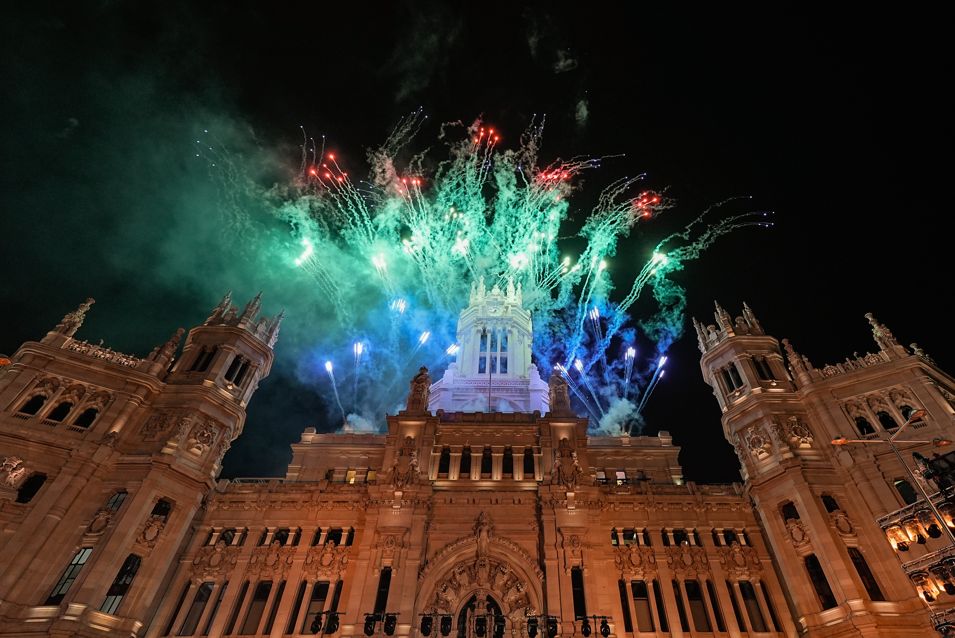 Tras las palabras de los Reyes Magos y como despedida hasta el próximo año, el cielo de Madrid se ha iluminado con un gran espectáculo pirotécnico, acompañado de la pieza musical El Mesías de Handel como banda sonora.