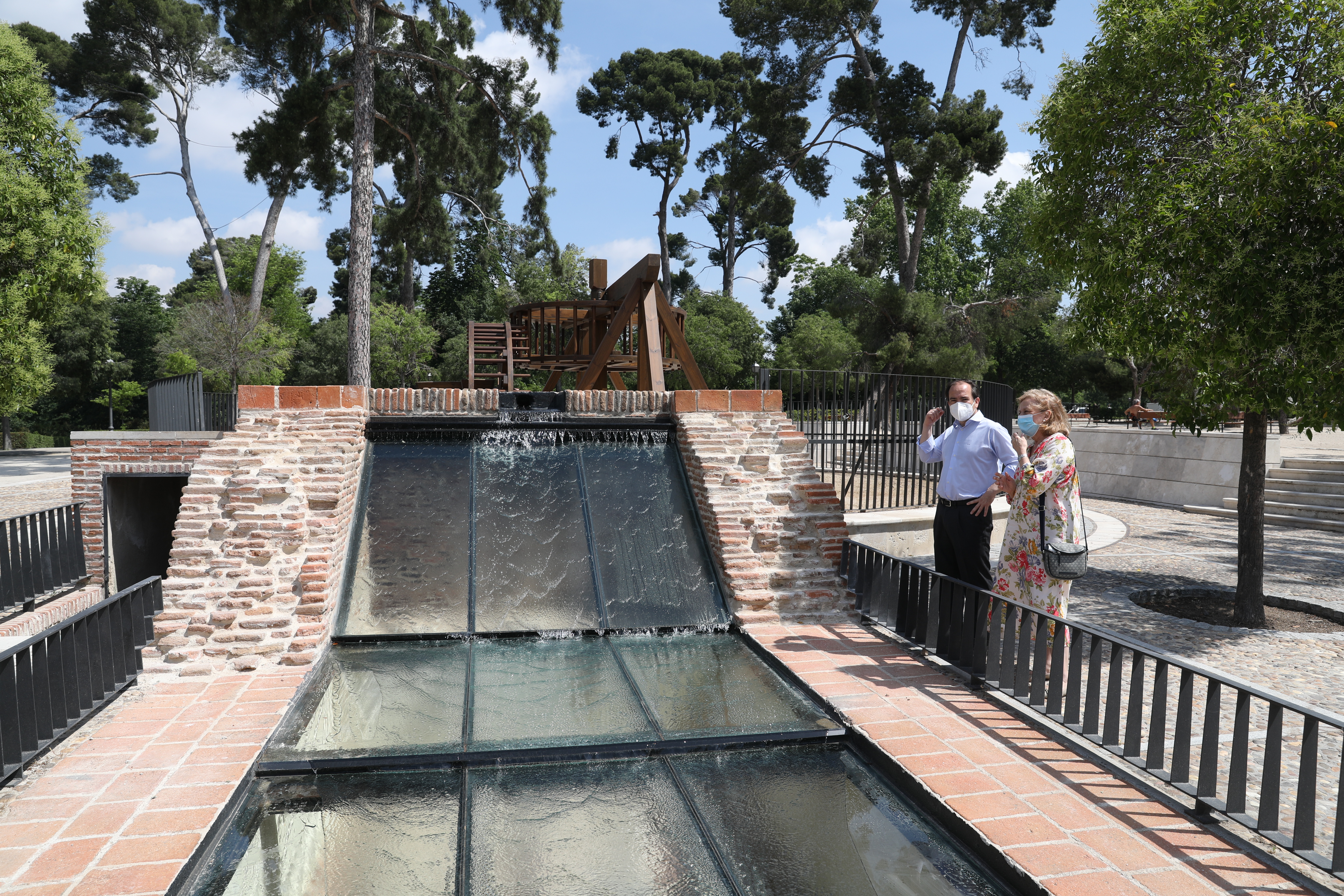 El Real Sitio del Buen Retiro, establecido en el año 1637, necesitó desde sus inicios de abundante agua tanto para el riego de sus jardines y arboledas como para el servicio de los estanques y rías. Este suministro se obtenía por medio de varias norias distribuidas por el recinto, levantadas en los primeros años de la construcción de los jardines o, incluso, reutilizando otras anteriores empleadas en las antiguas huertas. El Ayuntamiento de Madrid ha recuperado la noria más emblemática del parque y hoy el delegado de Medio Ambiente y Movilidad, Borja Carabante, la ha inaugurado con su puesta en marcha de manera ininterrumpida para que los visitantes puedan disfrutar del espectáculo que supone el rodaje de esta pieza única y original que forma parte de la historia de la ciudad.