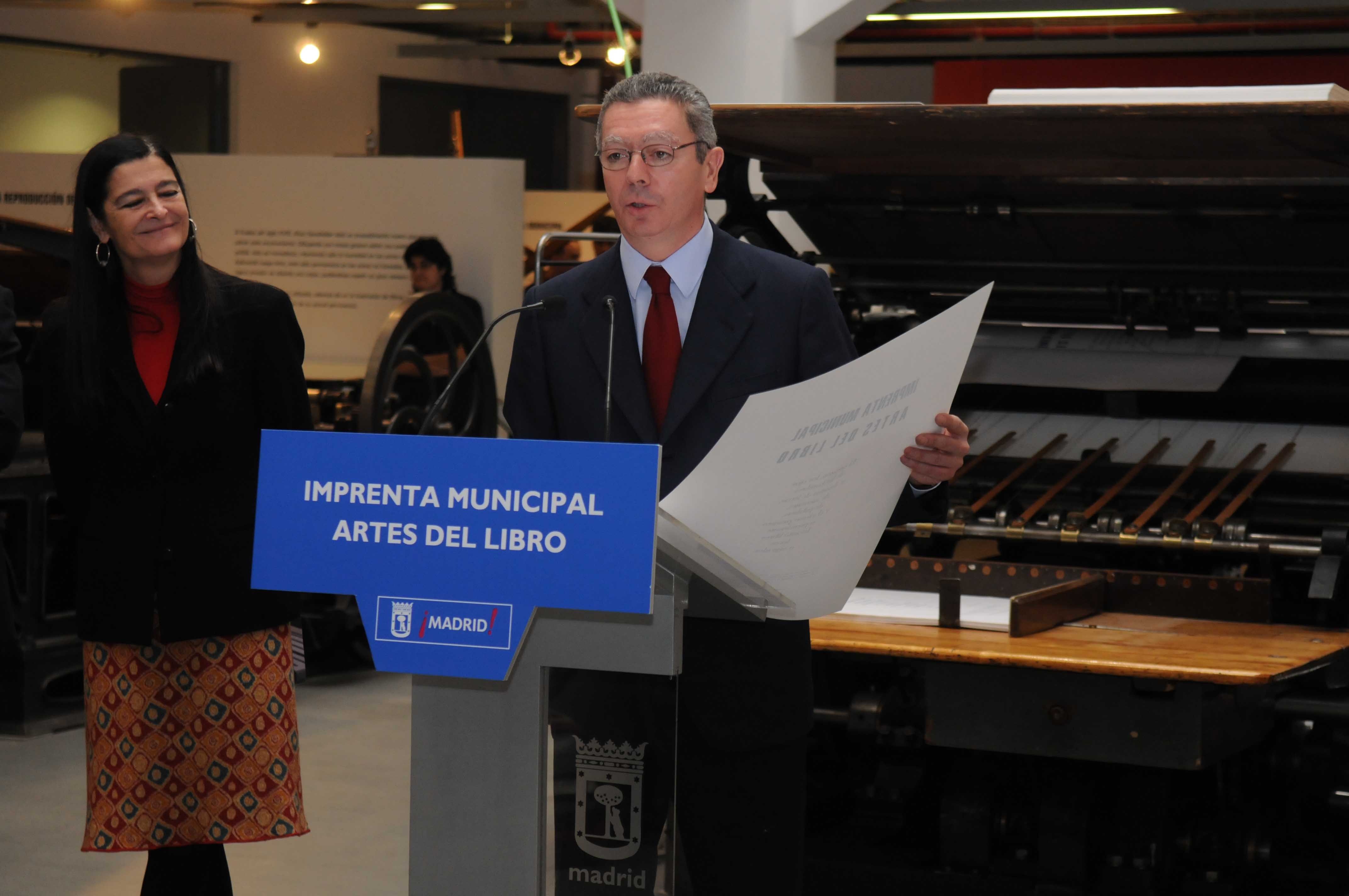 Madrid cuenta a partir de hoy con una nueva institución cultural que conjuga el pasado y el presente de las artes gráficas. Se trata de la Imprenta Municipal-Artes del Libro, un centro que hoy ha inaugurado el alcalde, Alberto Ruiz-Gallardón, y ubicado en el número 15 de la calle de Concepción Jerónima, en pleno corazón de la ciudad. Este equipamiento cultural, ha explicado Gallardón, además de incluir una sala de exposiciones con unos fondos que suman más de 3.000 piezas de hasta 200 años de antigüedad, será un espacio en el que los ciudadanos podrán conocer soportes y sistemas de impresión tradicionales.