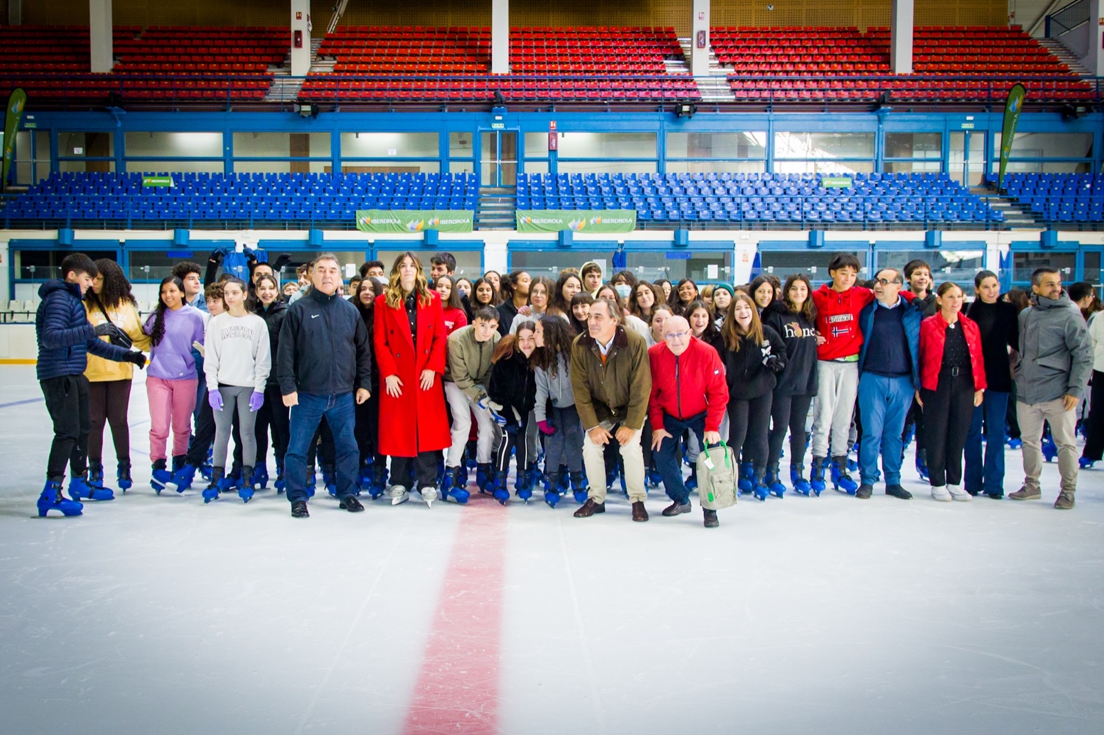 La delegada de Deporte del Ayuntamiento de Madrid, Sofia Miranda, ha asistido hoy a la clase que la siete veces Campeona de España de Danza sobre Hielo y patinadora olímpica, Sara Hurtado, ha impartido en el Palacio de Hielo de Madrid a 150 alumnos del IES Conde de Orgaz, en el distrito de Hortaleza, y que está enmarcada en la tercera edición del programa del Ayuntamiento ¡Chicas, el deporte nos hace poderosas!