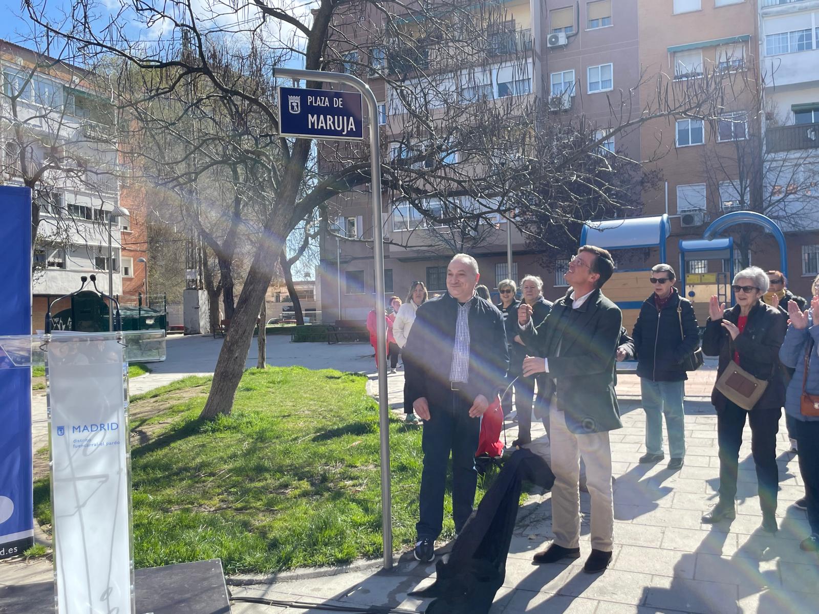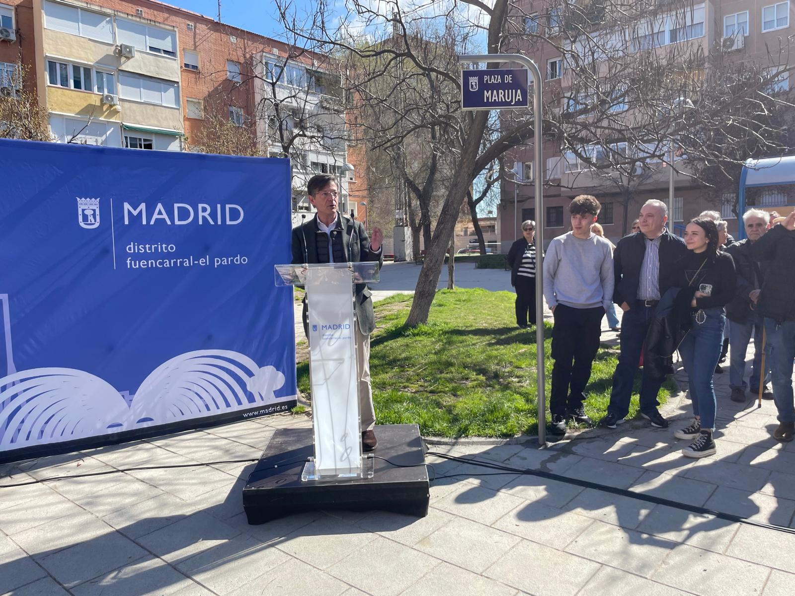 Fuencarral-El Pardo rinde homenaje desde hoy a una de sus vecinas y comerciantes más queridas con la plaza de Maruja, ubicada en el barrio de Begoña. El concejal del distrito, José Antonio Martínez Páramo, ha descubierto hoy la placa que da nombre a este espacio, situado entre las calles de Marcos de Orueta y de Ángel Múgica, cumpliendo así la propuesta aprobada por el Pleno de la junta municipal del distrito el pasado año.