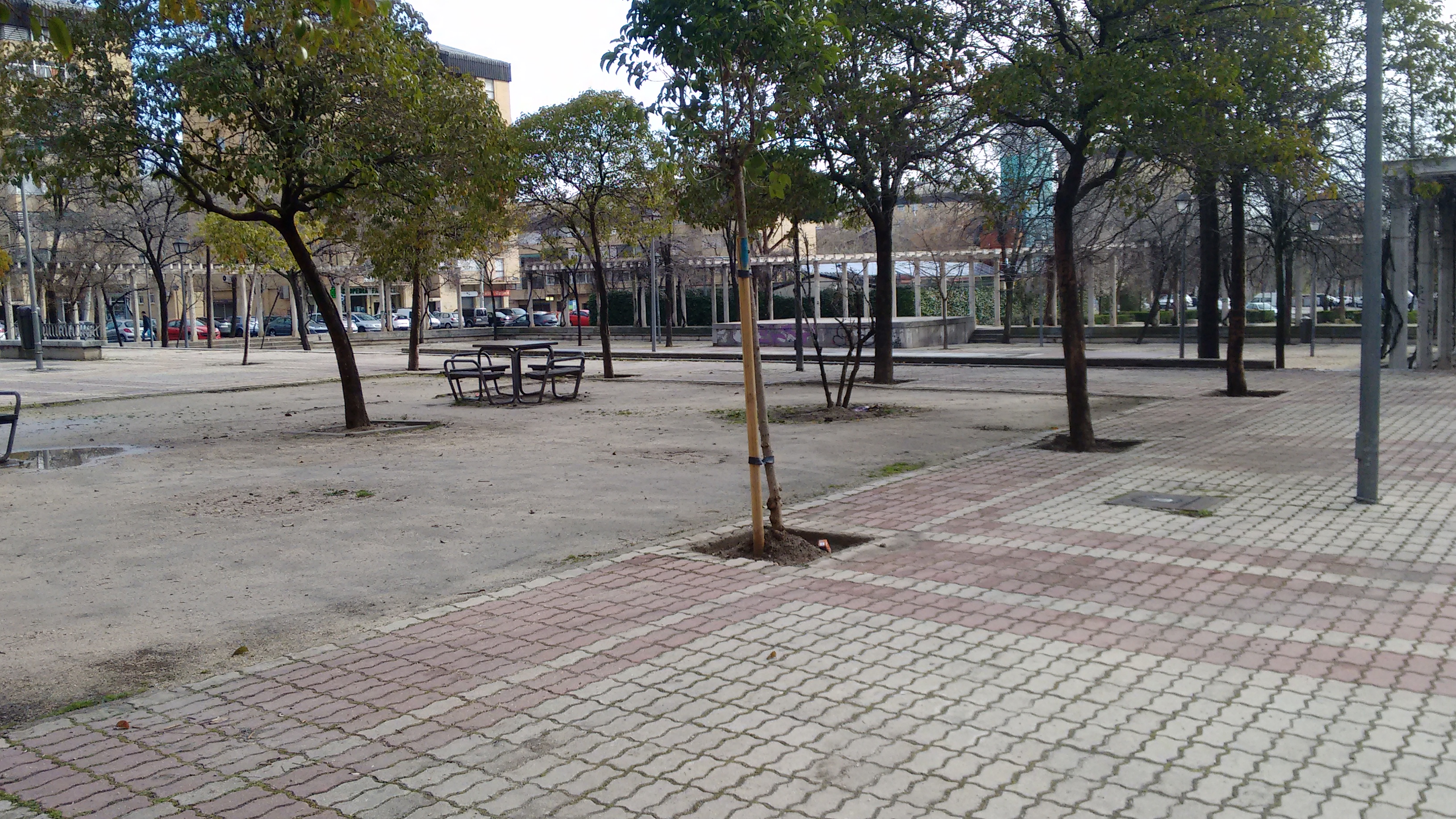 En las parcelas de la calle Oligisto se contempla realizar nuevas plantaciones de bajo mantenimiento junto a la mejora del riego por goteo y aspersión, a la vez que se instalarán bancos y zonas de sombra para fomentar el descanso de los vecinos y mejorar la estética de la zona.
