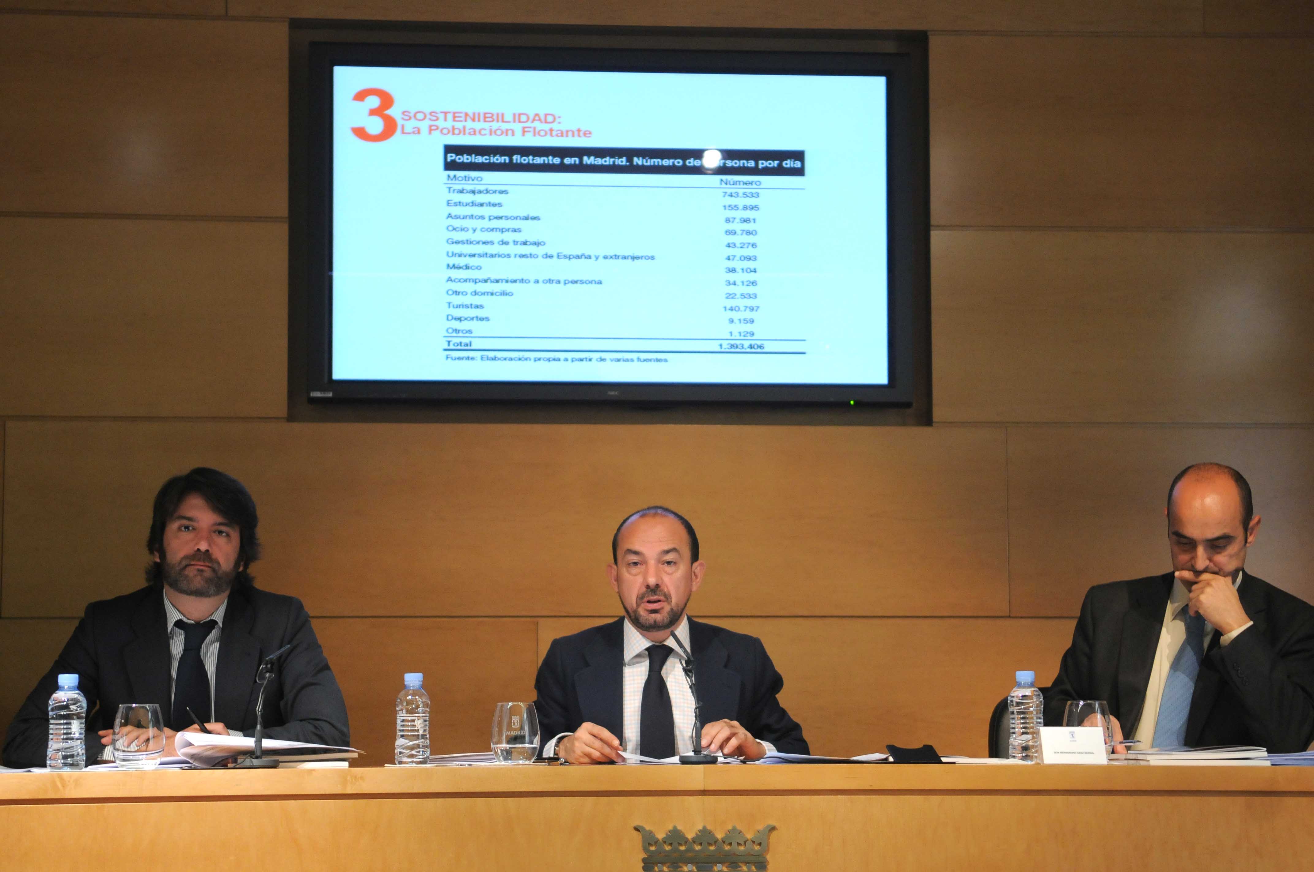 Son pocas las fuentes estadísticas que se ocupan de este fenómeno, señaló Villanueva, y la Ciudad de Madrid ha agregado al Barómetro los datos procedentes de diferentes fuentes (Seguridad Social para los trabajadores, educación para los estudiantes, estadísticas de turismo) para aproximar la cifra de la población flotante que entra en Madrid cada día.