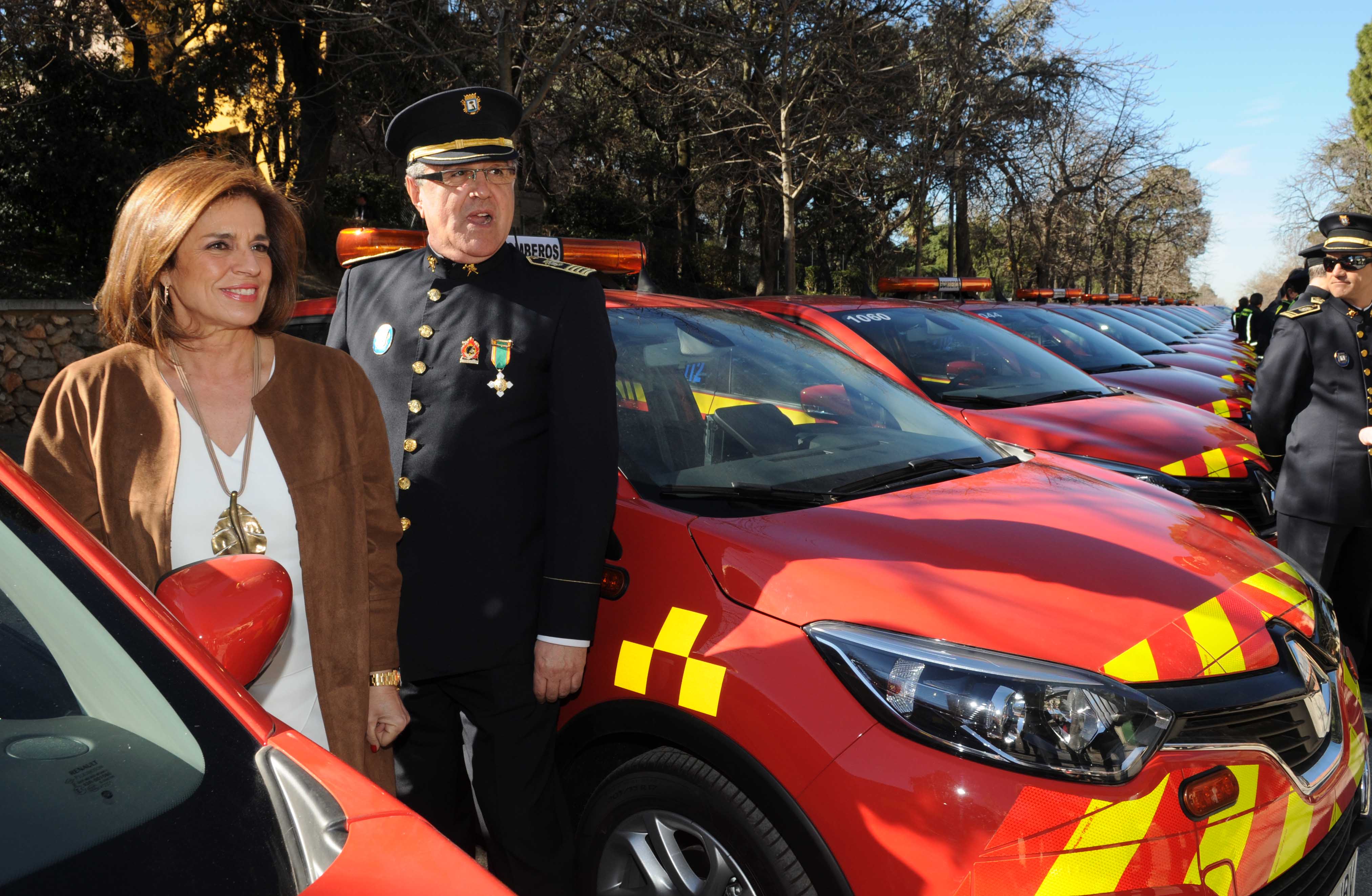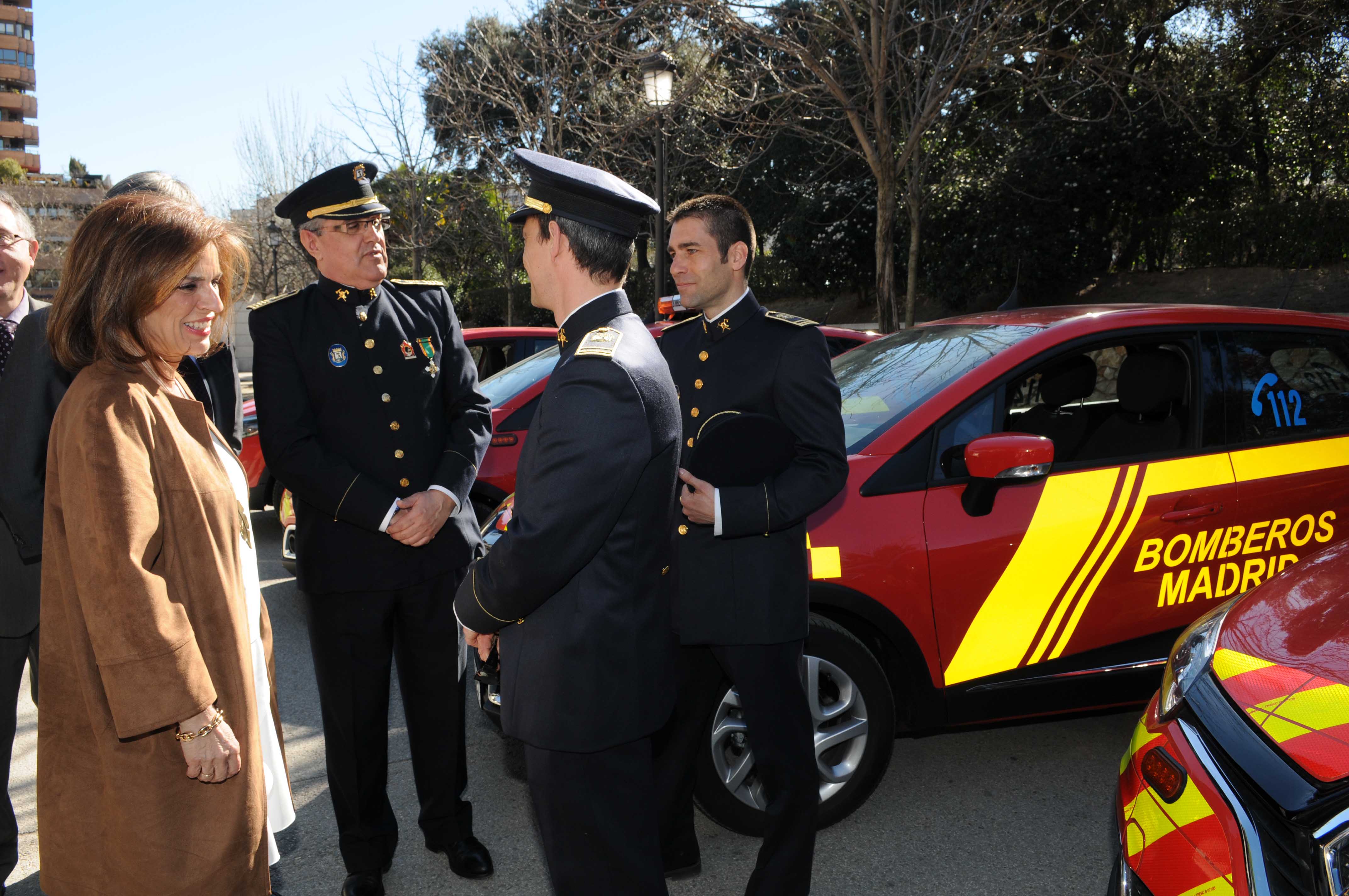 La Alcaldesa de Madrid, Ana Botella, ha asistido esta mañana a los actos de conmemoración de la festividad del patrón del Cuerpo de Bomberos, San Juan de Dios, en el que se ha rendido homenaje a María Belón y a la Fundación Vicente Ferrer, entre otros. Aprovechando el acto, Botella ha presentado los 12 nuevos vehículos sin rotativos destinados a traslados internos e inspecciones, y nueve con distintivos para los jefes de guardia y para acudir a intervenciones.