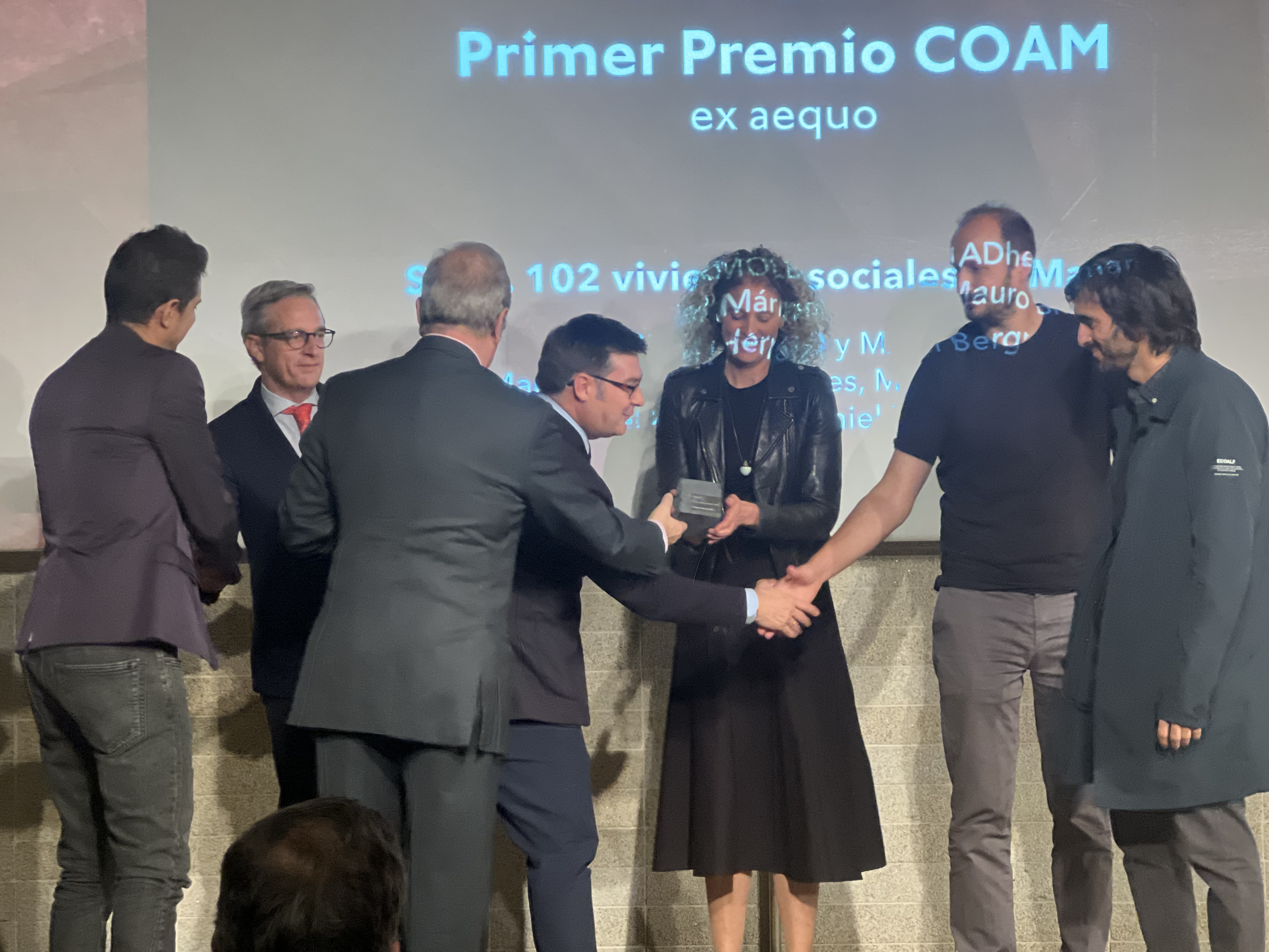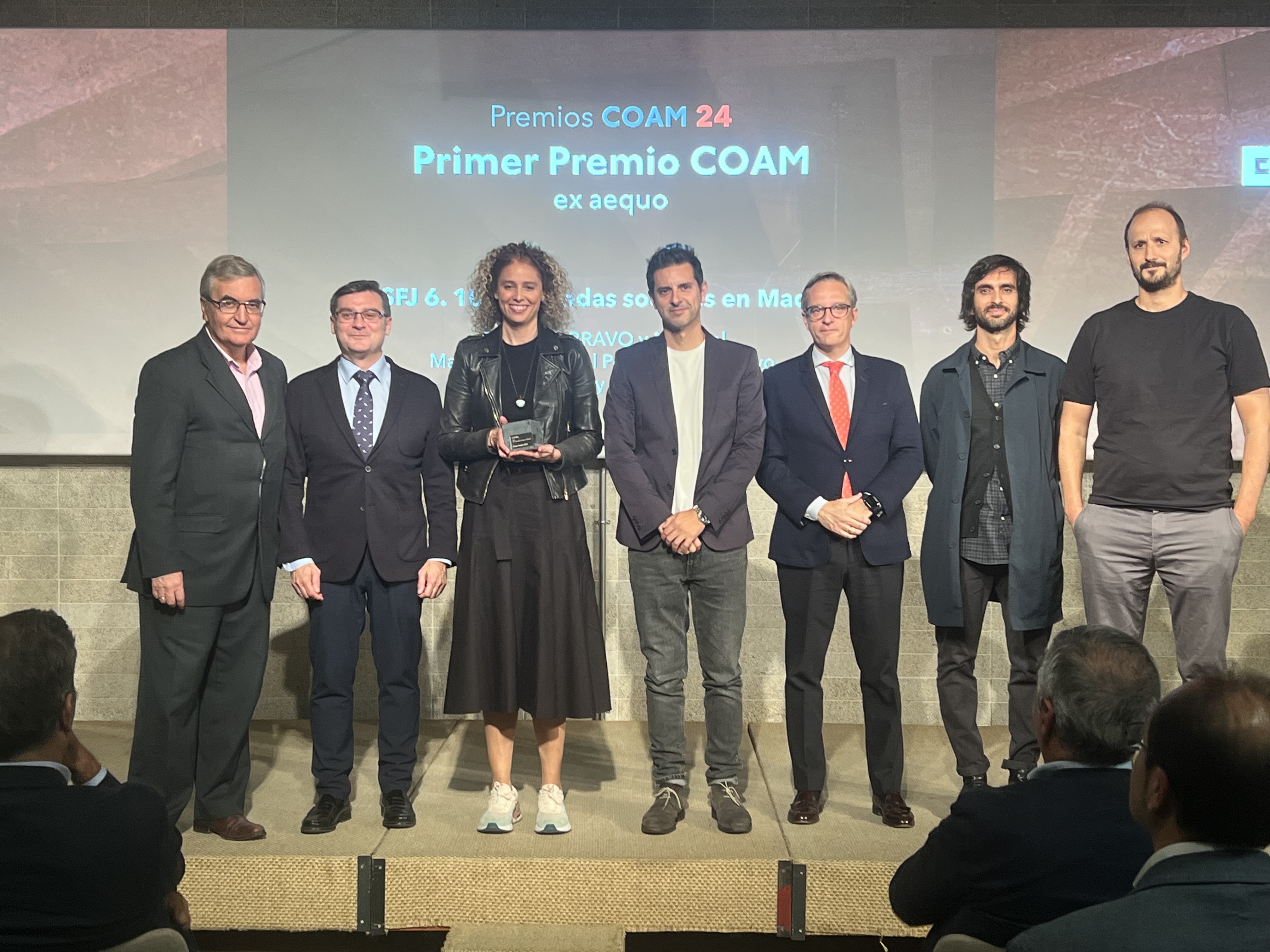 El delegado de Políticas de Vivienda y presidente de la Empresa Municipal de la Vivienda y Suelo de Madrid, Álvaro González, entregó anoche el Primer Premio COAM 2024 a los arquitectos de la promoción San Francisco Javier VI de EMVS Madrid. La obra de Miguel Herráiz, Daniel Bergman, Mauro Bravo y Marina del Mármol ha sido reconocida por el Colegio Oficial de Arquitectos de Madrid por su calidad arquitectónica y urbanística en el marco de la XXI Semana Internacional de la Arquitectura 2024.