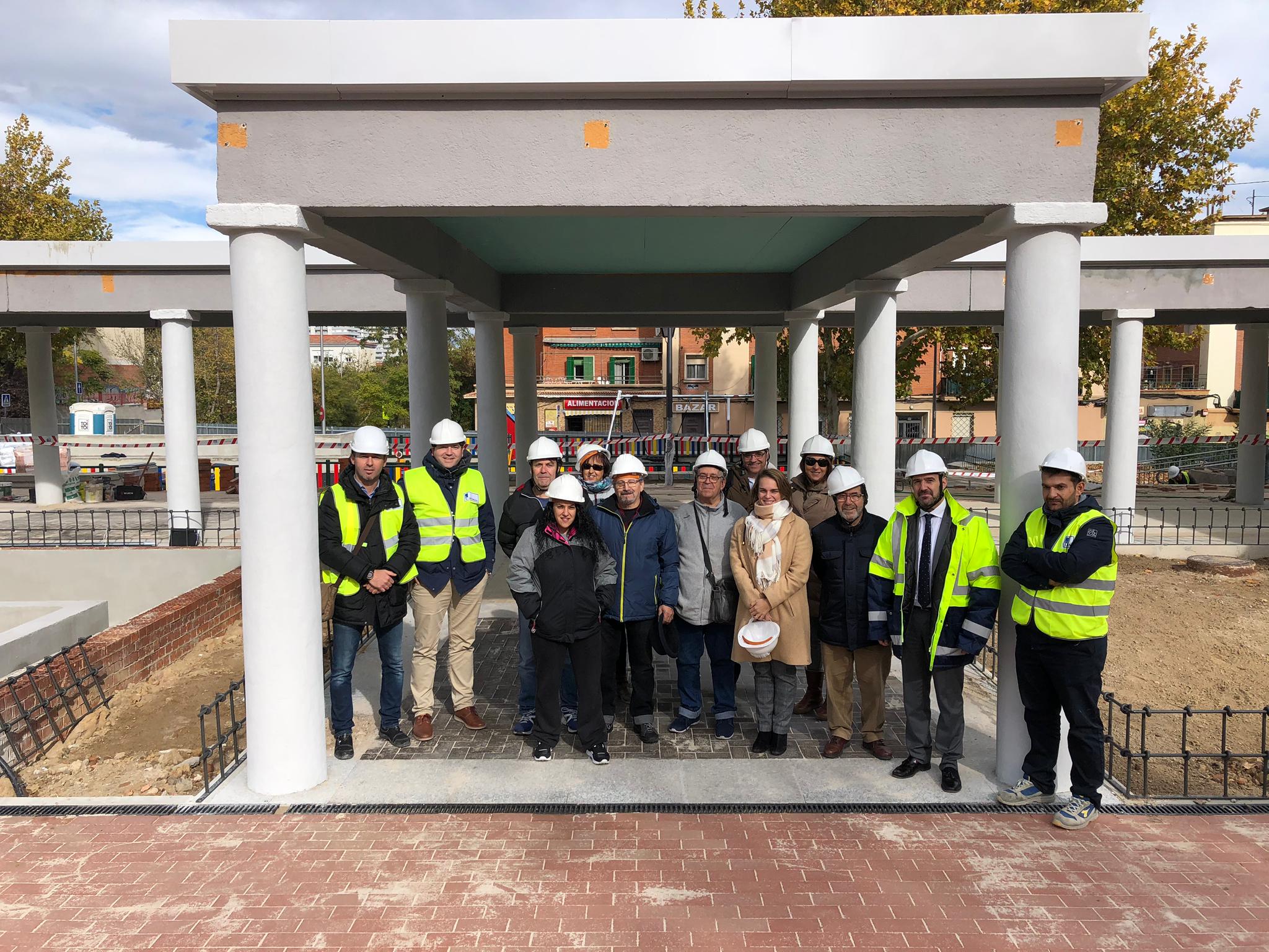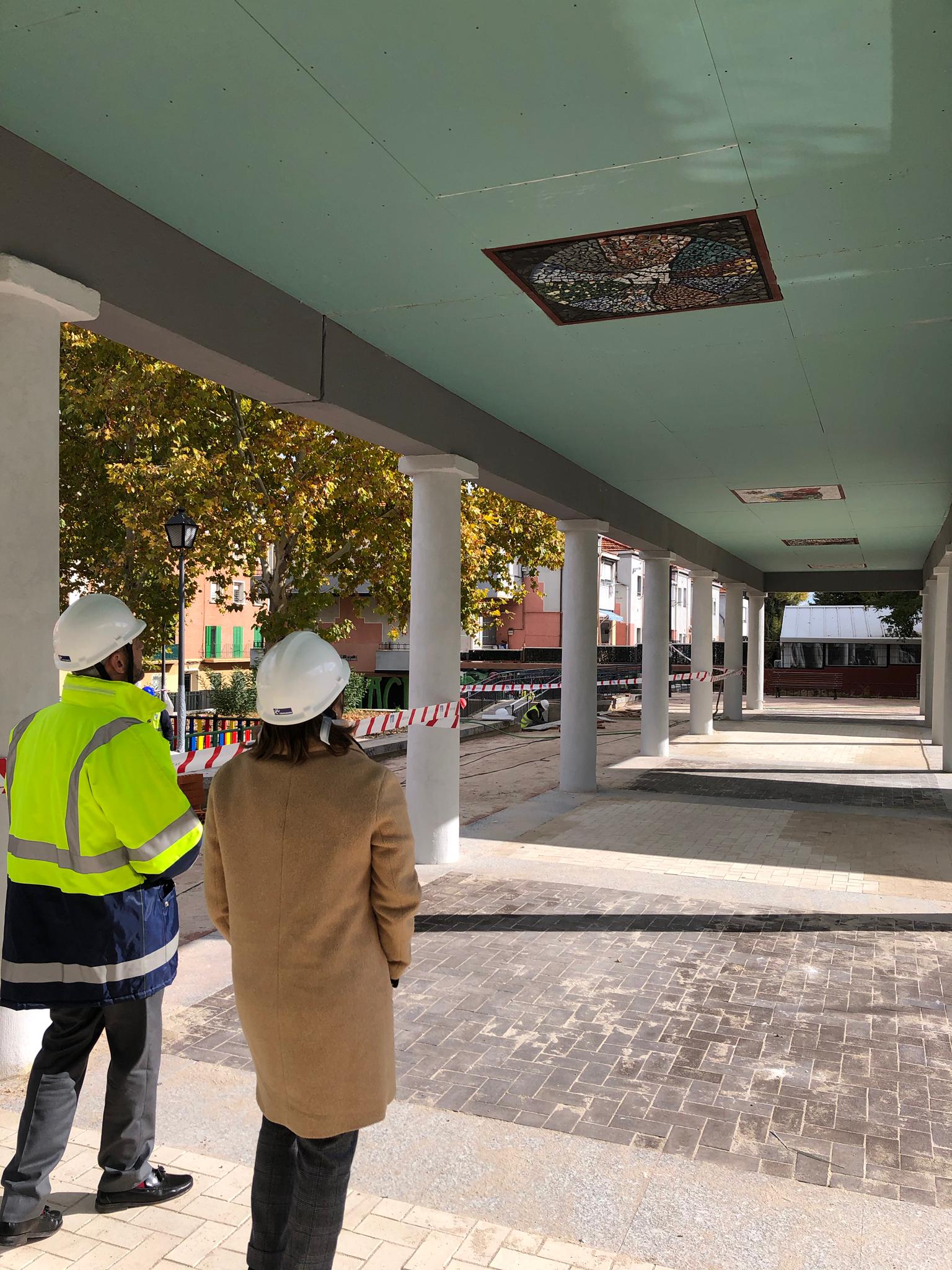 La concejala del distrito de Usera, Loreto Sordo, ha visitado junto a representantes de la Asociación de Vecinos Moscardó, el estado de las obras de reforma de la plaza Francisco Ruano, ubicada en el barrio de Moscardó, más conocida como plaza Romana por su pérgola central.