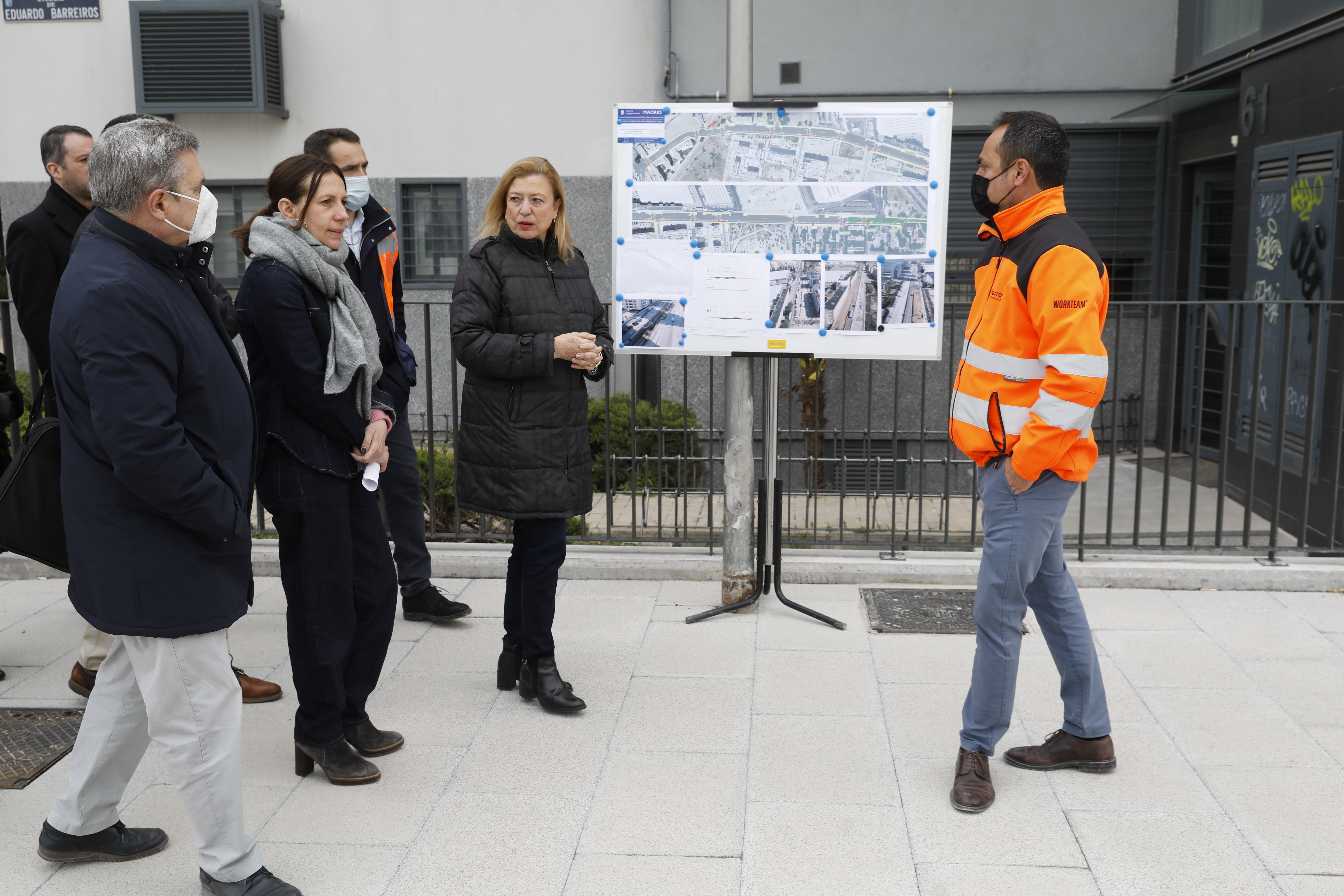 La delegada de Obras y Equipamientos, Paloma García Romero, acompañada de la concejala de Villaverde, Concha Chapa, ha visitado esta mañana las obras de remodelación de la calle Eduardo Barreiros. Con un presupuesto de 8 millones de euros, los trabajos, que finalizarán este otoño, suponen la conversión en vía urbana de lo que era una carretera de un carril por sentido.