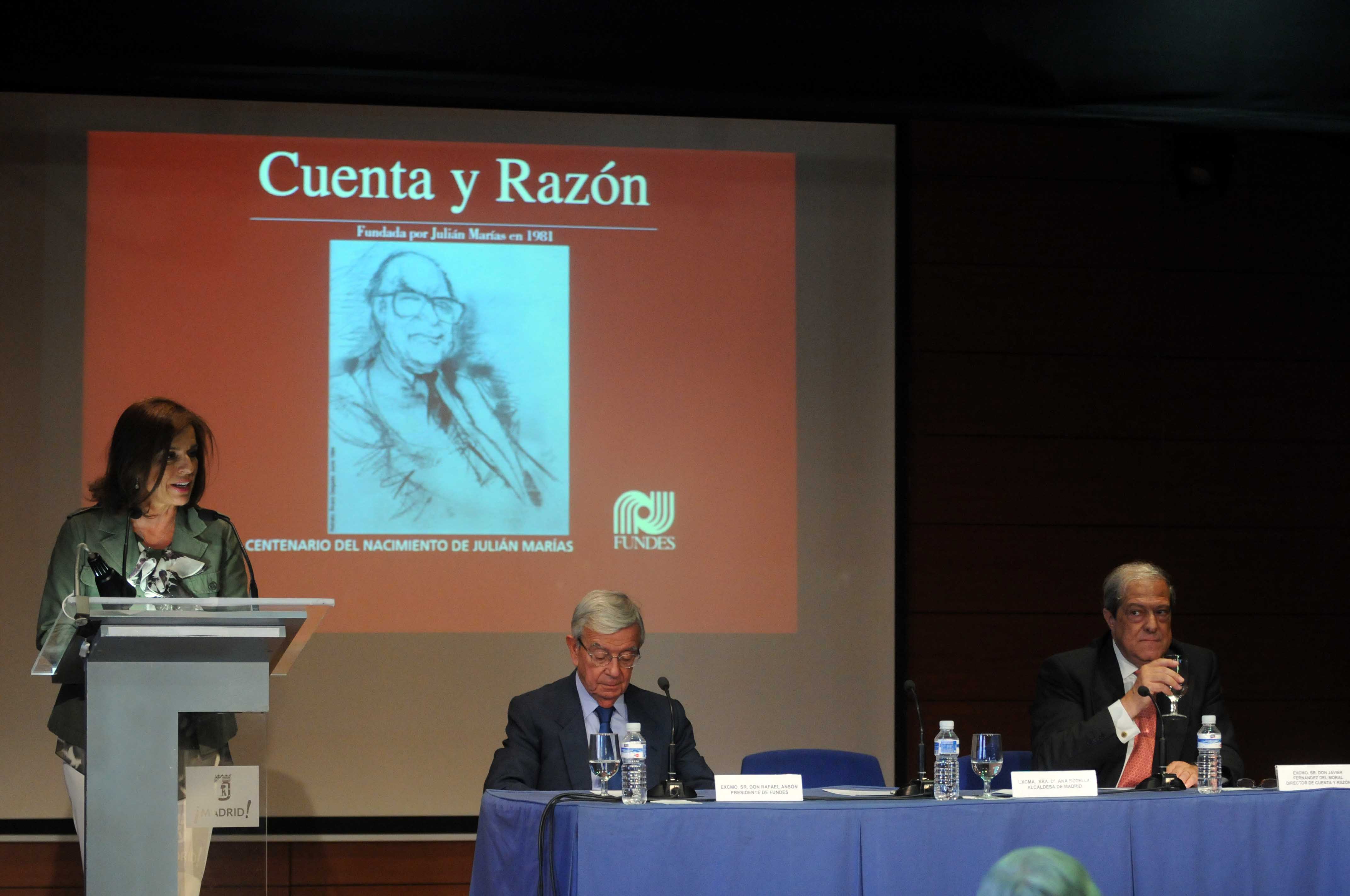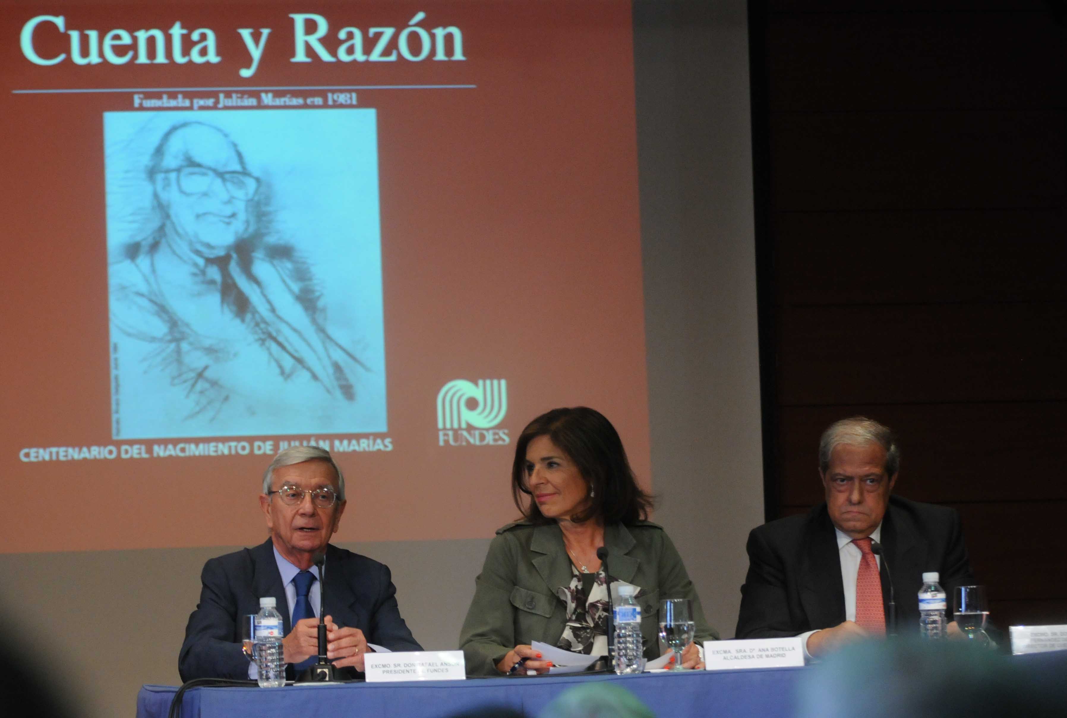 Con motivo del centenario de su nacimiento, la revista "Cuenta y Razón", fundada por Julián Marías en 1981, ha editado un número especial dedicado a su figura, "en el que ha sido una gran satisfacción personal colaborar, junto a una treintena de grandes especialistas en su obra y, como todos nosotros, admiradores suyos". La alcaldesa de Madrid, Ana Botella, ha asistido hoy a la presentación de esta edición excepcional consagrada a uno de los grandes intelectuales españoles, "un hombre que enriqueció nuestra vida con sus aportaciones rigurosas, llenas de inteligencia, criterio y, sobre todo, sentido común, tan necesario en todos los aspectos de la vida".