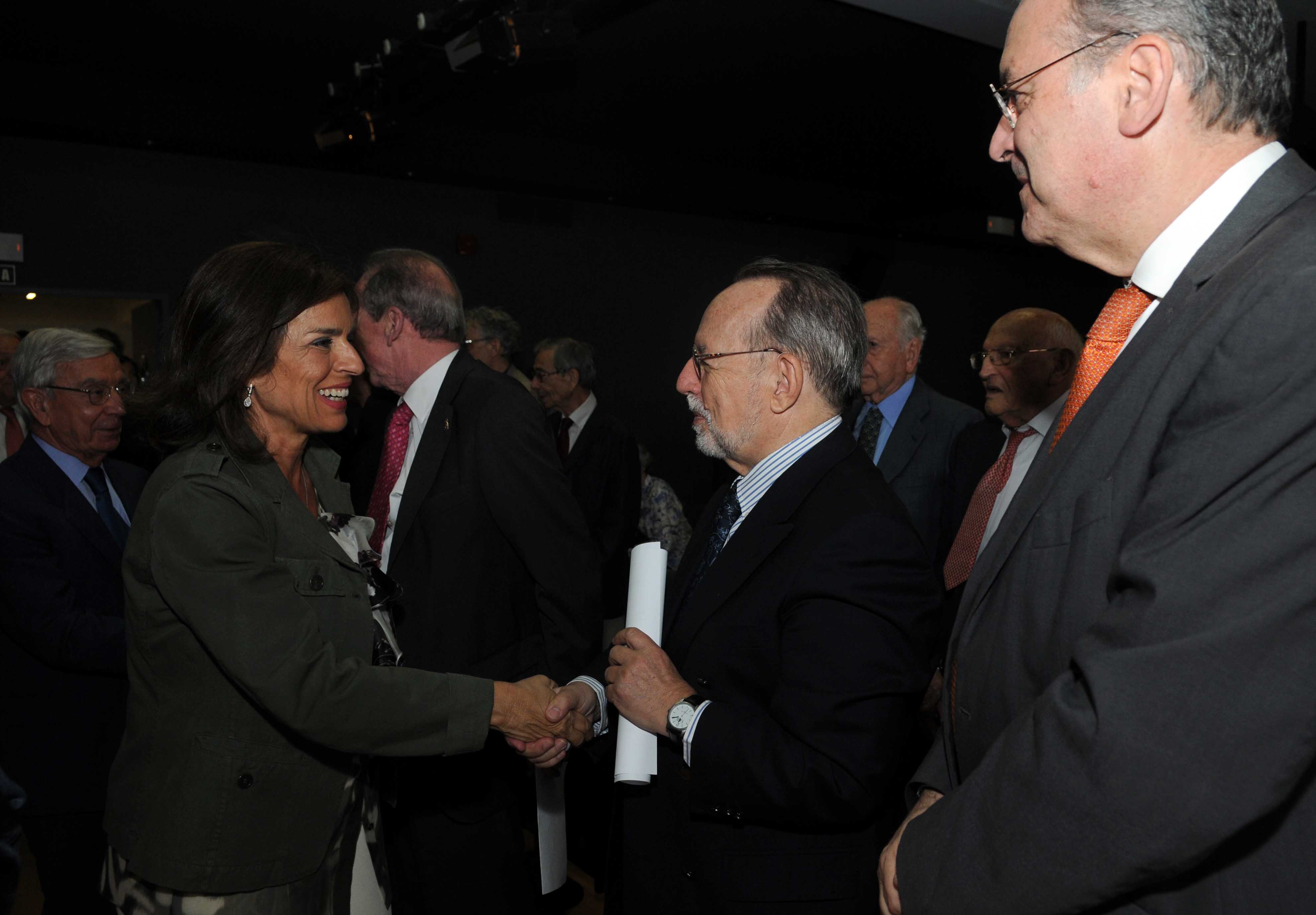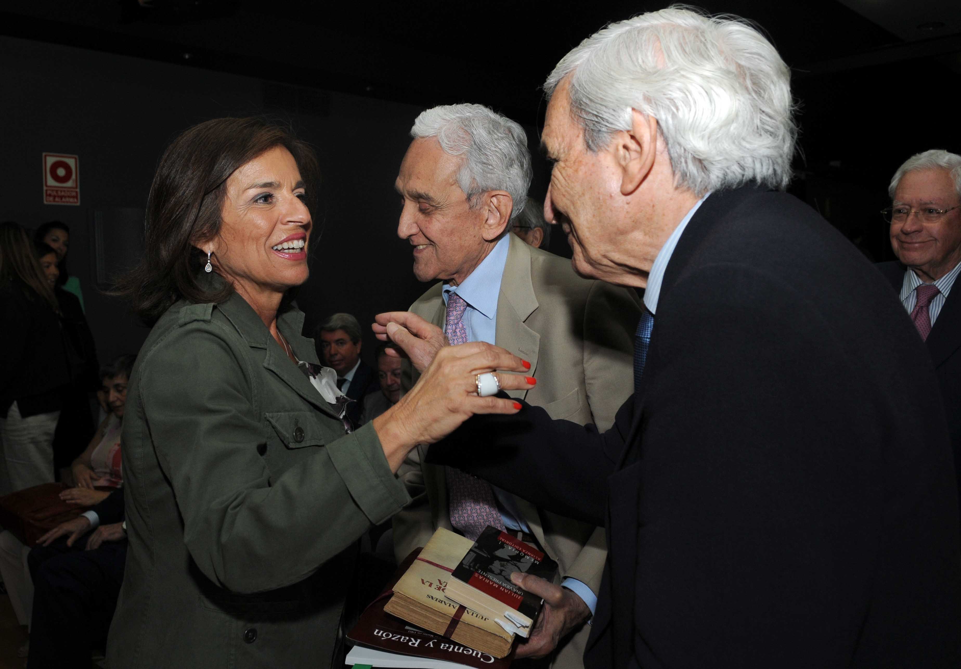 Imágenes de la alcaldesa de Madrid, Ana Botella, durante la presentación del número especial de la revista Cuenta y Razón, dedicada al filósofo Julián Marías, que fundó la publicación en 1981, en el centenario de su nacimiento. El acto se ha celebrado en el Centro Cultural Galileo.