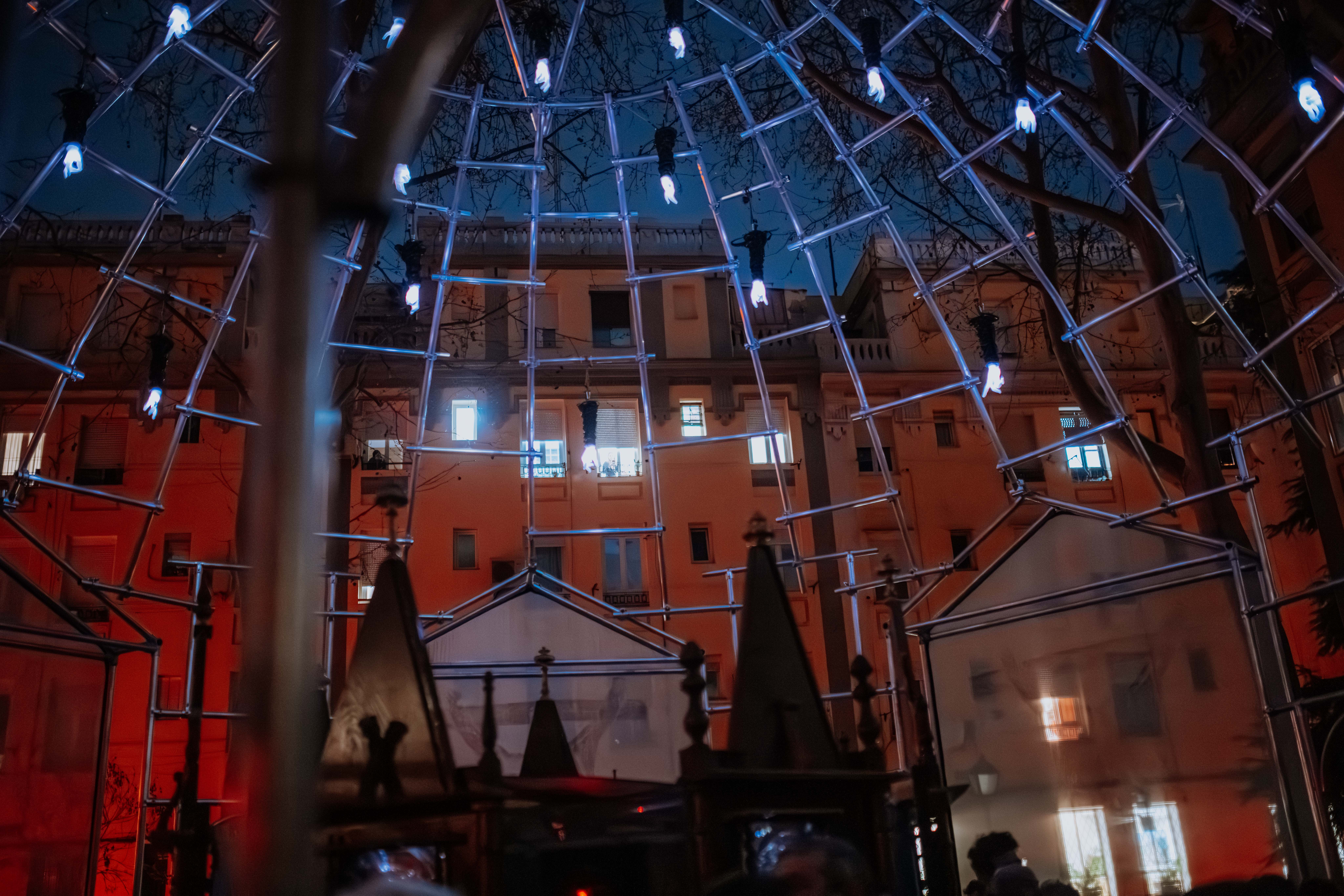 Cerca de allí, en el Instituto de Enseñanza Superior Cervantes (IES Cervantes), situado en la glorieta de Embajadores, la propuesta del artista francés Sébastien Lefèvre, Soleil Nuit, Persée, juega con la luz ambiental y proyecta ráfagas sobre su entorno. Además, como iniciativa de mediación y muestra del compromiso del festival con el diálogo con otras disciplinas artísticas, a las 17:00 horas, ha tenido lugar la actuación de los alumnos del Conservatorio Profesional de Danza Carmen Amaya, que han interactuado con la pieza de Lefèvre y los sonidos creados para ella por Jacob Stambach. Así, la malla con 5.000 espejos, que durante el día se ha ido mostrando cambiante, actúa esta noche como una gran estrella radiante.