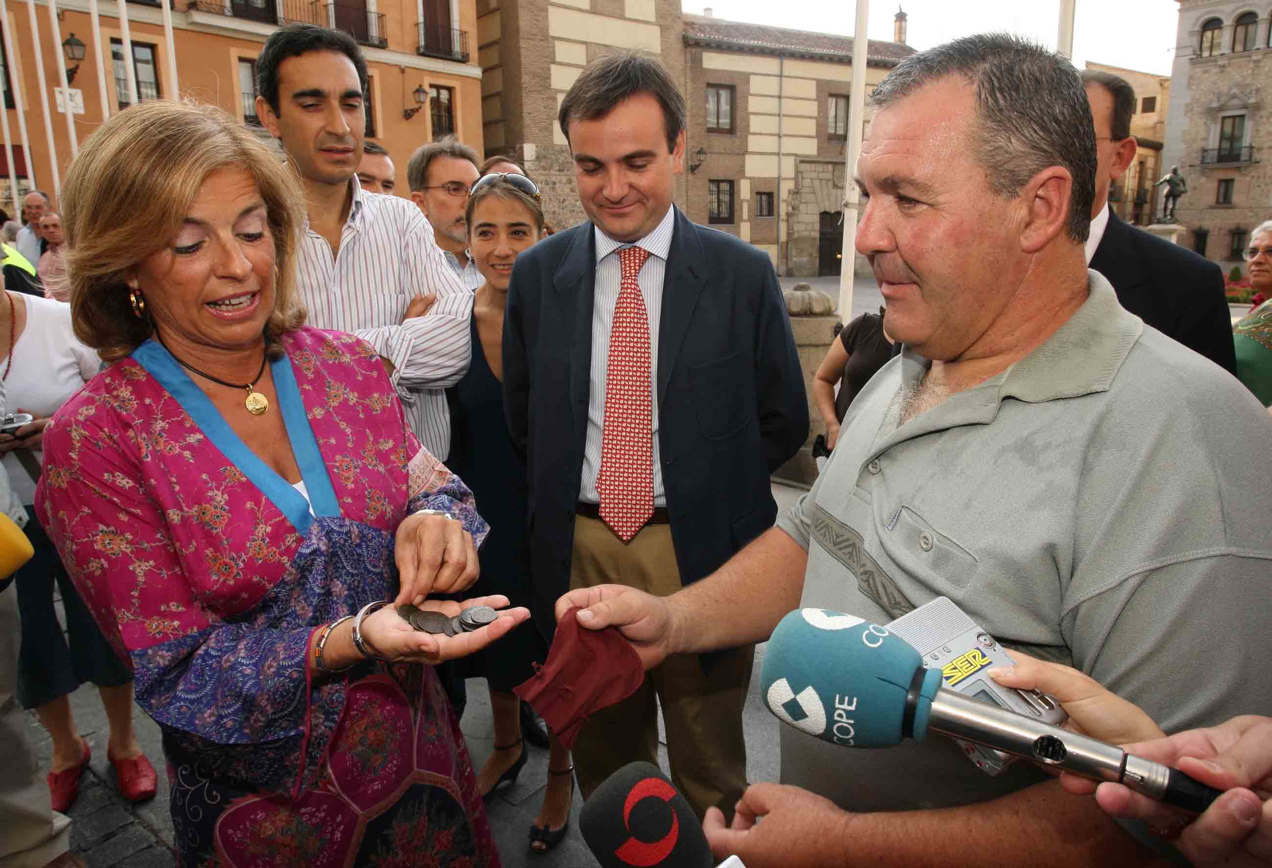 La XIV edición de la Fiesta de la Trashumancia, ejemplo de sostenibilidad medioambiental, ha coincidido este año con la Convención de las Naciones Unidas para la Lucha contra la Desertificación que se celebra en la Ciudad de Madrid hasta el próximo día 14 de septiembre. La delegada de Medio Ambiente del Ayuntamiento, Ana Botella, ha asistido hoy al paso de los rebaños trashumantes por la Plaza de la Villa y ha recogido, de manos de los pastores, los 100 maravedíes que, según la Concordia del 2 de mayo de 1418, costaba atravesar las dehesas y prados de la ciudad.