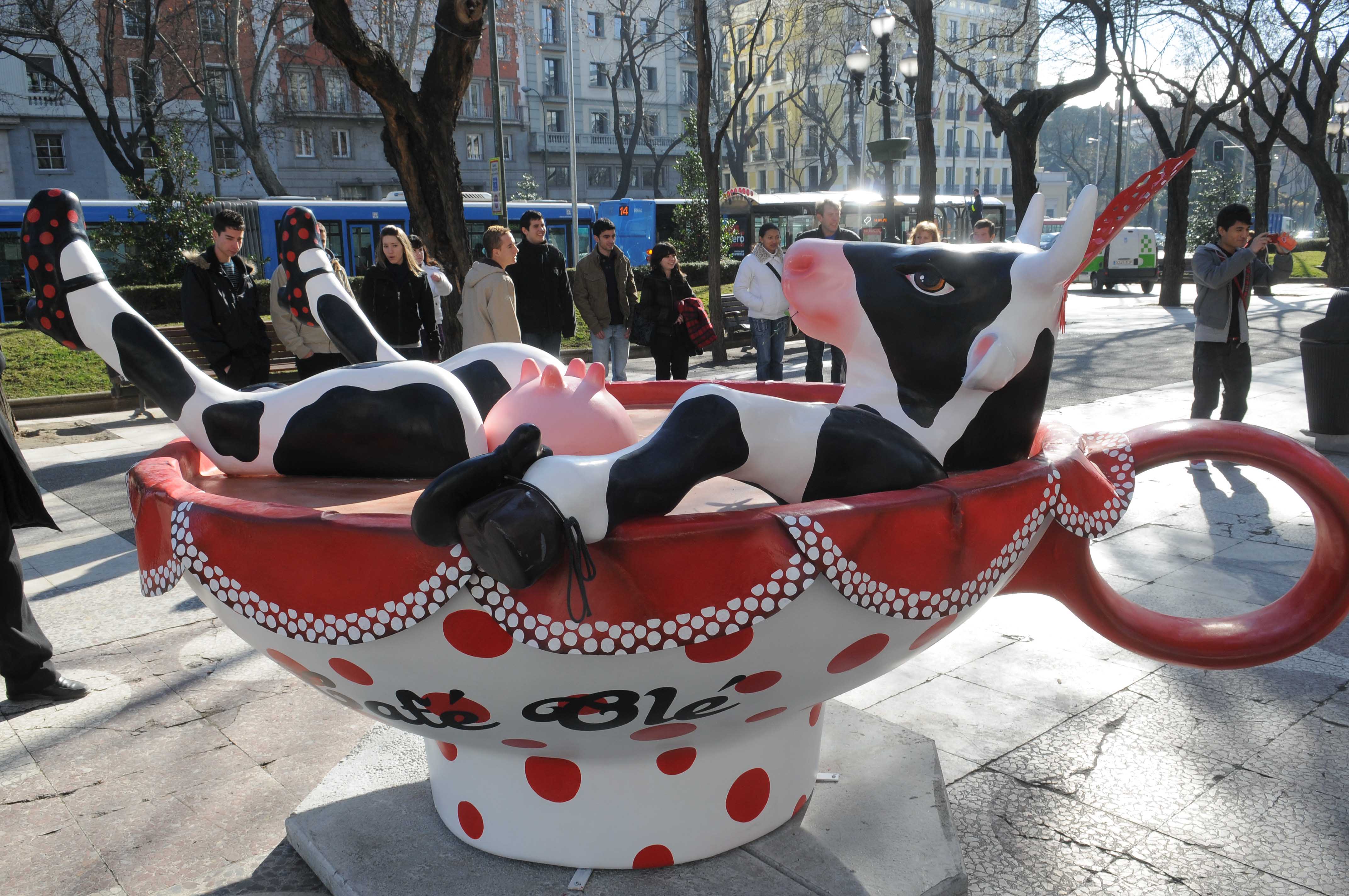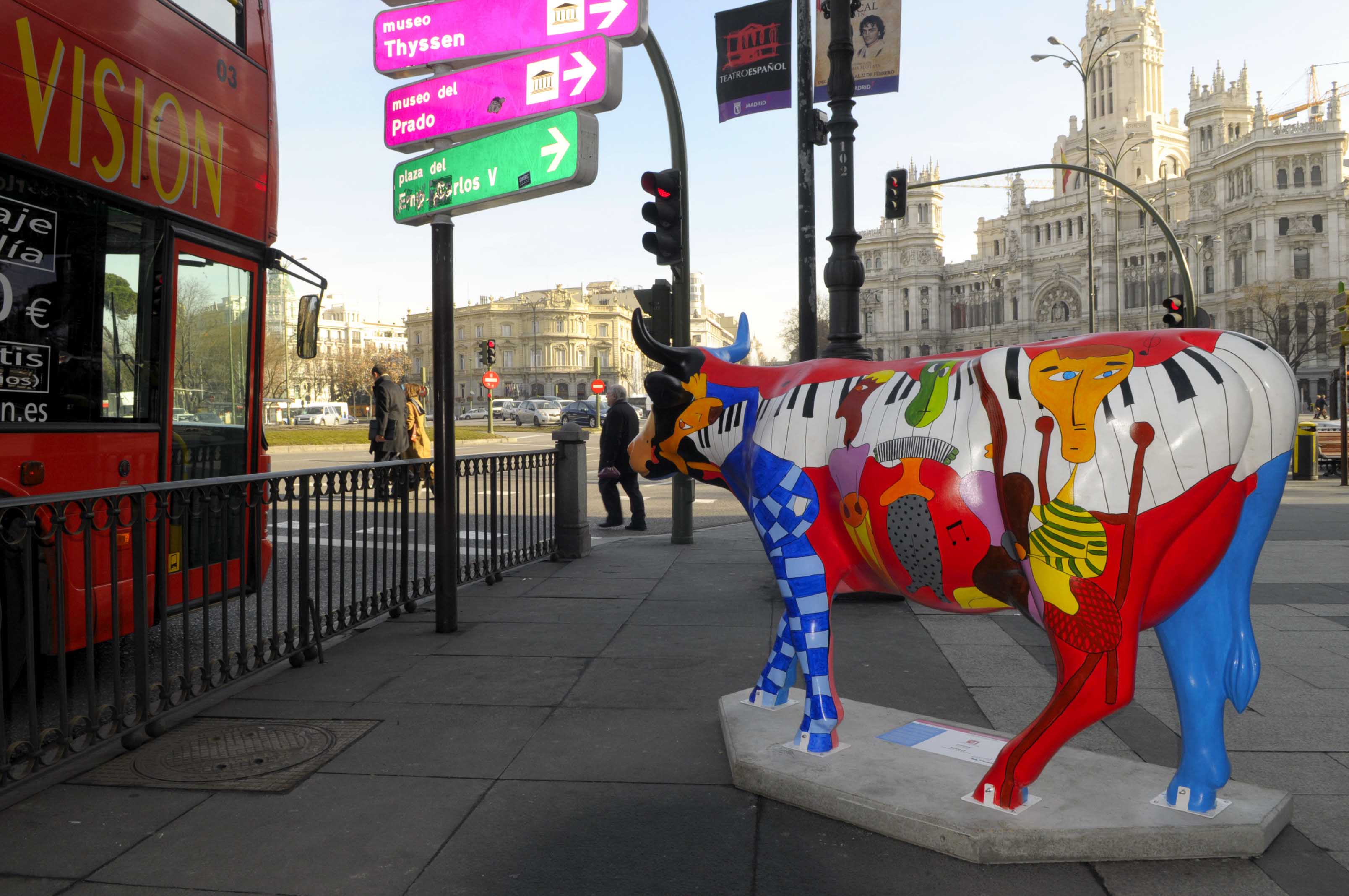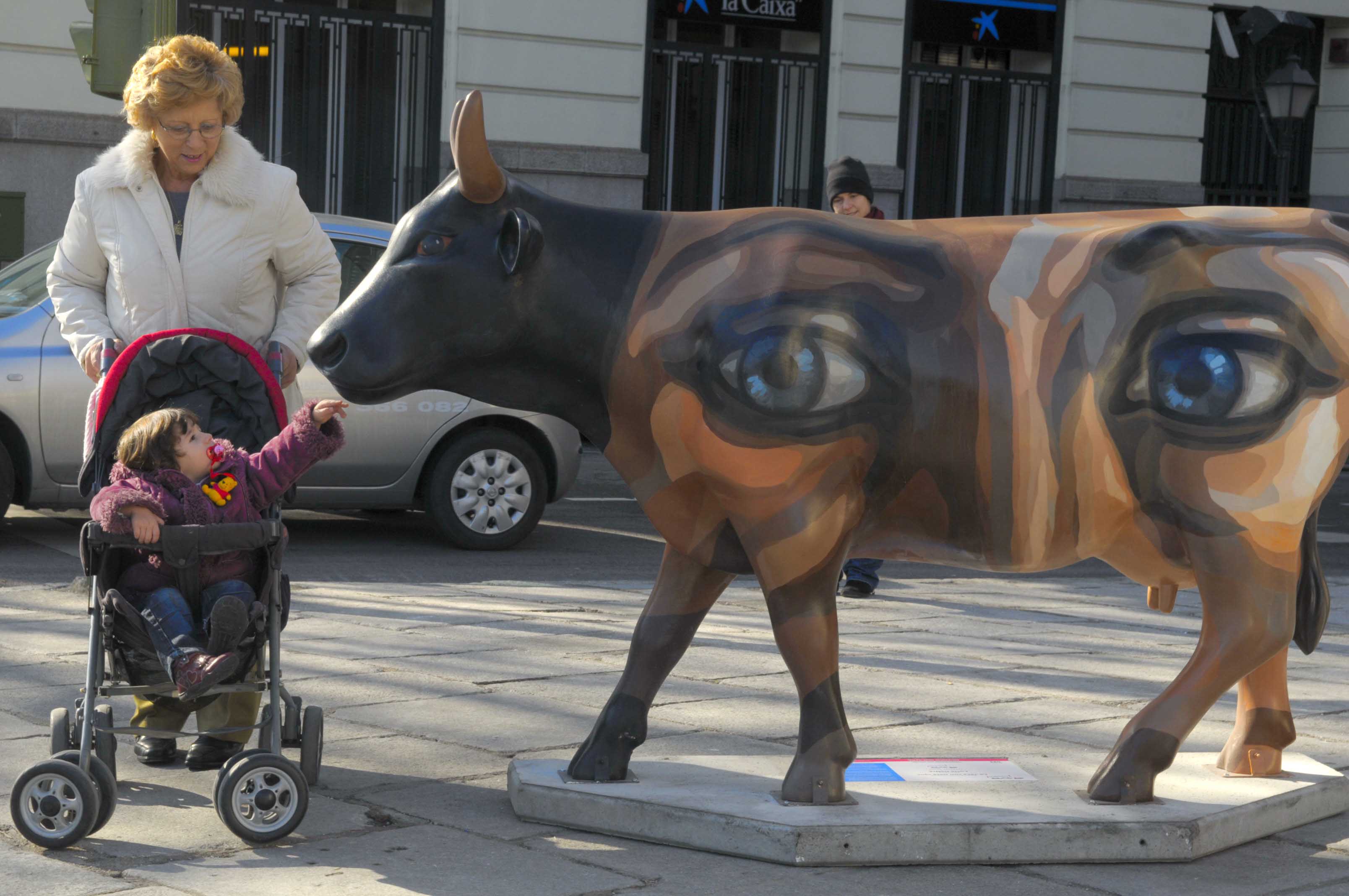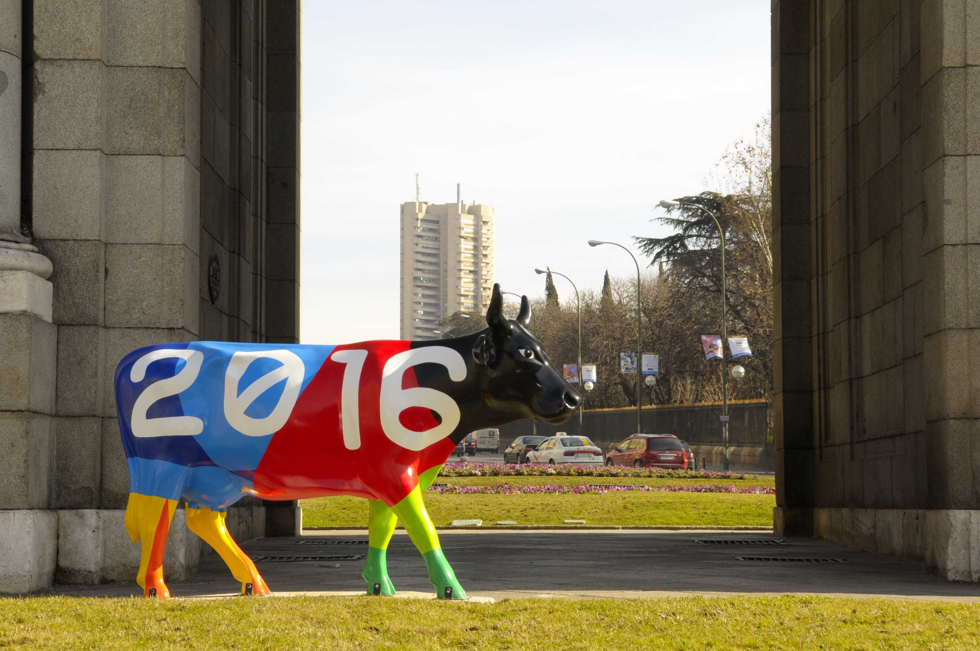 Los madrileños se han despertado hoy con una imagen insólita. 105 vacas se ha adueñado de la ciudad y ‘pastan’ tranquilamente por sus calles y plazas. Eso sin, son de fibra de vidrio y sus creadores son reconocidos artistas. Una de estas vacas, patrocinada por el Ayuntamiento, se ha sumado al sueño olímpico y luce los colores de la candidatura Madrid 16 en uno de los lugares más emblemáticos de la ciudad: la Puerta de Alcalá. Su autora es Nuria Fernández Gamboa. El resto de los rumiantes campan por los distritos de Centro, Retiro y Salamanca, los que concentran mayor tránsito peatonal. La manada Cow Parade llega a Madrid tras recorrer a lo largo de los últimos diez años algunas de las urbes más importantes del mundo. Más de 200 millones de ciudadanos han sido testigos de esta iniciativa de arte urbano que tiene además un marcado espíritu solidario: los beneficios que se obtengan de la subasta del 16 de abril se destinarán a distintas organizaciones sin ánimo de lucro. En Madrid se espera que las vacas sean vistas por cuatro millones de espectadores.