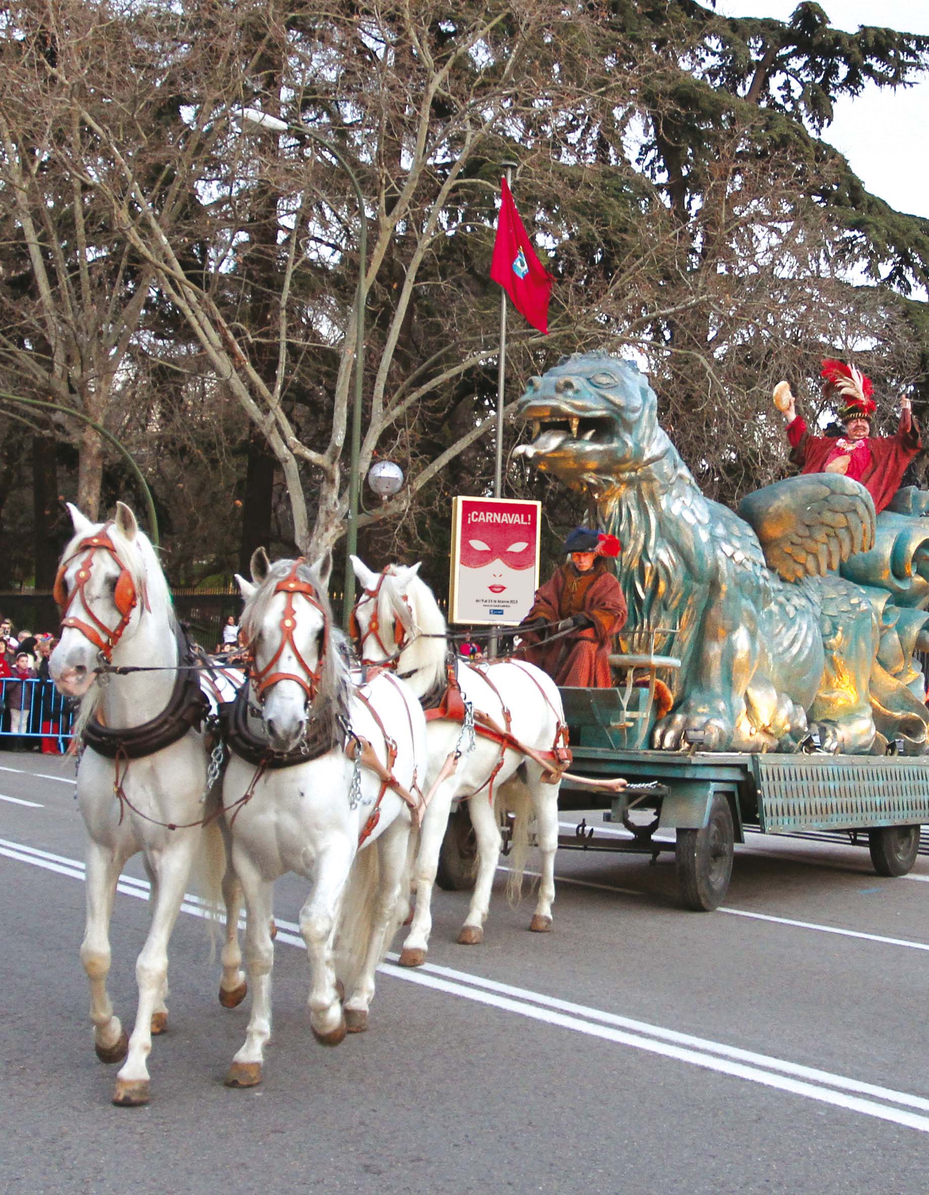 Tras la lectura del Pregón comenzará el tradicional Desfile de Carnaval, a las 19.30 horas, que partirá desde el parque de El Retiro, en dirección a la plaza de Cibeles por la calle Alcalá. Este año está dedicado a Doménikos Theotokópoulos, El Greco, y a otros pintores destacados de las historia. Abriendo el recorrido se situará La Tarasca, y La Tarasquilla, a quienes seguirán la Compañía de Teatro Morboria, que escenificará la época de los Austrias, el tiempo de los Caballeros Engolados de El Greco, como si los personajes acabarán de escaparse de uno de sus cuadros.