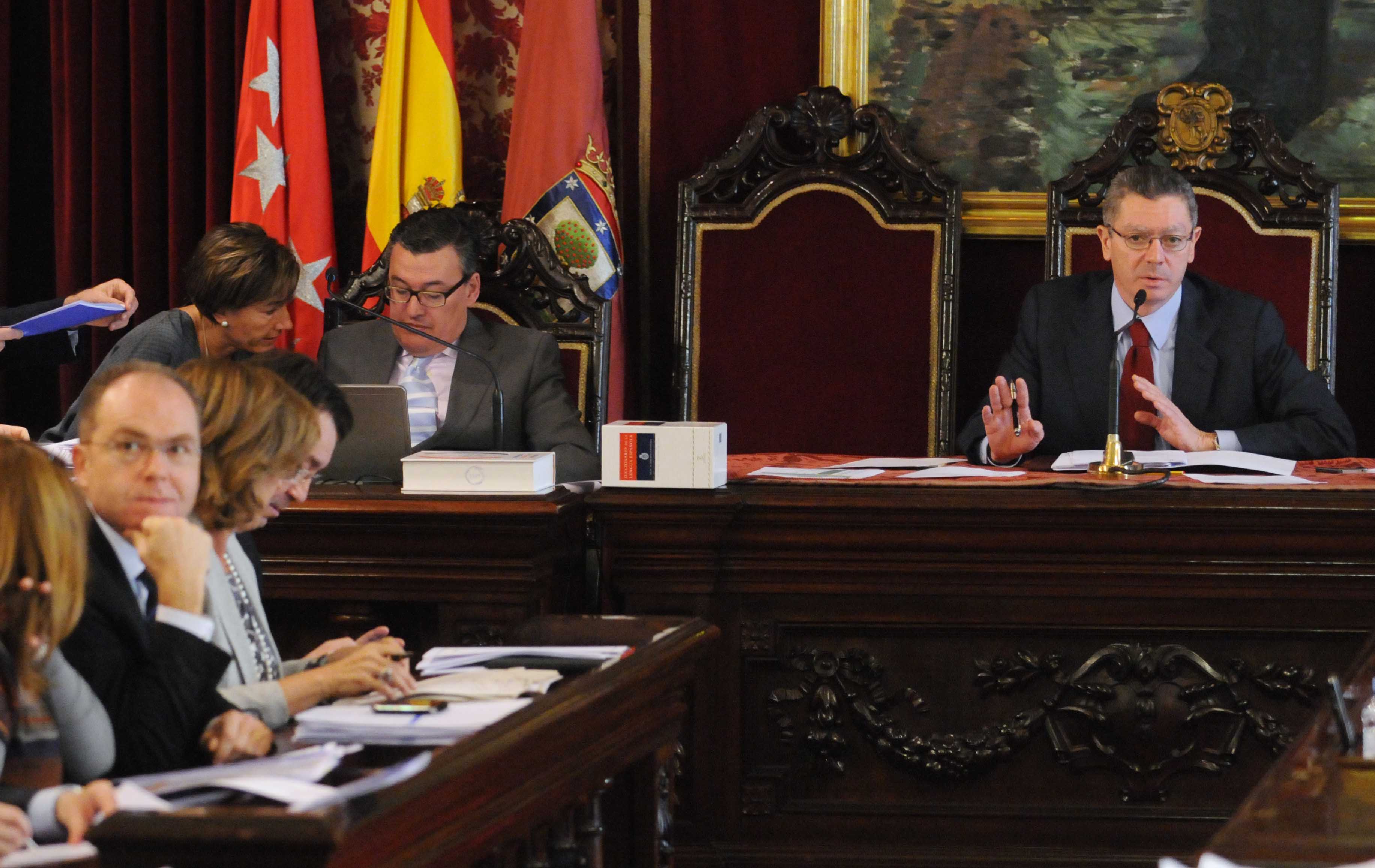 El alcalde de Madrid preside el Pleno celebrado hoy, en el que se ha dado información sobre la deuda de las administraciones públicas con el Ayuntamiento.