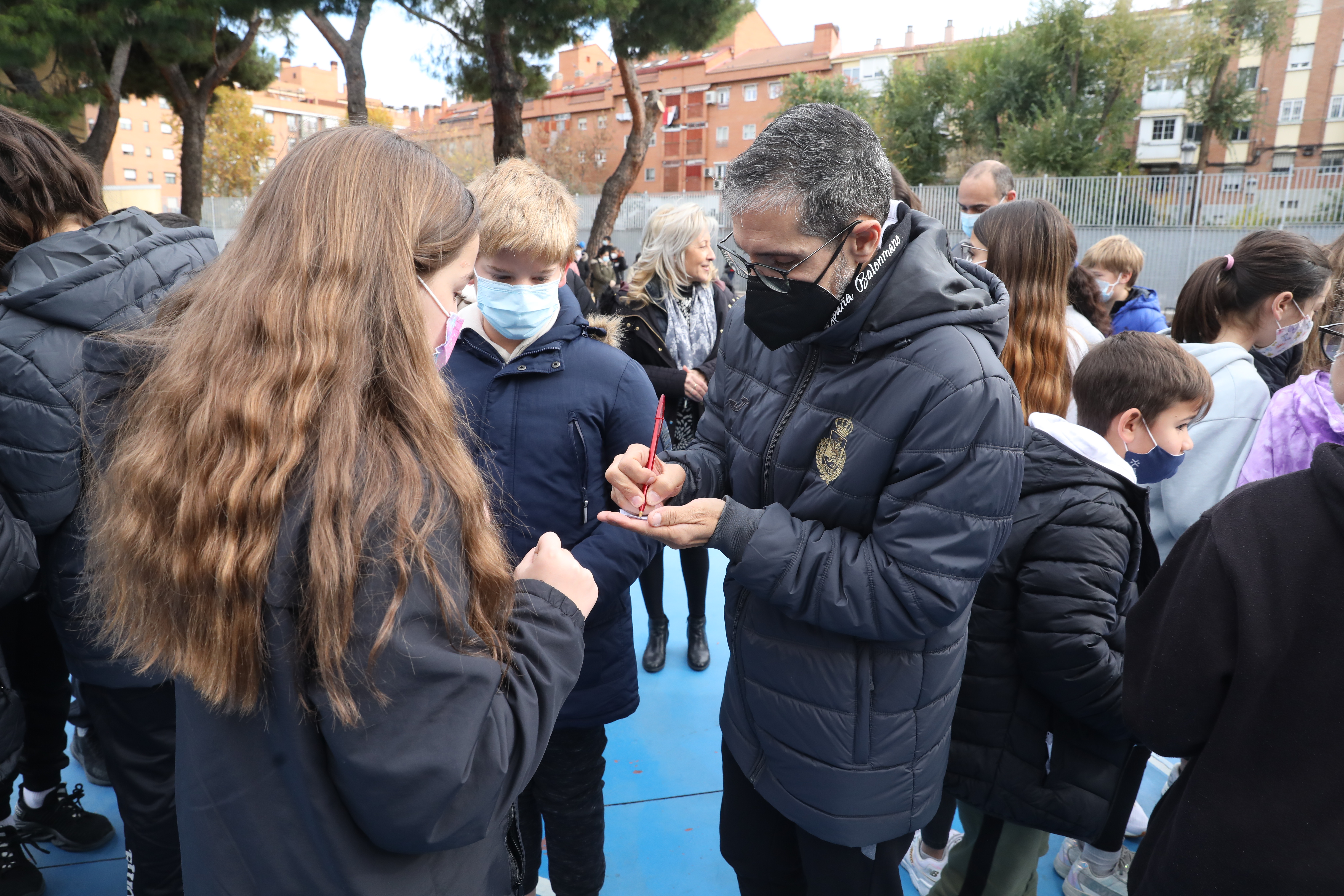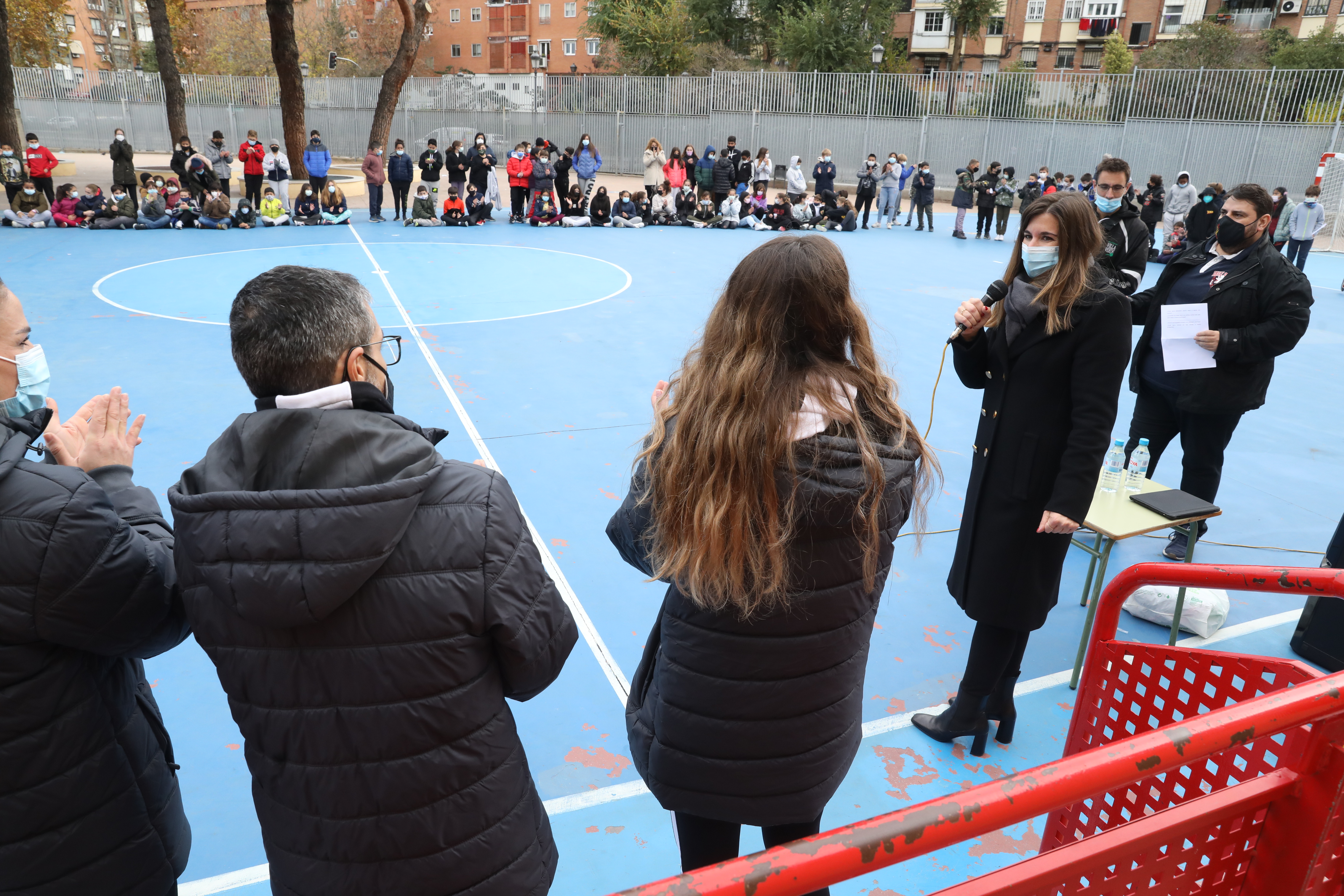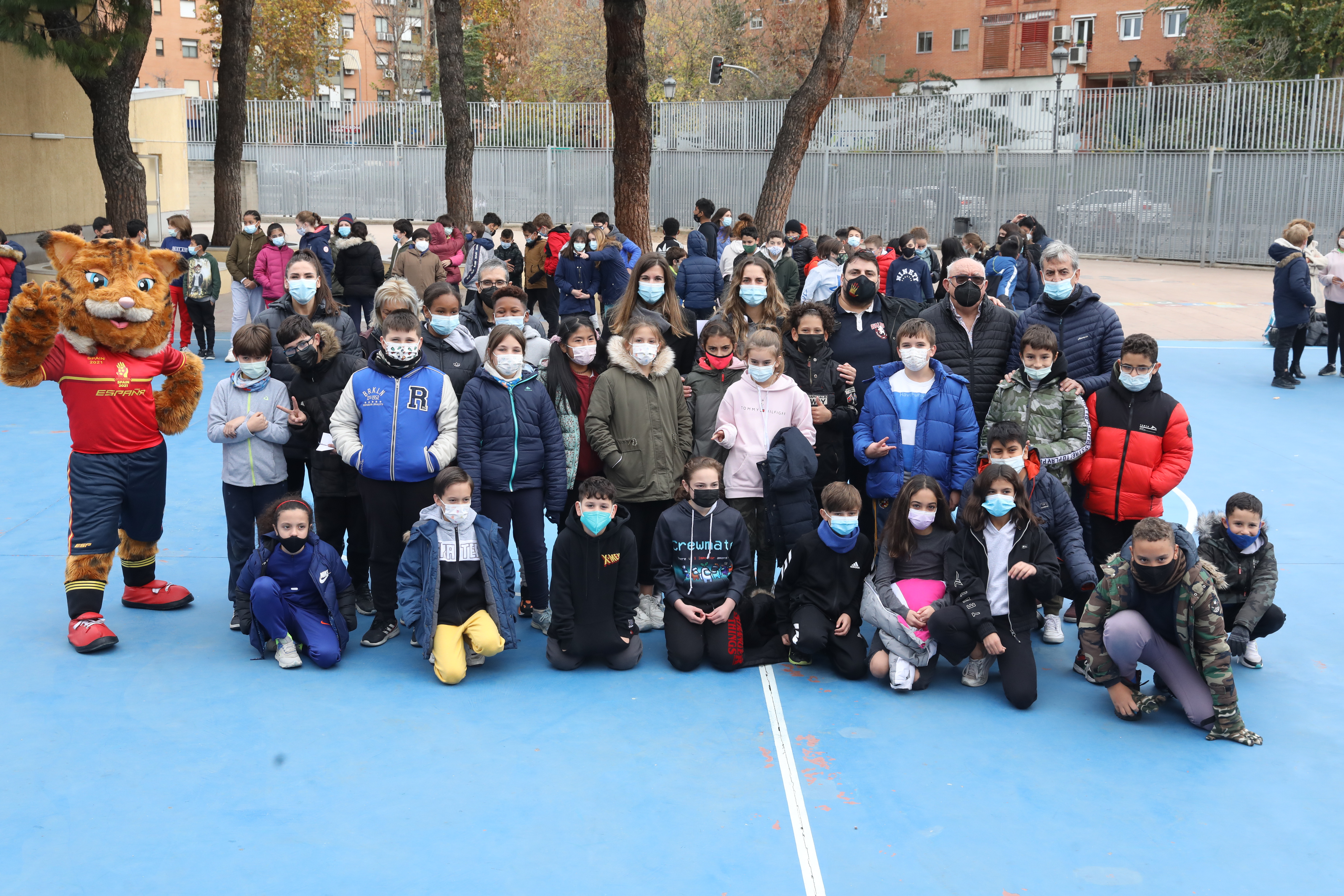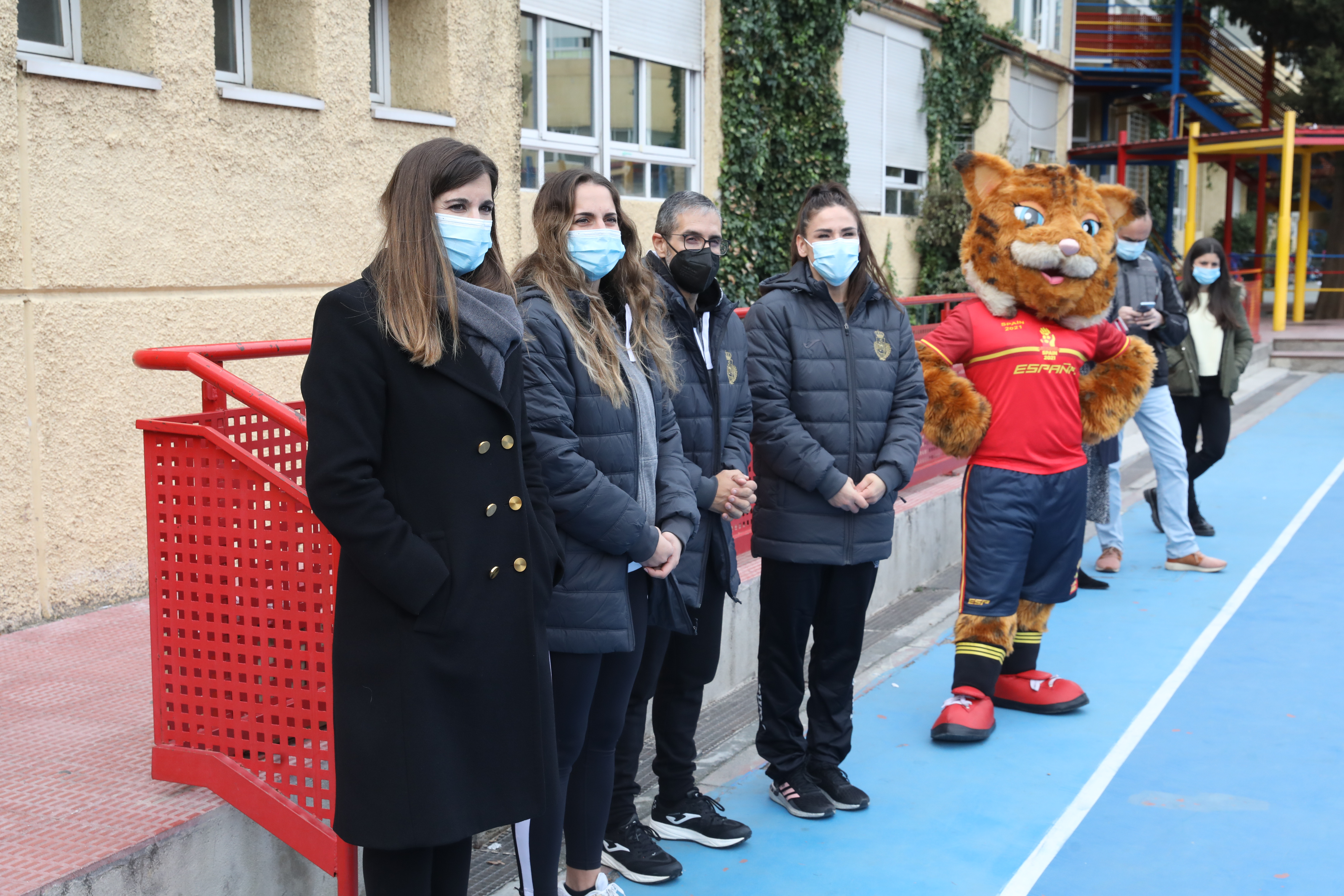 La concejala delegada de Deporte, Sofía Miranda, ha asistido hoy al encuentro entre las integrantes de la Selección Española de Balonmano, conocidas como las ‘Guerreras’, y alumnos del CEIP Juan de la Cierva del distrito de Villaverde. El acto, en el que las jugadoras Carmen Campos y Carmen Martín, así como el entrenador nacional, José Ignacio Prades y la mascota del equipo, Lola, han compartido charlas, juegos y anécdotas con los alumnos, ha tenido lugar en el marco del Torneo Internacional de España Femenino que se celebra del 26 al 28 de noviembre en la localidad madrileña de Boadilla del Monte, última competición para las jugadoras antes del Campeonato del Mundo que se celebrará en España el próximo mes de diciembre.