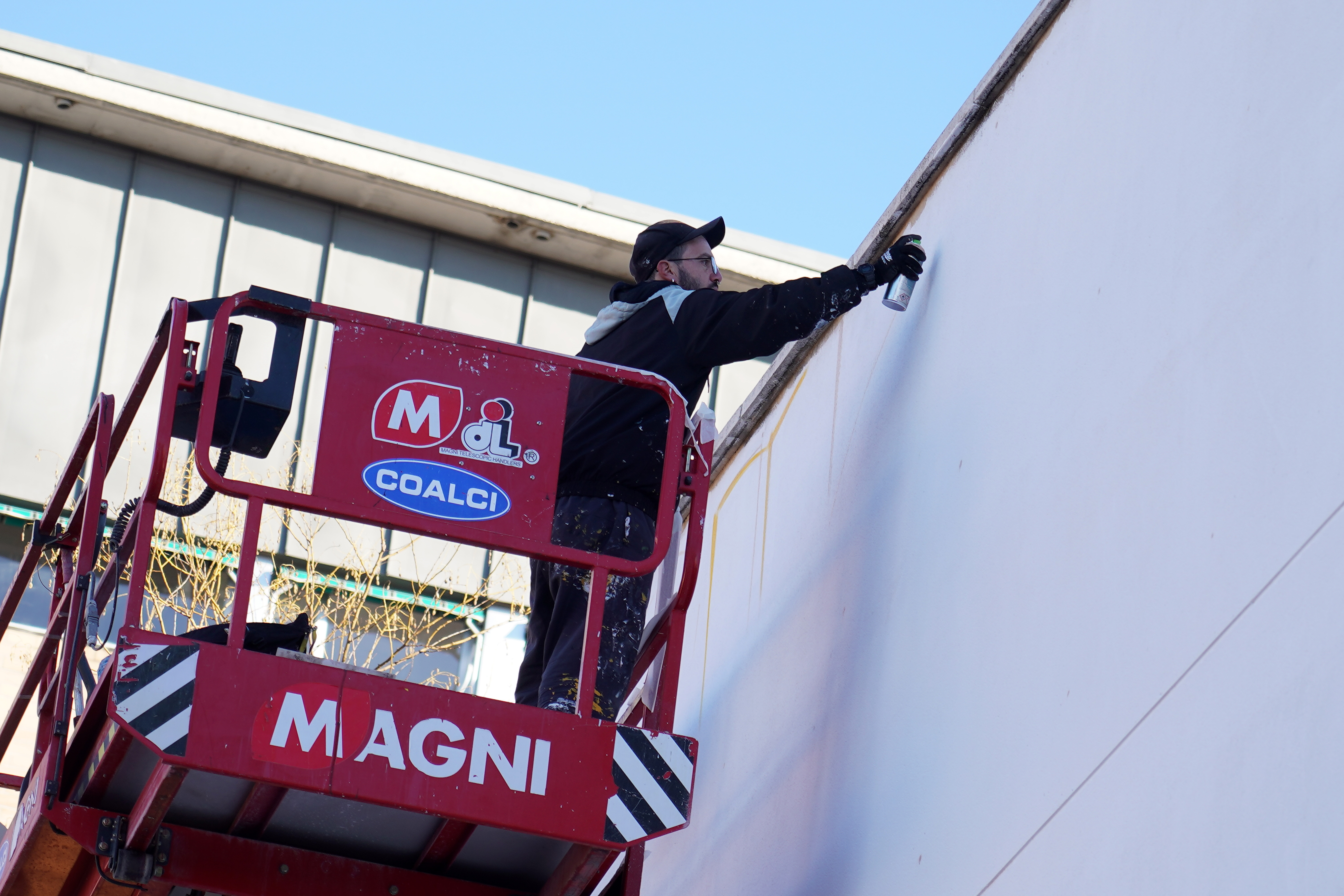Durante la ejecución de los murales el Ayuntamiento ha previsto la participación de la ciudadanía interesada en pintar conjuntamente con los artistas, para lo que se han reservado unos días específicos en cada uno de los distritos. En el caso del mural de la Biblioteca Pública Francisco Ayala, los trabajos han comenzado hoy. El artista Michelangelo Marra ha iniciado los primeros trazados de la cuadrícula que le servirá para guiar el desarrollo del mural Patrón positivo, en el que, hasta el viernes (día en el que se prevé que esté finalizado) pueden participar los vecinos del distrito.