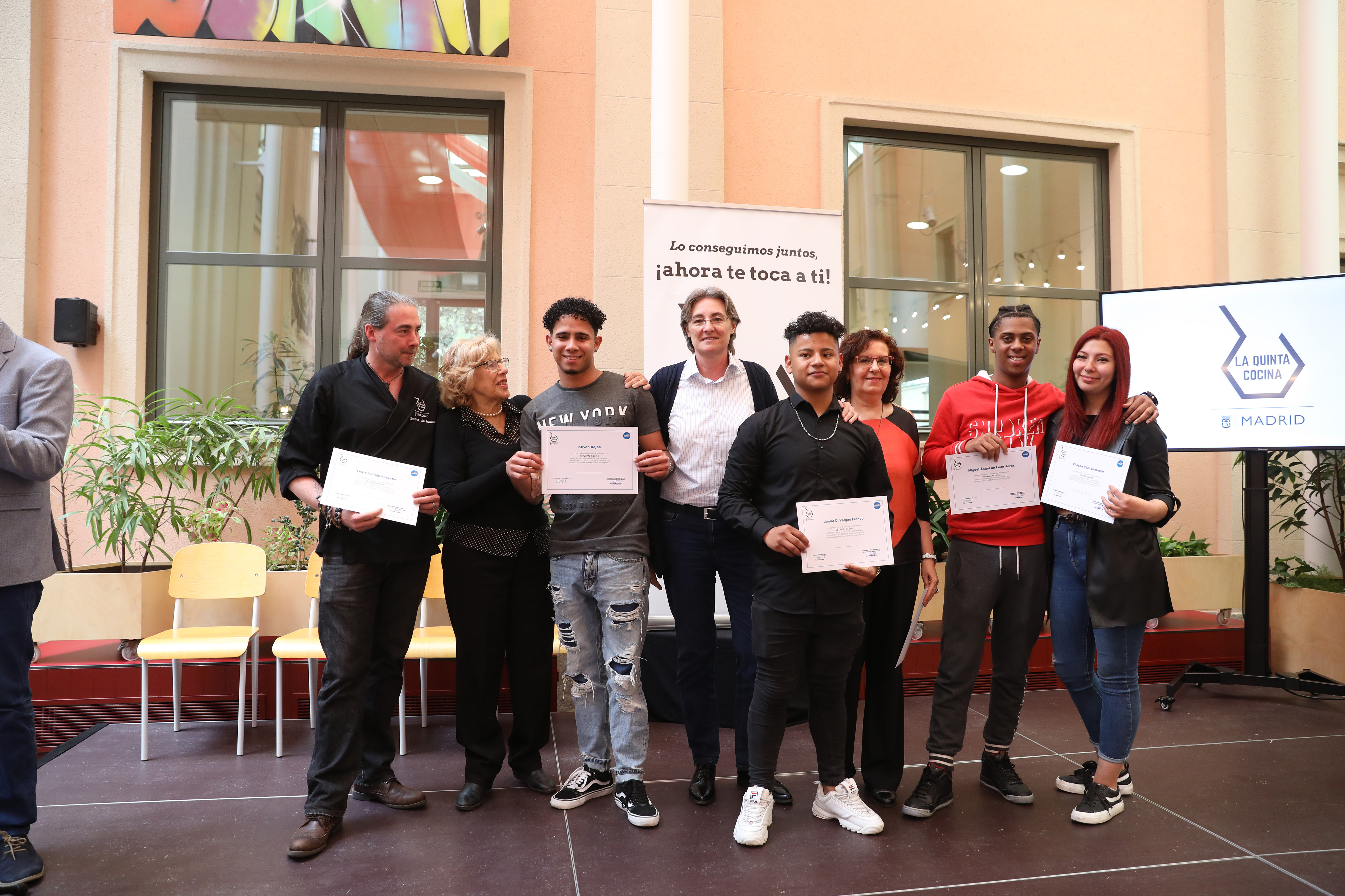 La entrega de diplomas ha contado con la presencia de Ana Buñuel, directora general de Familia e Infancia del Ayuntamiento de Madrid; el director general de CESAL, Pablo Llano; la directora de Espacio Abierto Quinta de los Molinos, Beatriz Torres; el director formativo de la Quinta Cocina, Felipe Rojas; y los profesores de la escuela Chema de Isidro, Alma Soriano, David Alonso, Sara Seco y Yoleida Faria; así como representantes de empresas y restaurantes donde se han realizado las prácticas.