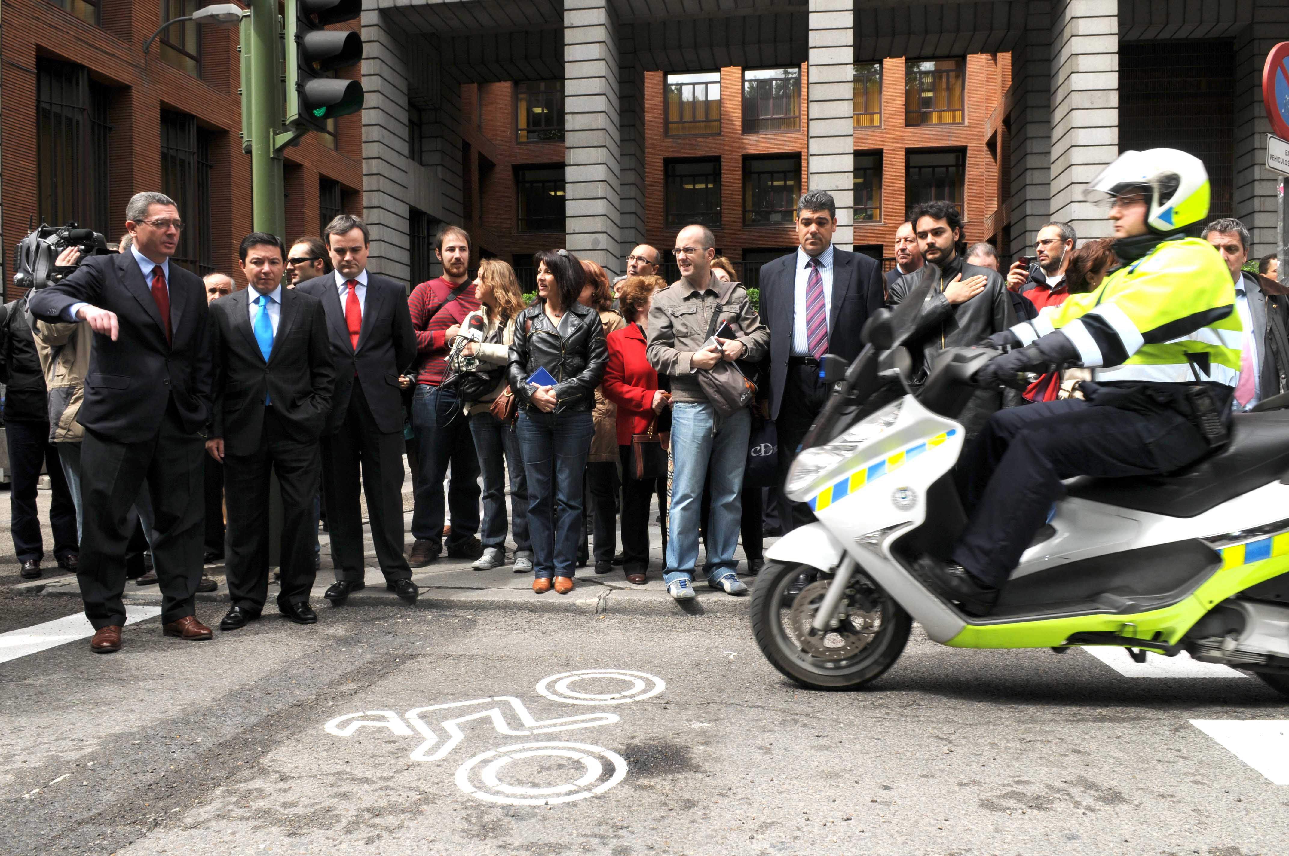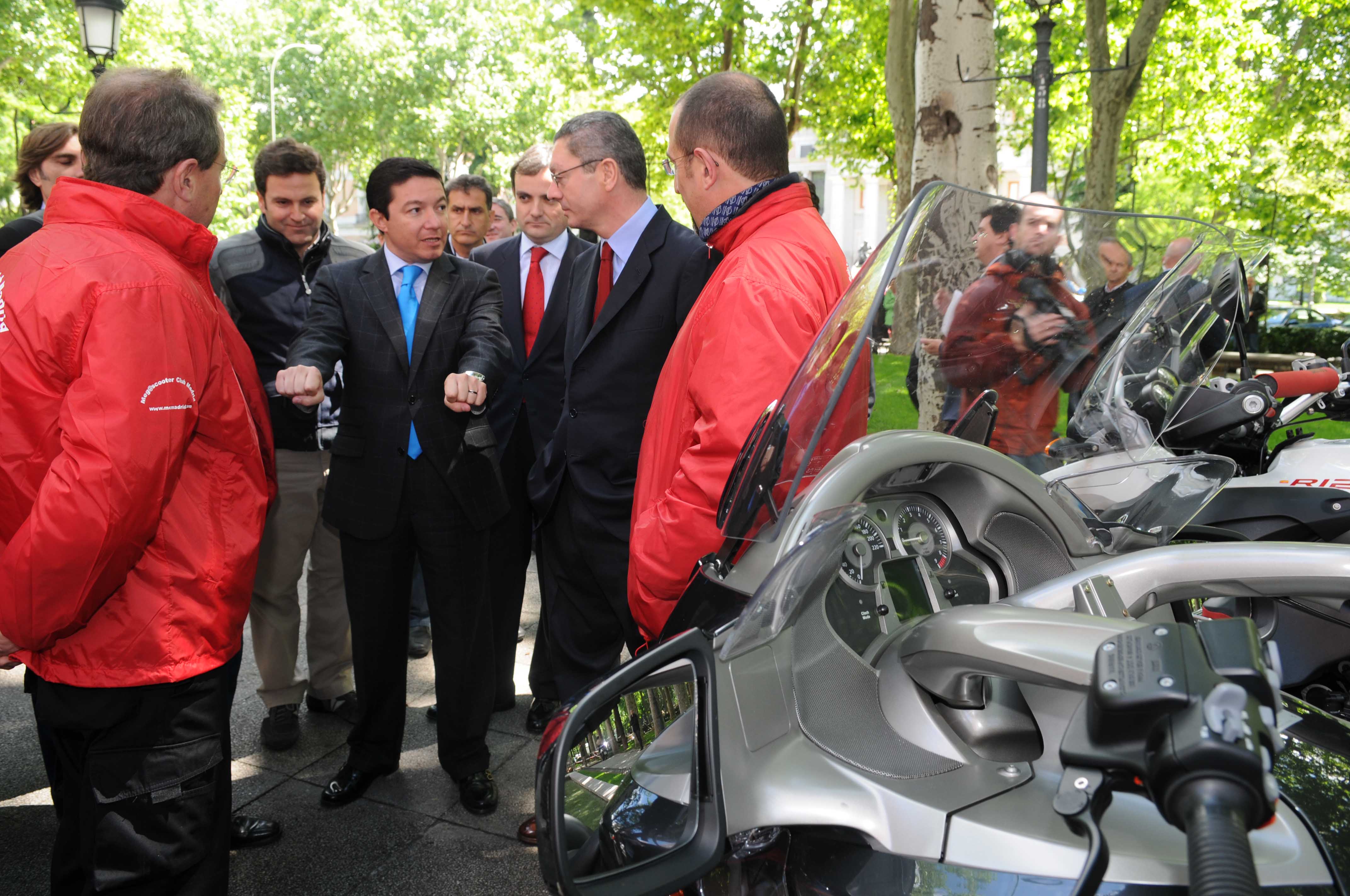 El alcalde de la Ciudad de Madrid, Alberto Ruiz-Gallardón, presentó esta mañana Avanza Moto, una experiencia piloto que pretende facilitar la movilidad en Madrid. En virtud de esta iniciativa, las motos dispondrán de un espacio reservado en los semáforos. En las imágenes, varios momentos de la presentación.