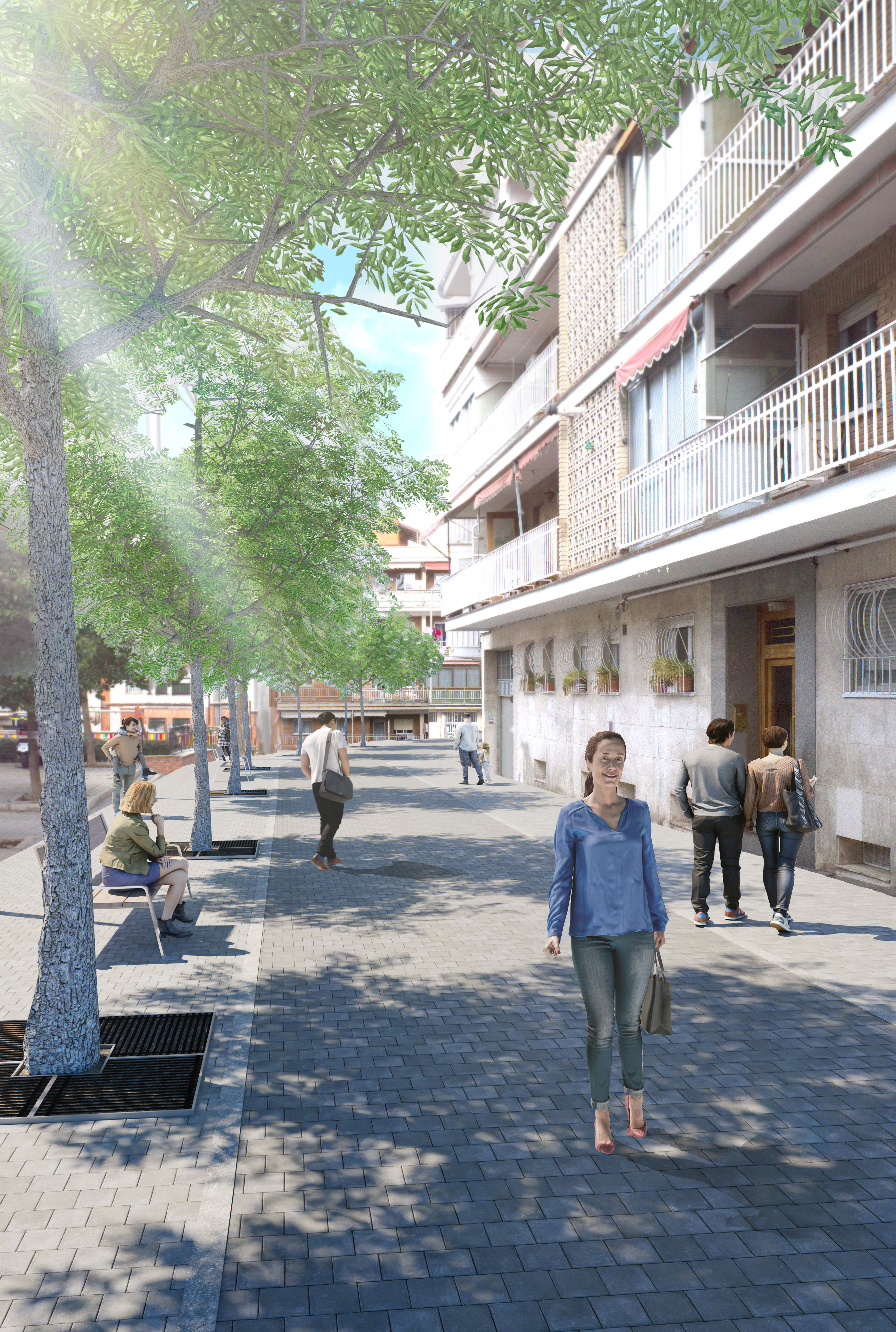 Asimismo, en la actualidad, se están ejecutando obras de peatonalización en otros nueve espacios: diversas calles del itinerario entre la plaza del Hidrógeno y Madrid Río (Usera), casco histórico de Hortaleza, calle de Tenerife (Tetuán), calles de Urola y Genil (Chamartín), entorno del Mercado de Tirso de Molina (Latina), calle de los Misterios (Ciudad Lineal), calle de Oberón (Moratalaz), calle de Ángel Ganivet (Retiro), calle de Hernández Iglesias (Ciudad Lineal). Estas remodelaciones abarcan una superficie de más de 33.900 m2 y supondrán la plantación de 90 nuevos árboles. /