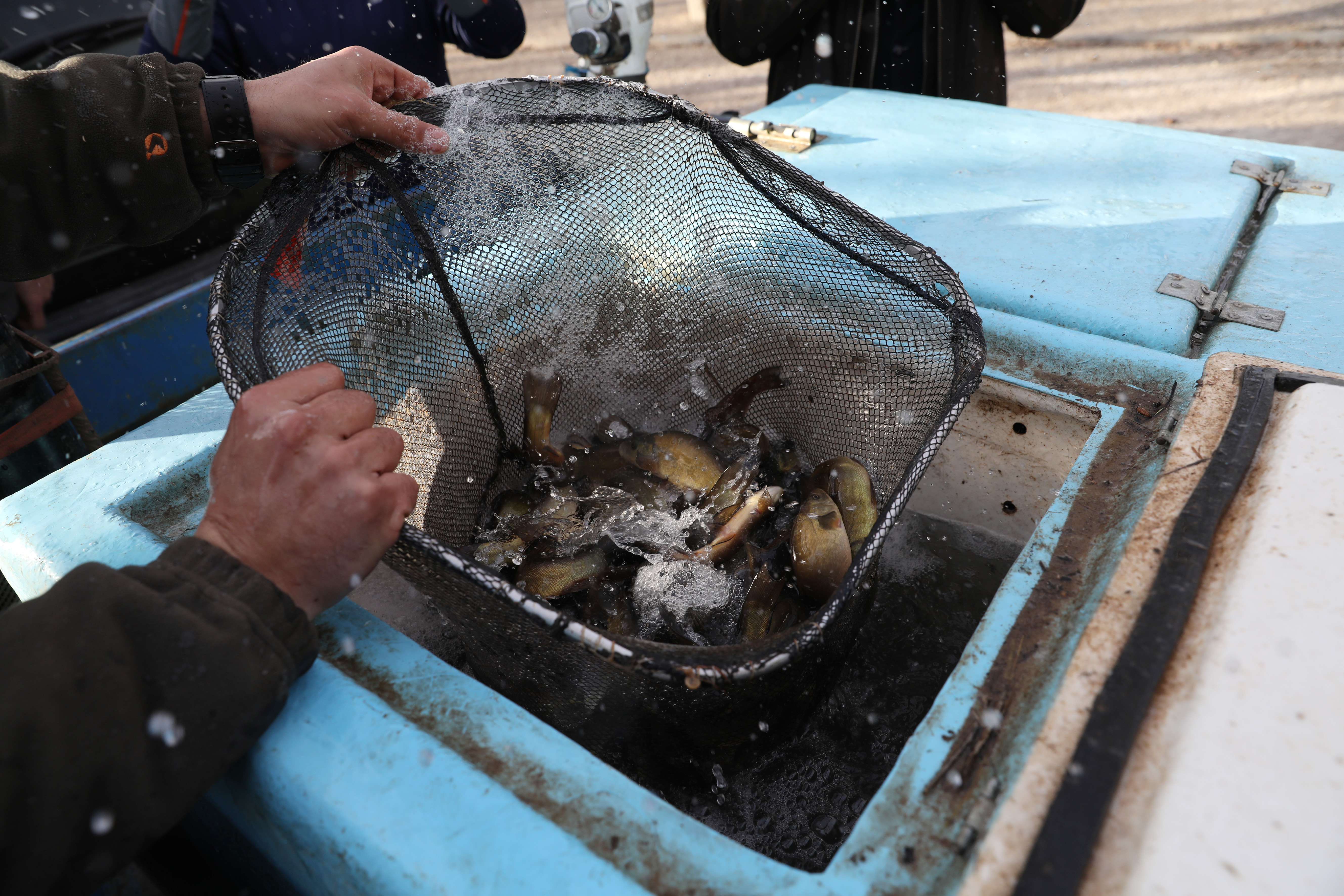 Los ejemplares proceden de una piscifactoría cacereña ubicada en la localidad de Casar de Cáceres. Durante la mañana se ha realizado el traslado, con un recorrido de 300 kilómetros, en un vehículo con remolque con tres depósitos con bombonas de oxígeno y agua clara. /
