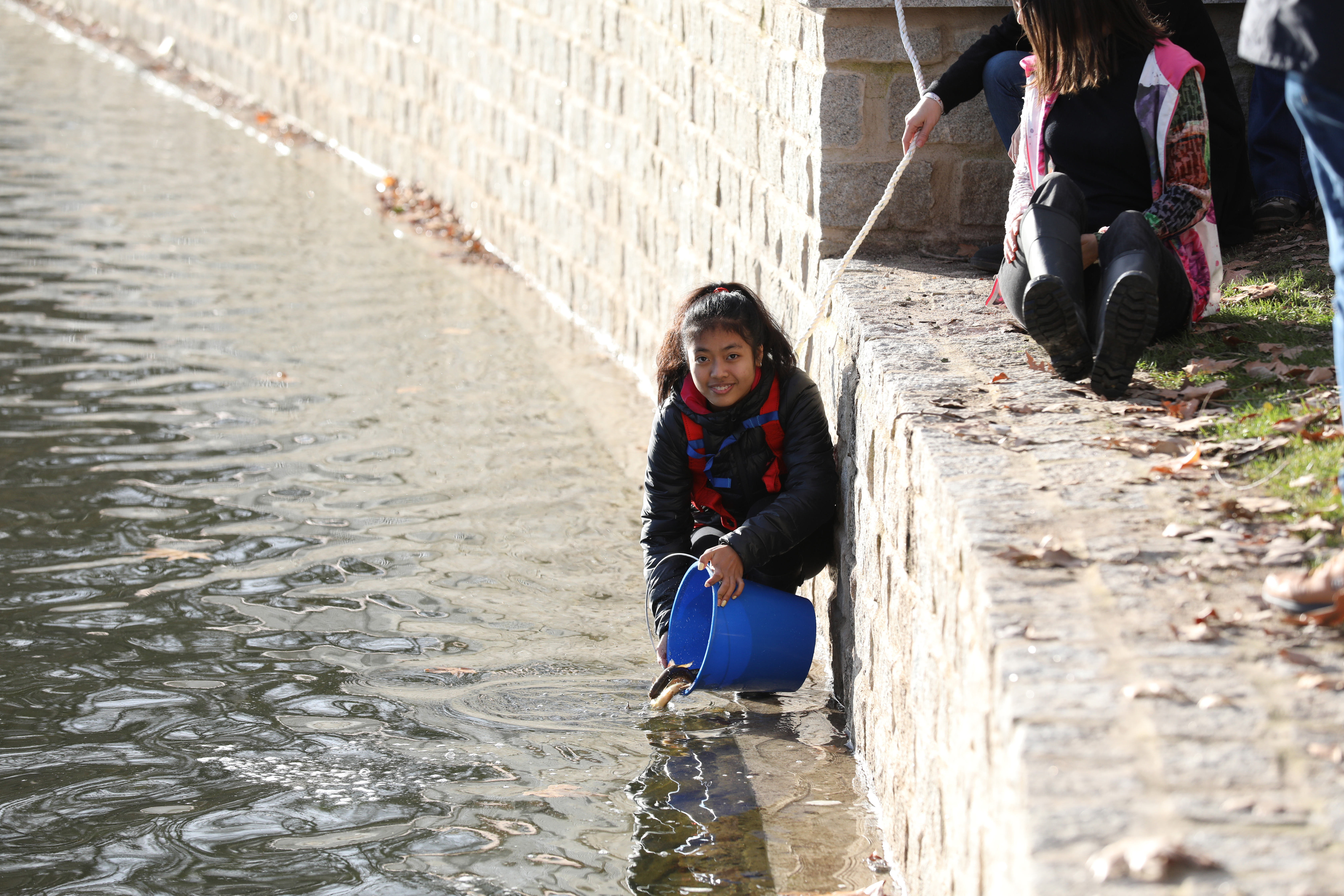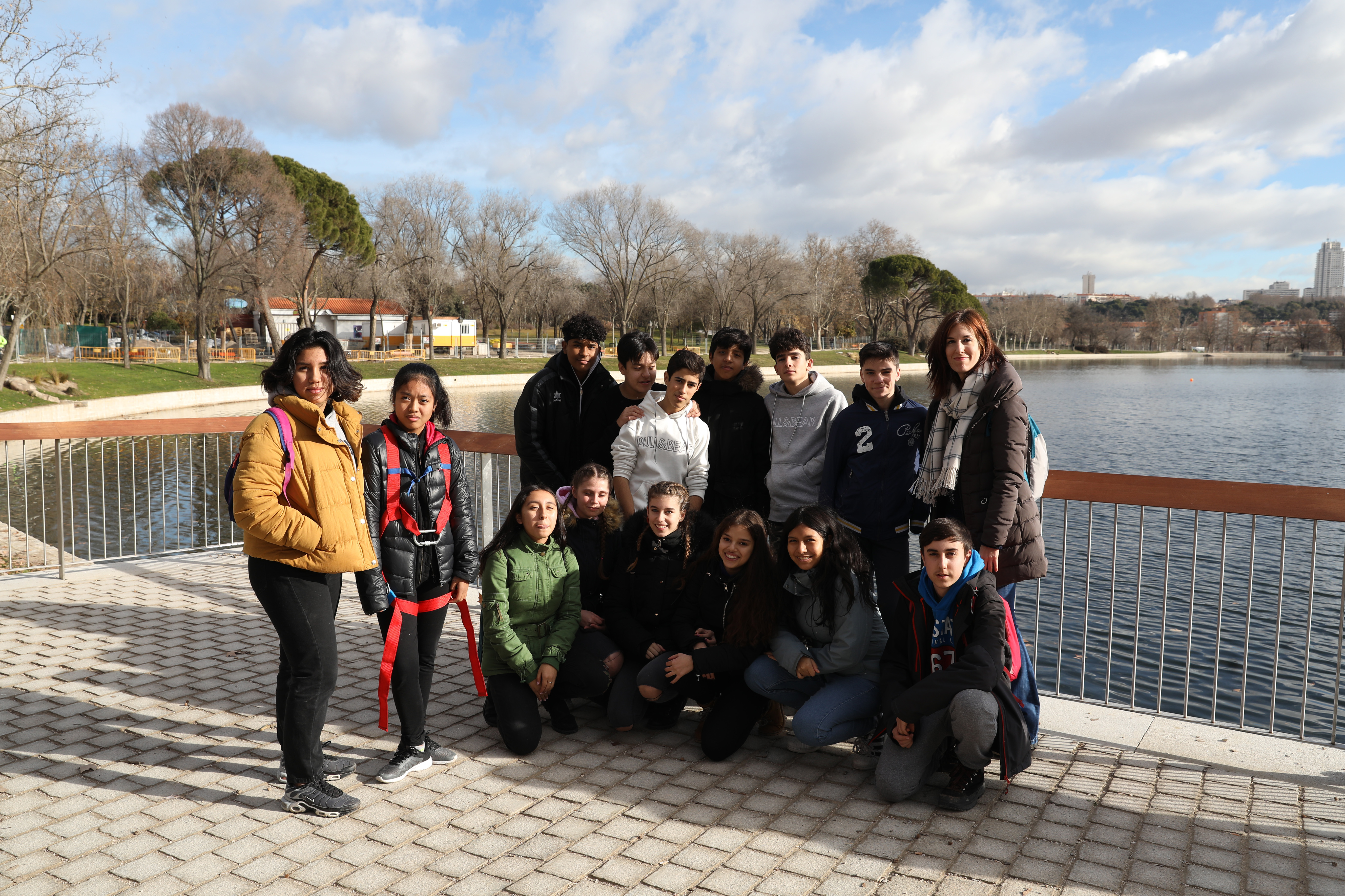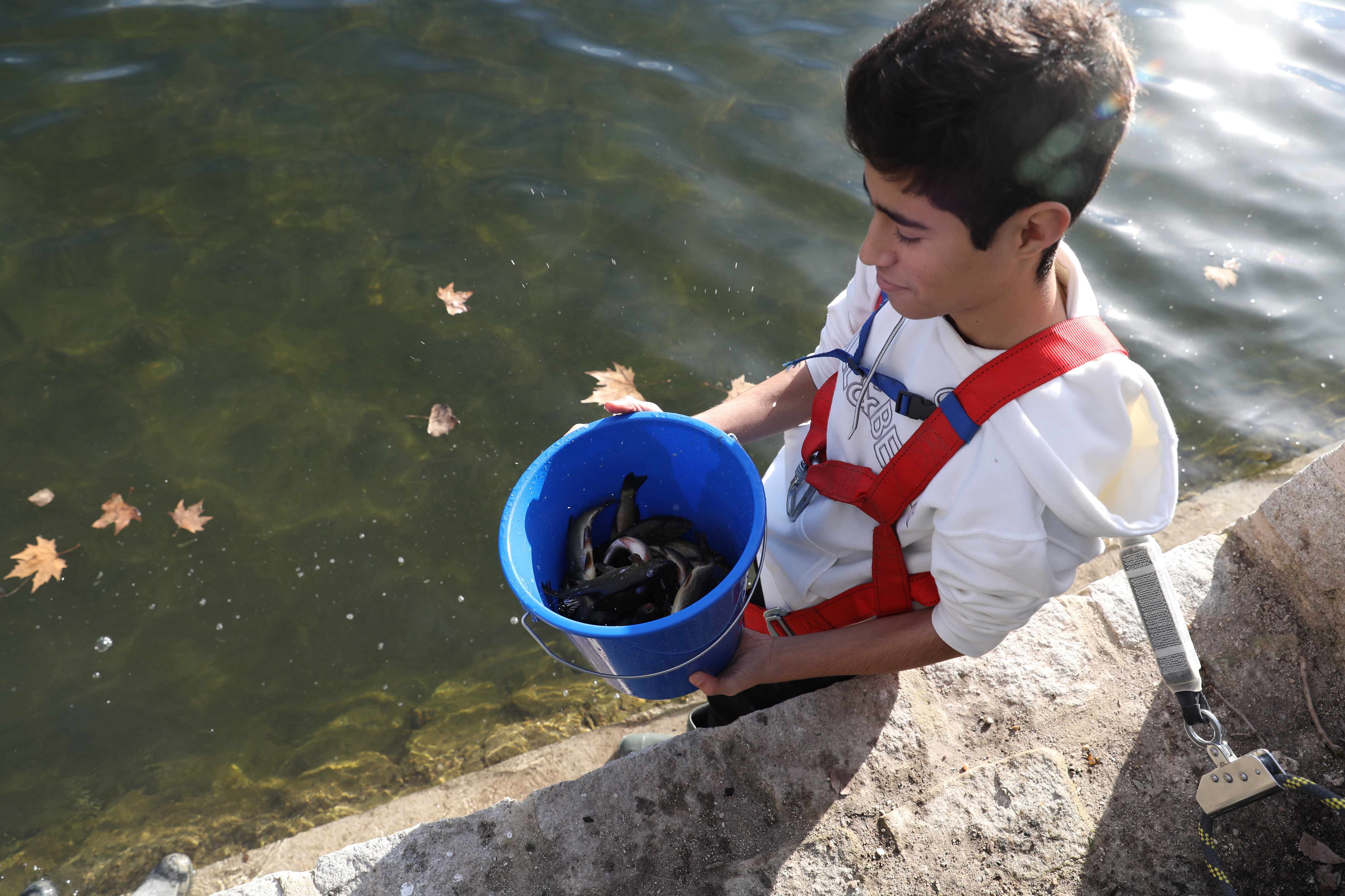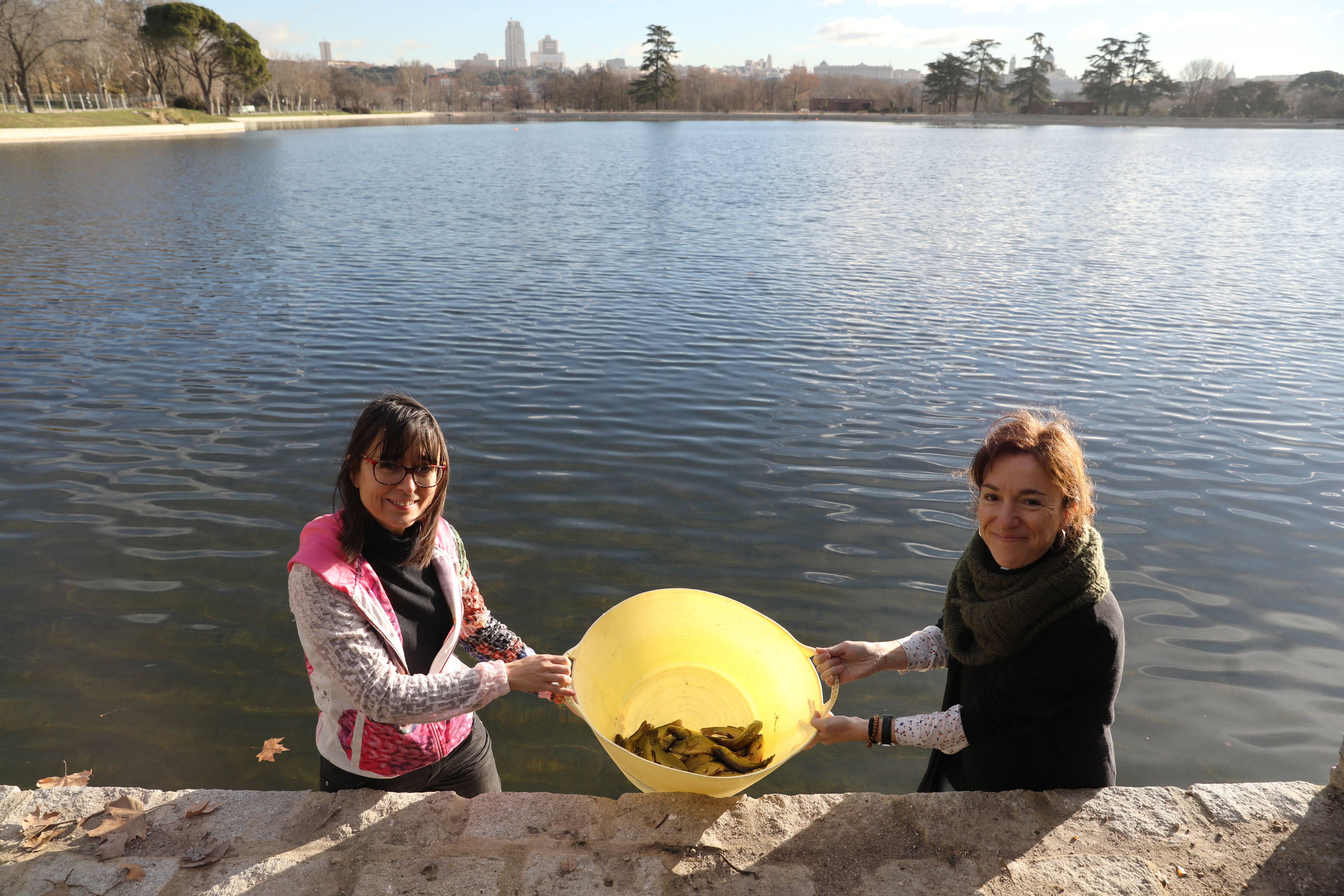 La directora general de Gestión del Agua y Zonas Verdes, Beatriz García San Gabino, ha participado hoy, jueves 24 de enero, en la suelta de 2.000 tencas en el lago de la Casa de Campo junto a un grupo de 15 estudiantes del Instituto de Educación Secundaria Blas de Otero, en el marco de una actividad organizada por el departamento de Educación Ambiental del Ayuntamiento de Madrid.