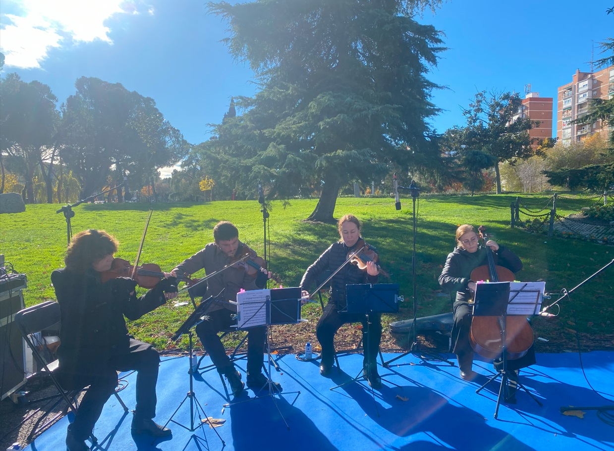 La conmemoración ha estado amenizada con la música de un cuarteto de cuerda que ha interpretado el himno de España durante la ofrenda floral, además de Yesterday para abrir el acto y Tango Español de Albéniz como cierre al homenaje./