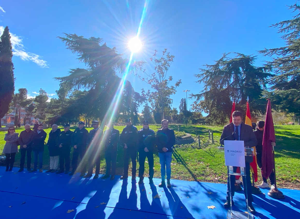 - Se ha realizado una ofrenda floral con la participación de los grupos políticos del distrito, de la Policía Municipal de Madrid, la Policía Nacional y la Base Aérea de Cuatro Vientos