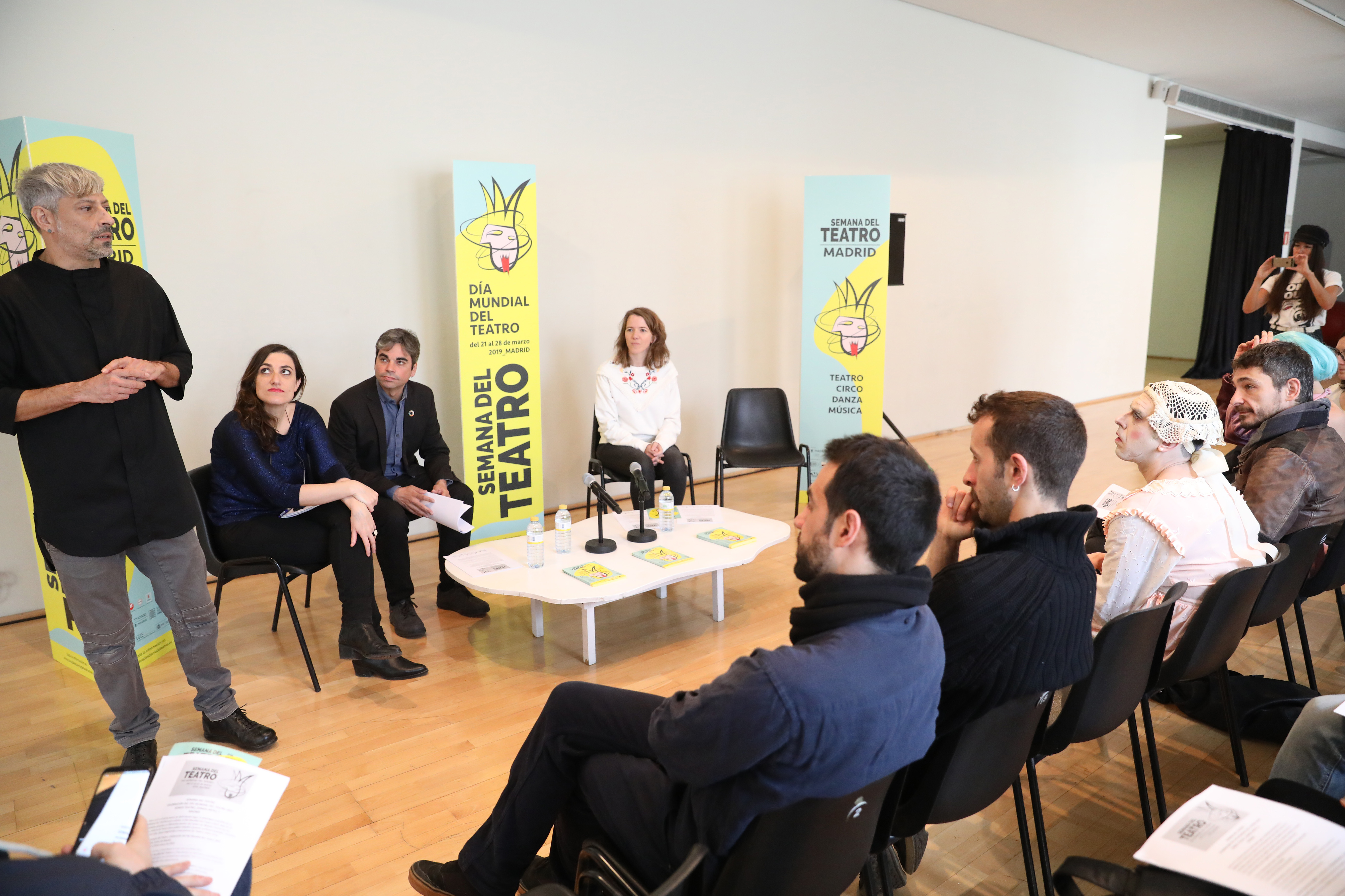 El concejal del distrito de Centro y delegado del Área de Economía y Hacienda, Jorge García Castaño, acompañado de la directora general de Programas y Actividades Culturales, Getsemaní de San Marcos, de la directora del Teatro Circo Price, María Folguera, y del coordinador de la Red de Teatros Lavapiés, Waldo Rosales, han presentado en un acto celebrado esta mañana en el Teatro Circo Price el programa de actividades de la II Semana del Teatro.