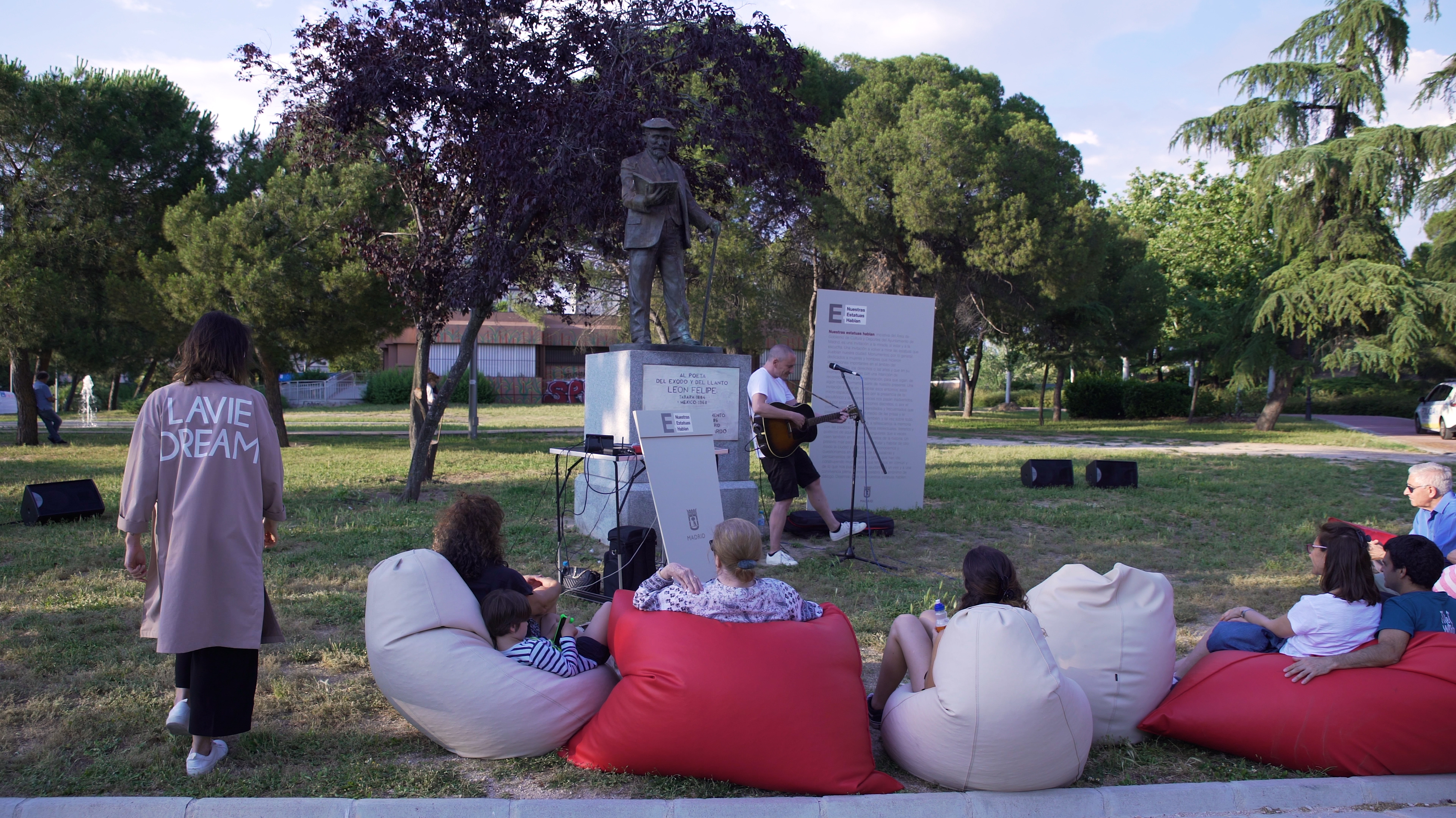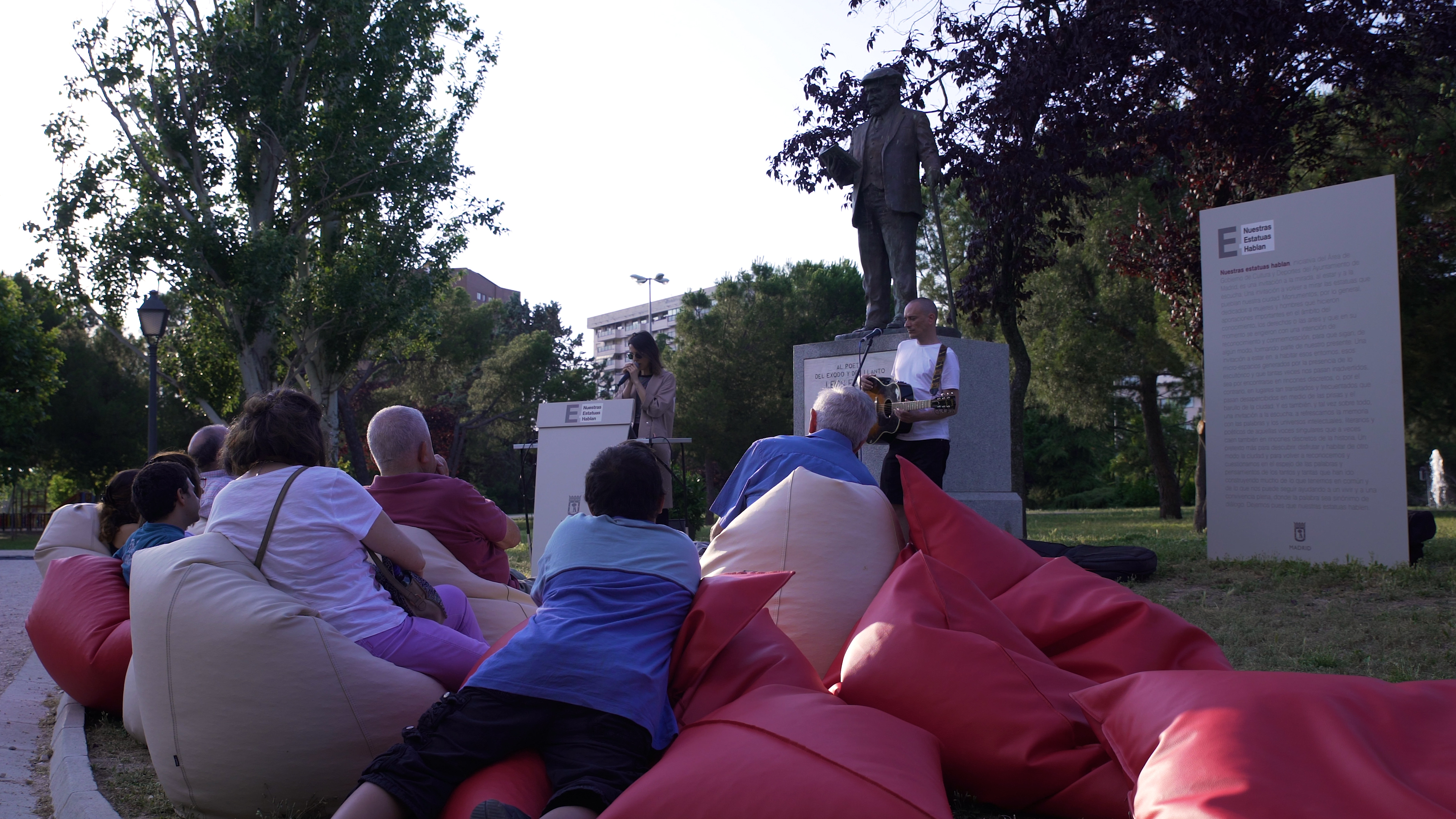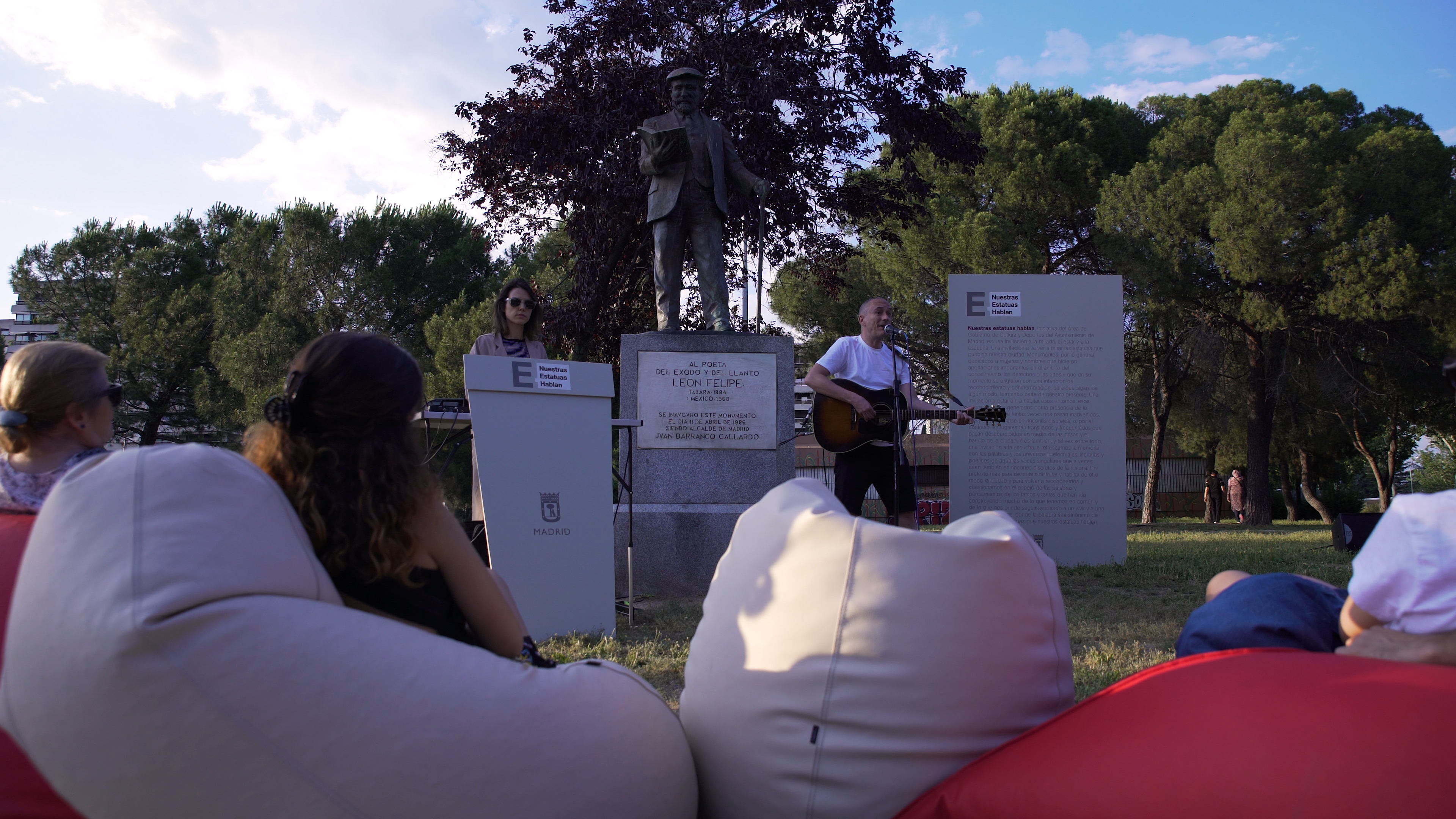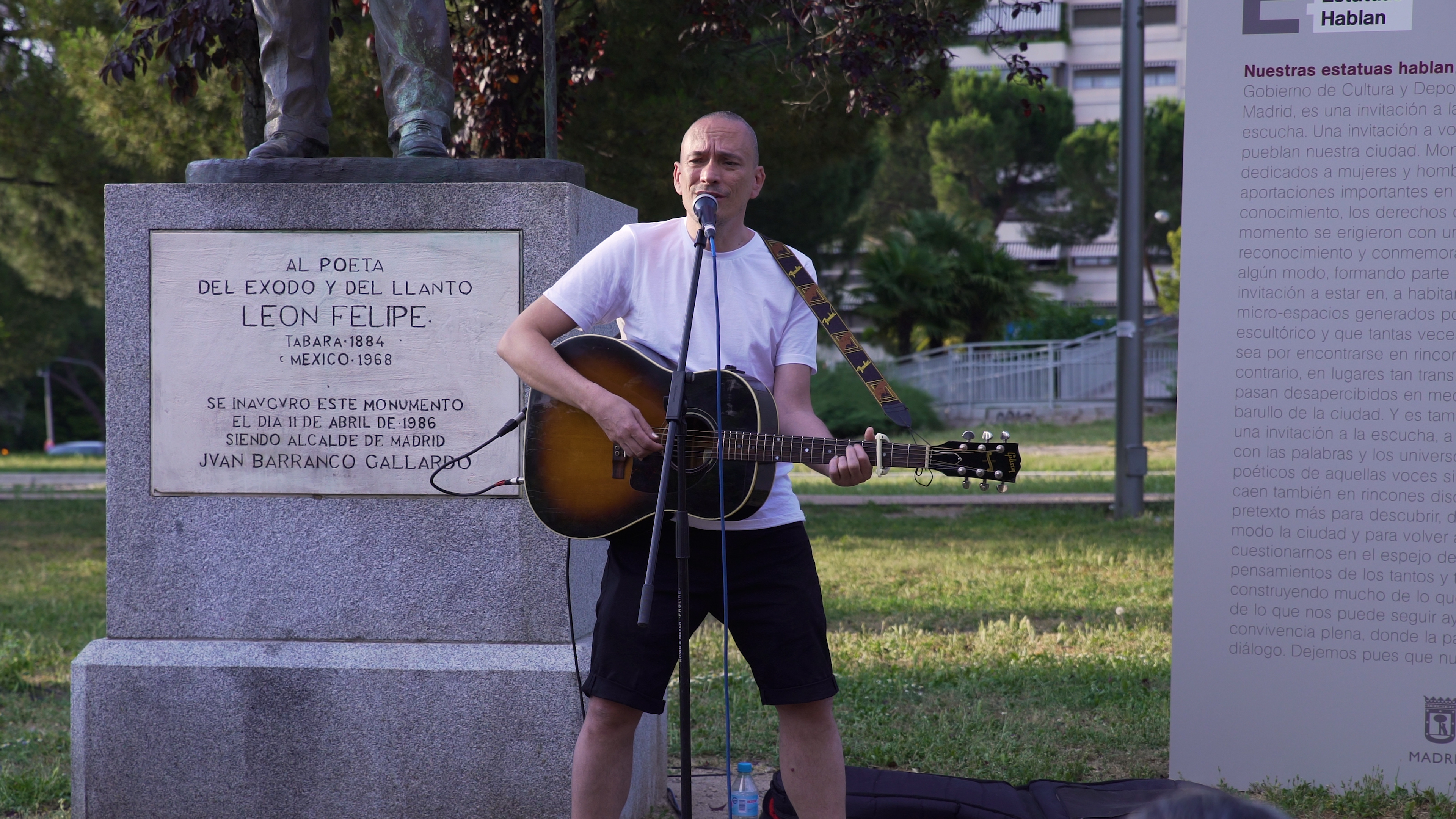 Las estatuas madrileñas continúan tomando la palabra. Dentro del ciclo ‘Nuestras estatuas hablan’, organizado por el área de Cultura y Deportes del Ayuntamiento de Madrid, para invitar a los madrileños y madrileñas a redescubrir el patrimonio escultórico de la ciudad a través de intervenciones artísticas, le llegó el turno al poeta León Felipe, del que este año se cumple el 50 aniversario de su muerte. La cantante Lekuona y el poeta y cantautor Javier Álvarez fueron esta vez los encargados de poner voz y música a la estatura de León Felipe, situada en el Parque Norte en el distrito de Fuencarral-El Pardo.