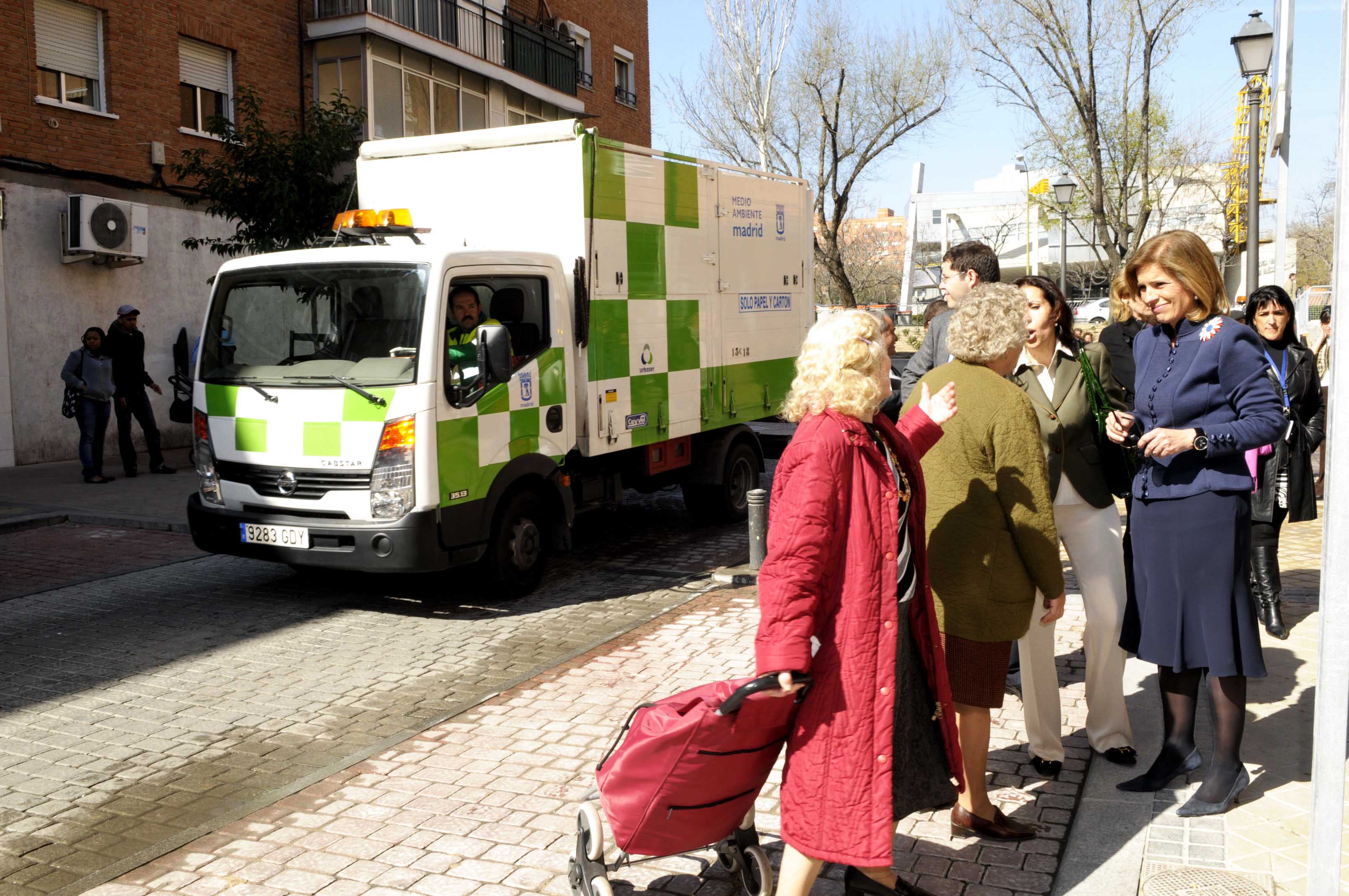 Ana Botella, delegada de Medio Ambiente, ha visitado hoy el distrito de Puente de Vallecas en donde se han realizado ya 4 actuaciones -cada una de ellas dura una semana y en ella intervienen 92 operarios ayudados por 60 máquinas-, de las 24 que se harán en todo el distrito.