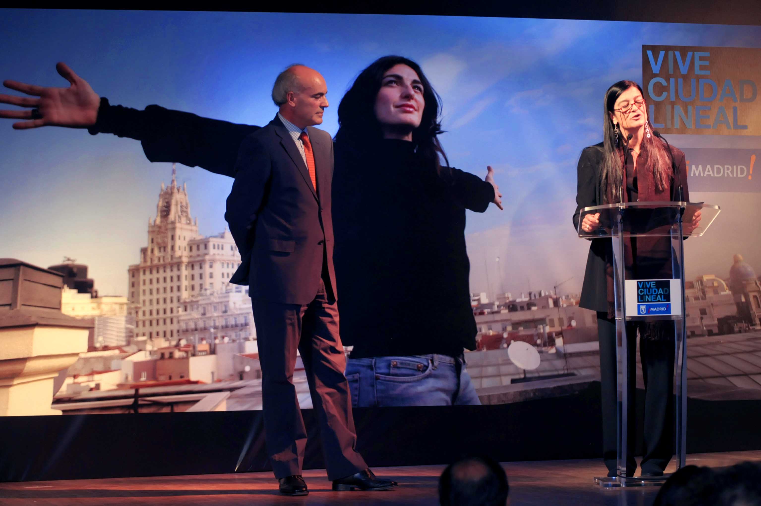 La delegada de las Artes, Alicia Moreno, durante la presentación del programa cultural "Línea Artes". A la izquierda de la fotografía, el concejal de Ciudad Lineal, Manuel Troitiño