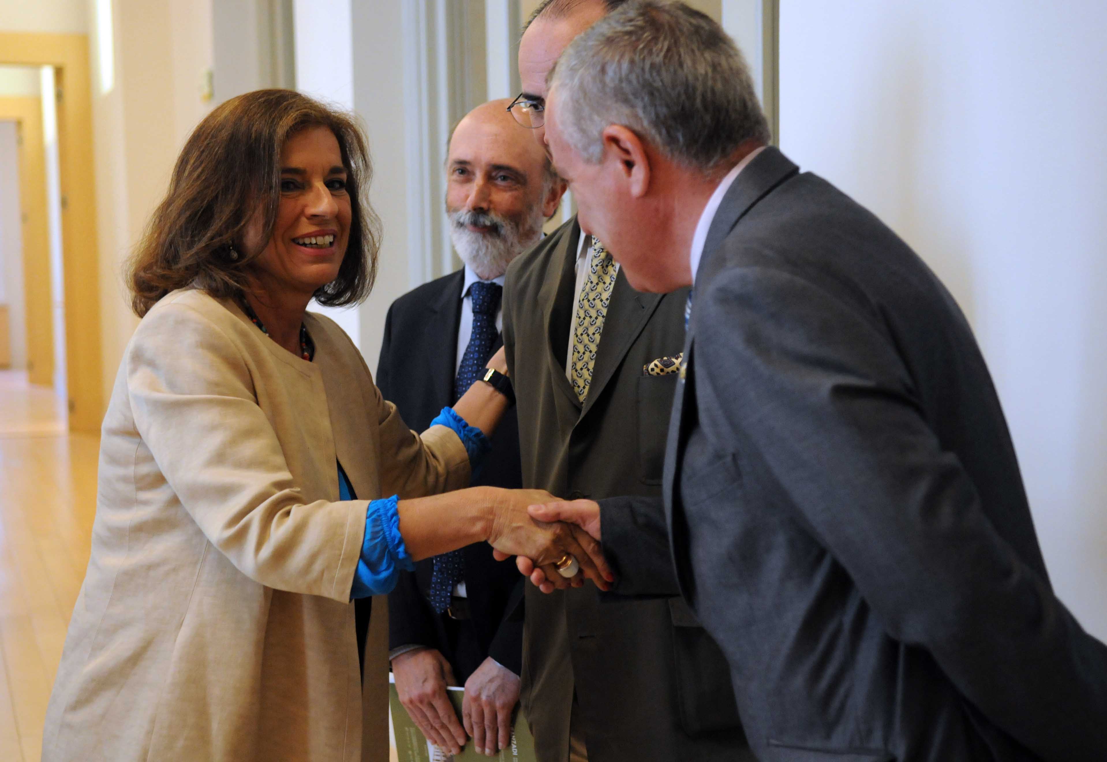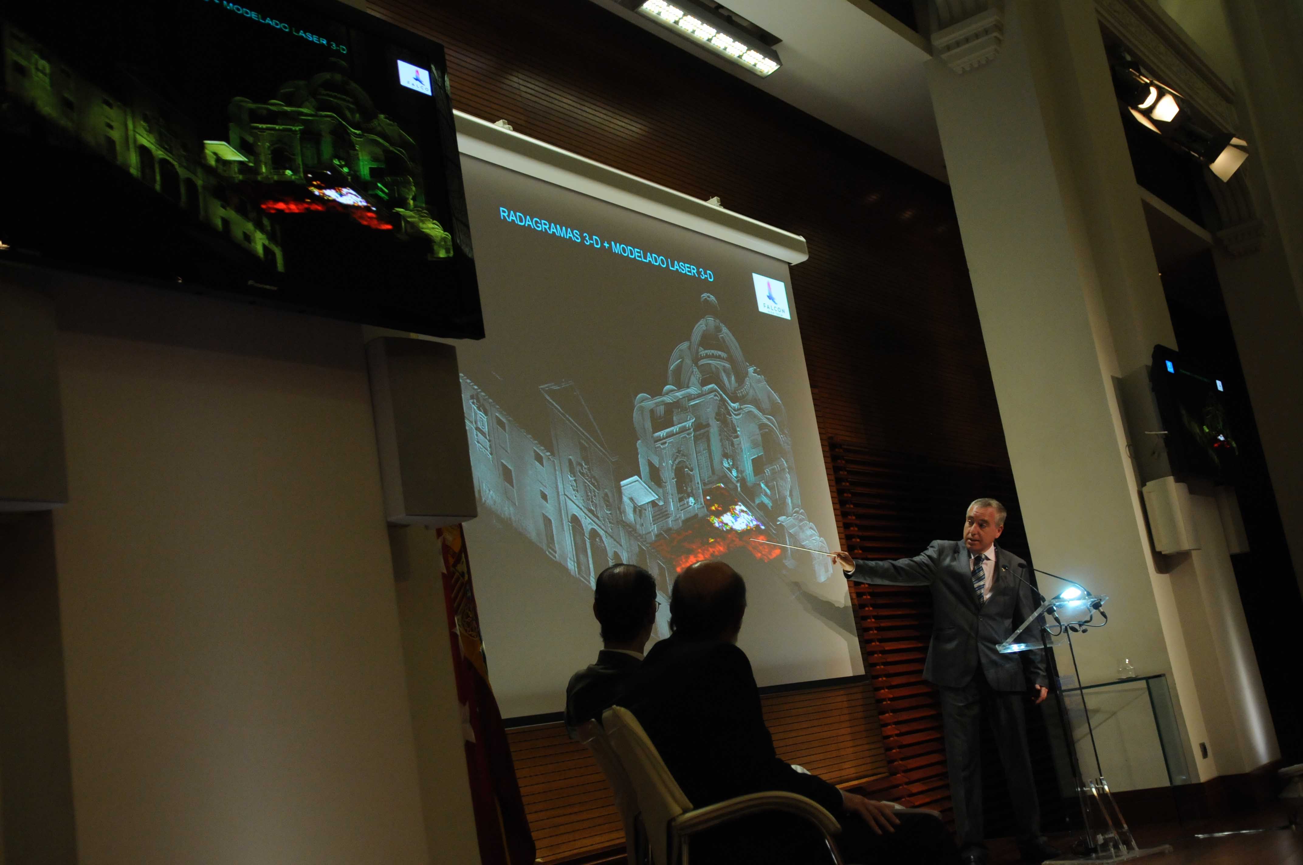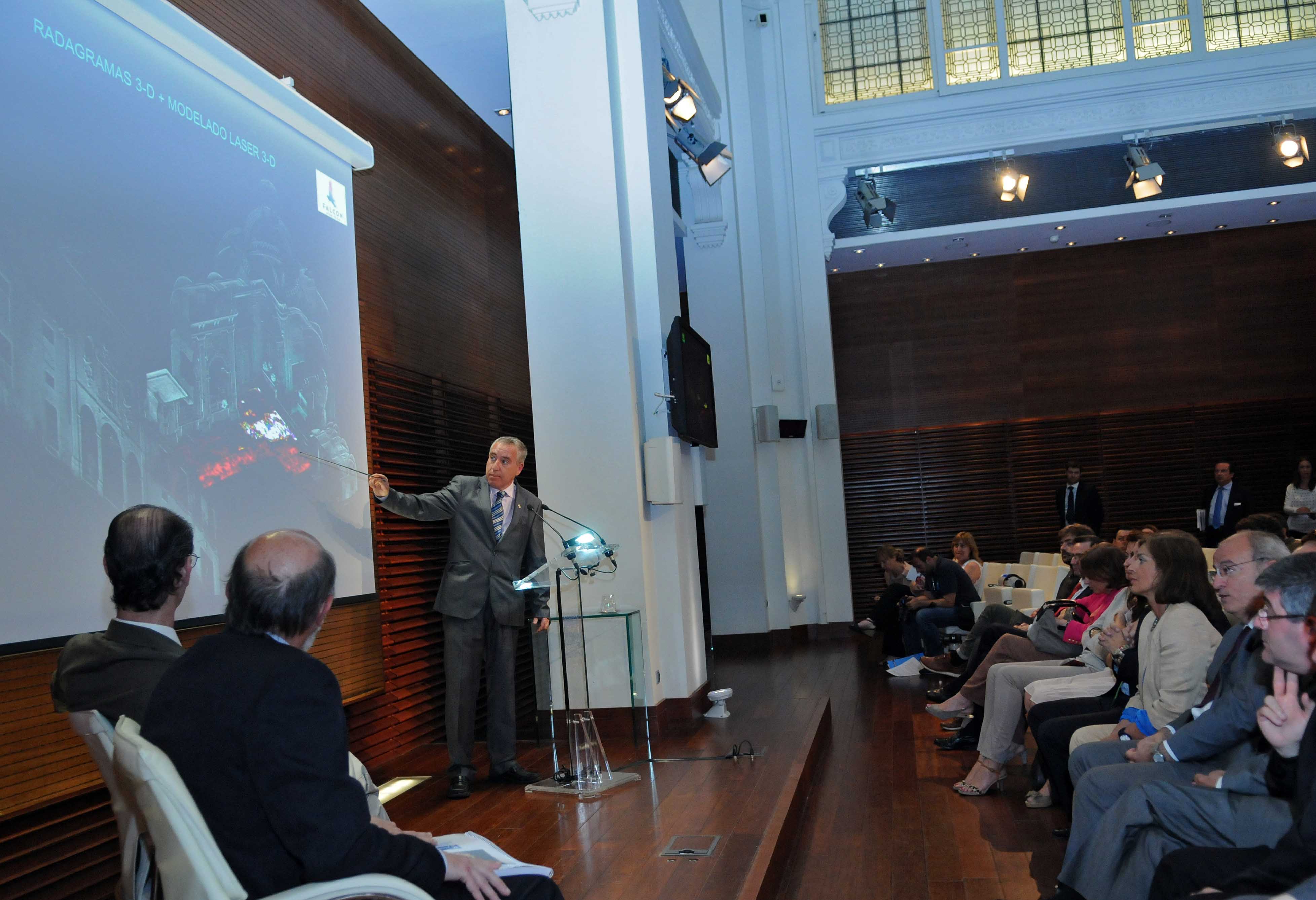 La alcaldesa de Madrid, Ana Botella, ha asistido hoy a la rueda de prensa celebrada en el Palacio de Cibeles para presentar las conclusiones de los trabajos de búsqueda con georadar de los restos del escritor Miguel de Cervantes en el Convento de Las Trinitarias. La prospección, iniciada el pasado 28 de abril, ha localizado cinco zonas con posibles enterramientos en la cripta de la iglesia. Las imágenes recogen varios momentos de la presentación del estudio, impulsado por el historiador Fernando de Prado, el investigador Luis Avial y el antropólogo forense Francisco Etxeberria./