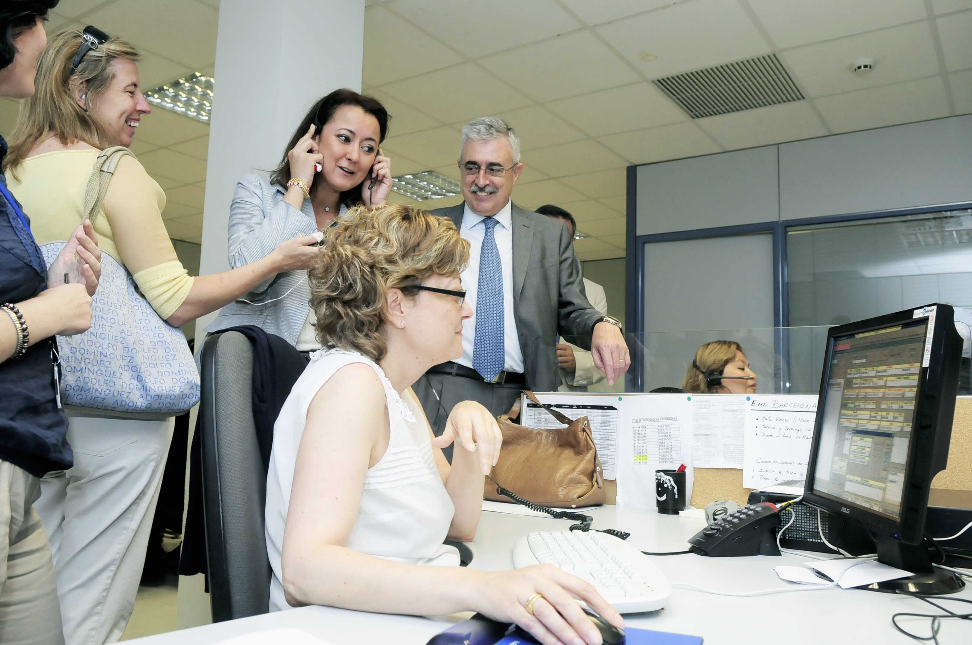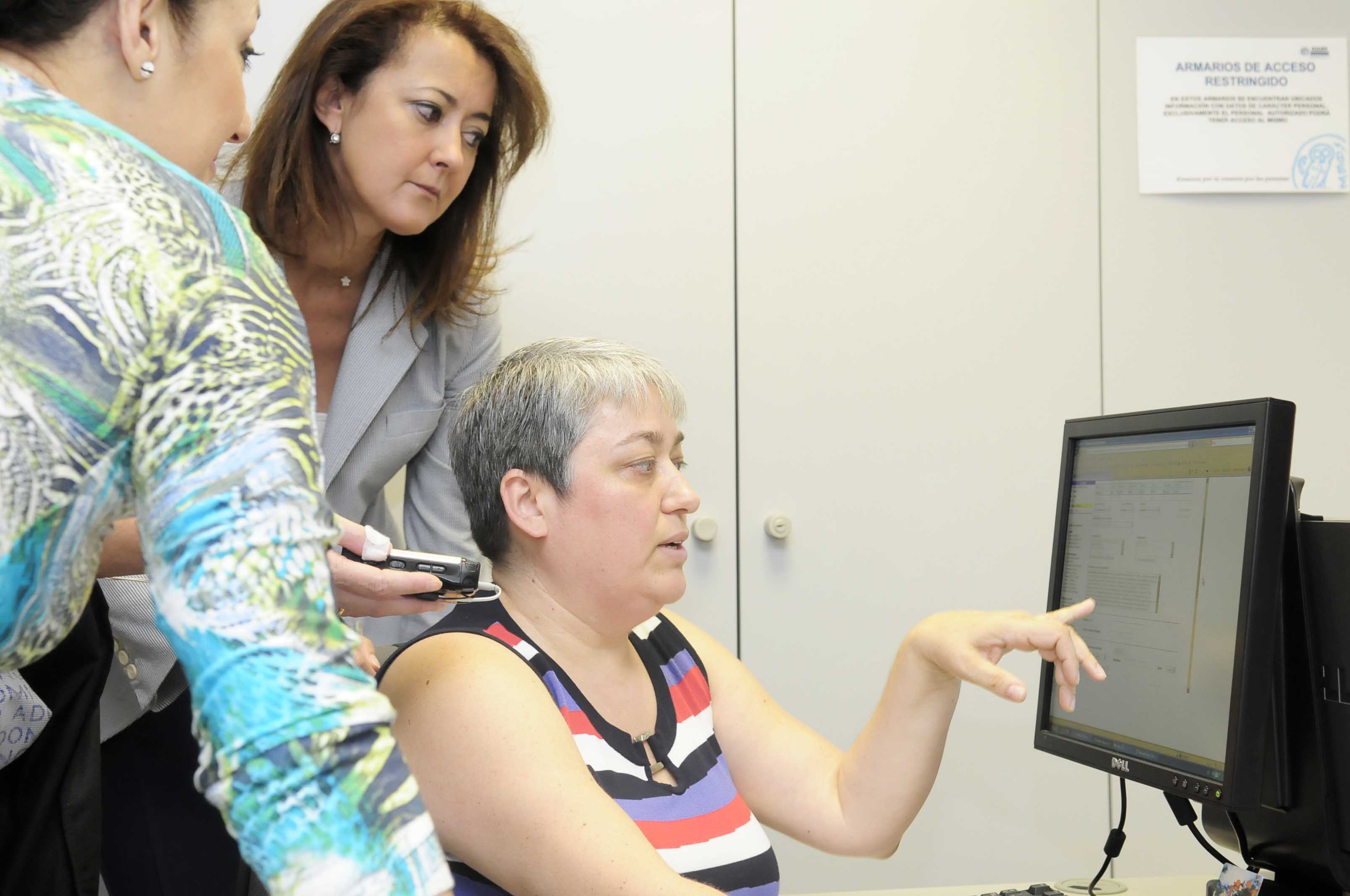 La delegada de Familia y Servicios Sociales, Lola Navarro, durante a su visita a EULEN donde ha comprobado "in situ" el funcionamiento del servicio de ayuda a domicilio