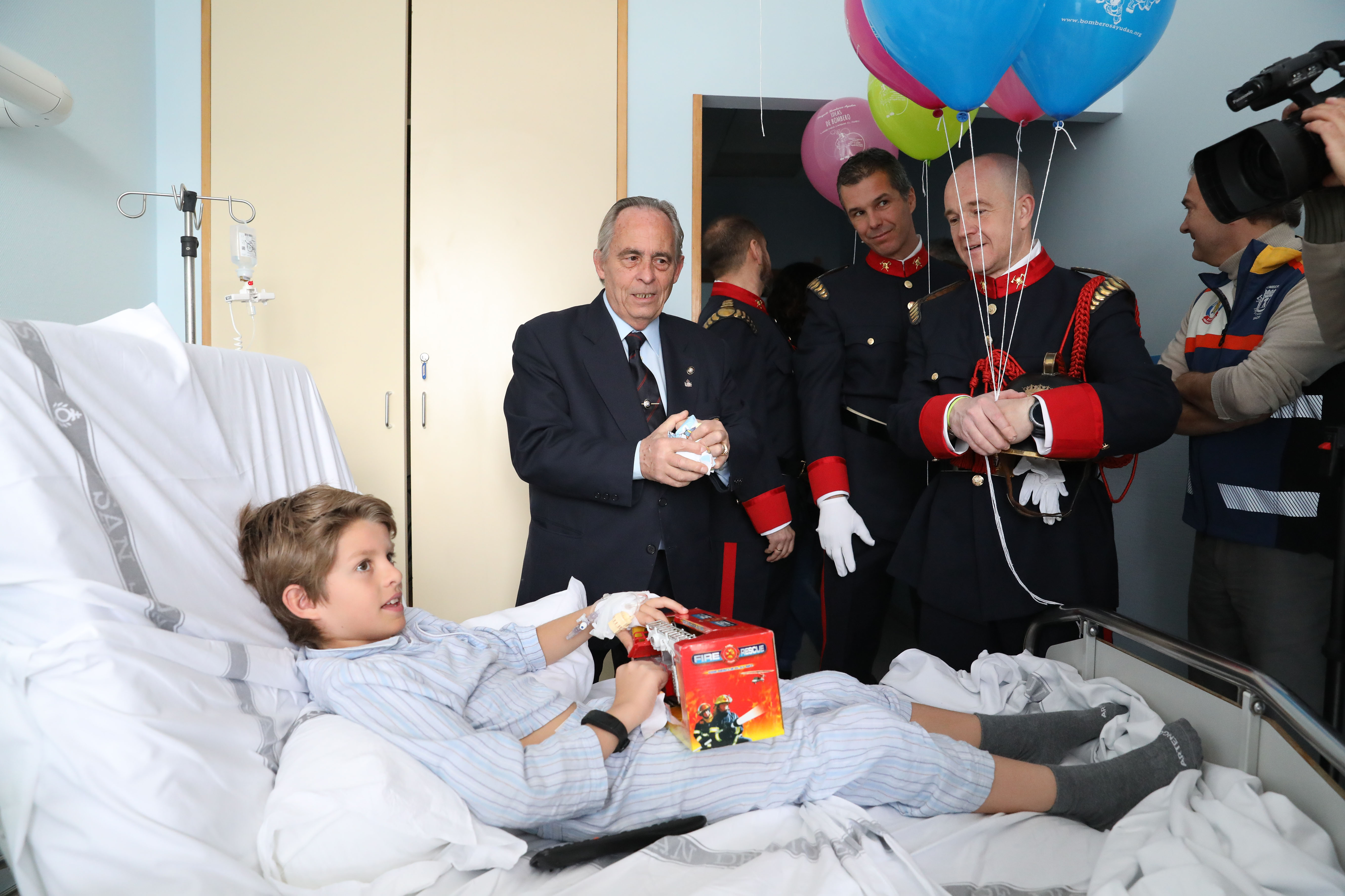 Acompañados por el director general de Emergencias, Ignacio Becerril, y el Inspector Jefe del cuerpo, Eugenio Amores, los bomberos han estado con los pequeños en sus habitaciones, les han regalado juguetes y, posteriormente, han realizado una exhibición con sus equipamientos y sus vehículos en el entorno del hospital: se han descolgado por la fachada del hospital, han lanzado espuma, han subido y bajado con la escala y han simulado una maniobra de rescate, un espectáculo dirigido especialmente a los niños y a sus familiares.