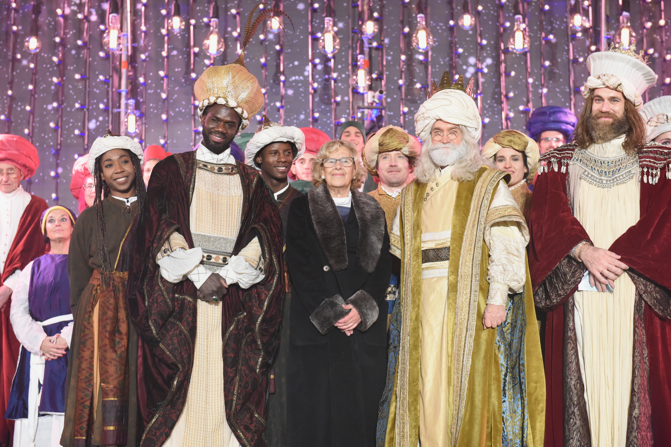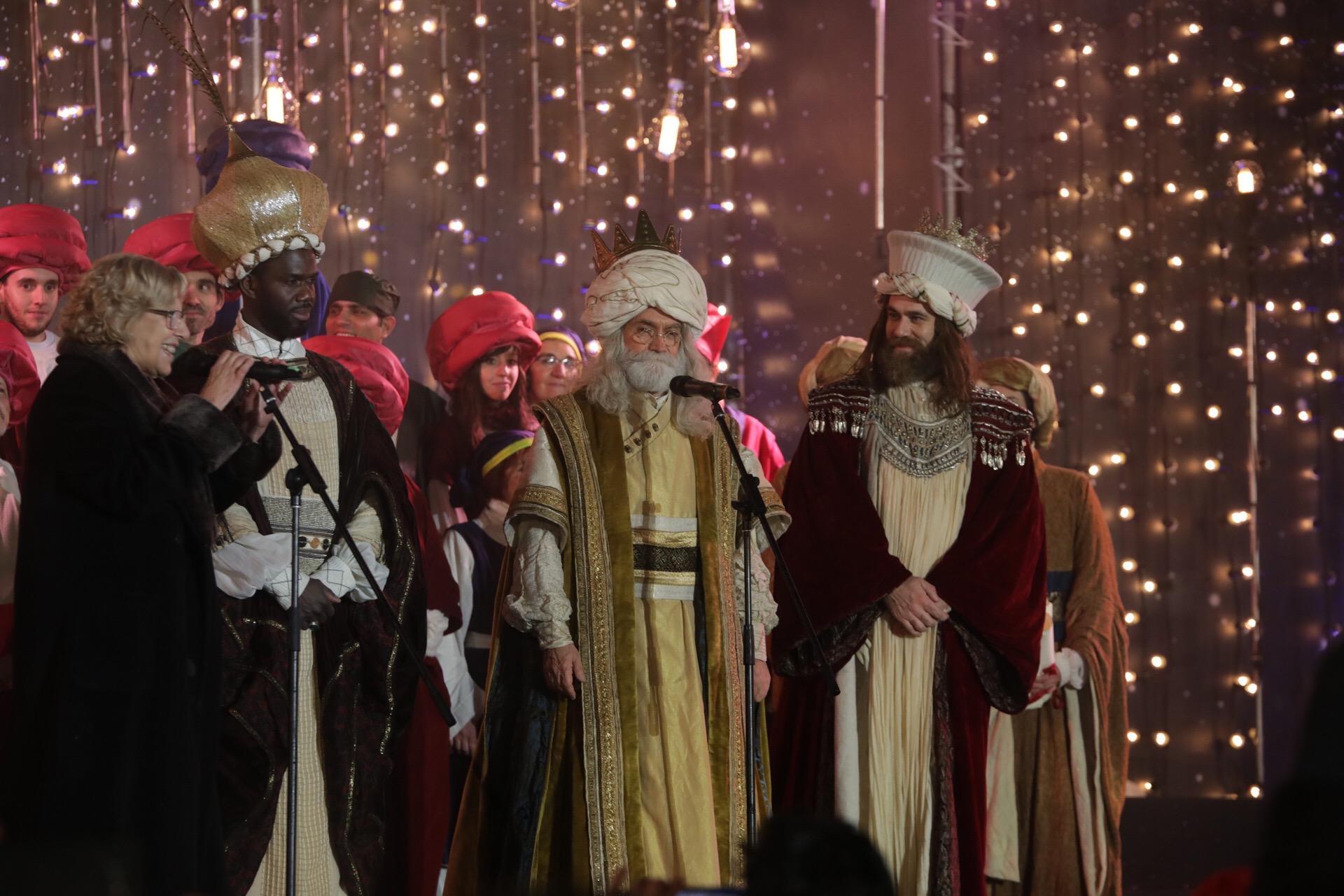 El gran desfile, que partió de Nuevos Ministerios a los 18.30 horas, ha llenado las calles de la ciudad de fantasía, magia, deseos y creatividad. La alcaldesa de Madrid, Manuela Carmena, ha dado la bienvenida a Sus Majestades a su llegada a la plaza de Cibeles, donde ha terminado el recorrido. Sobre este escenario, tres niños sordos han entregado su carta a los Reyes Magos de Oriente y el discurso de Manuela Carmena se ha traducido por una intérprete de lengua de signos.