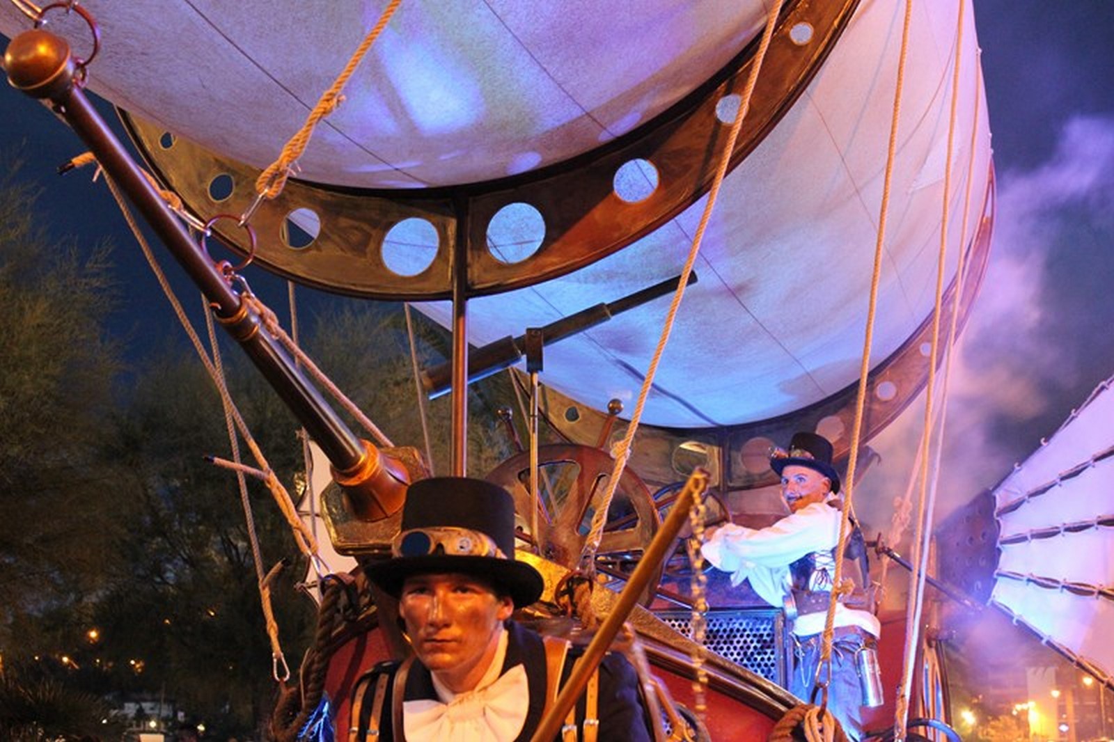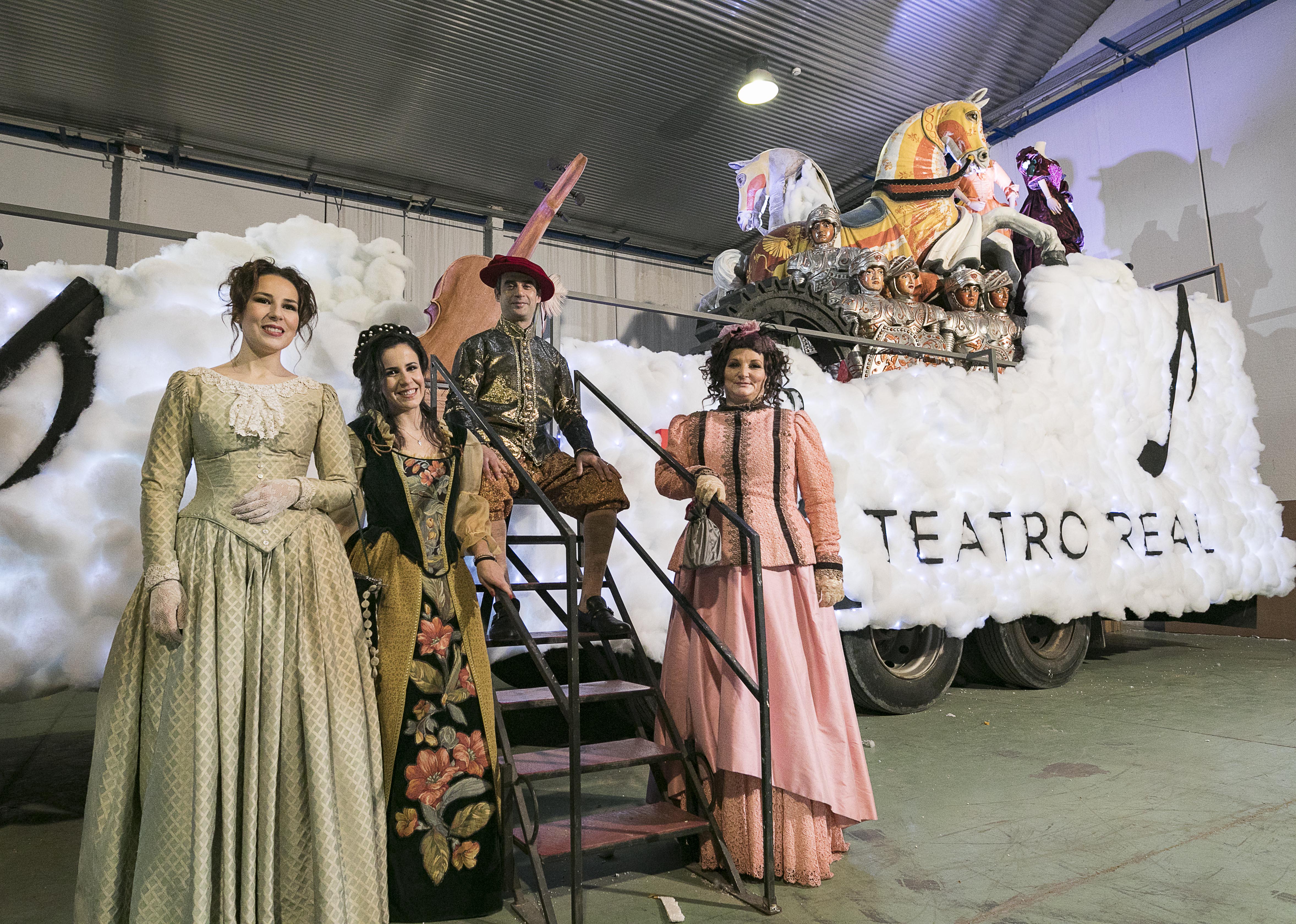La carroza, que incluye piezas tan destacadas como los autómatas de Los cuentos de Hoffmann de Jacques Offenbach, el zapato rojo del Don Quijote de Cristóbal Halffter, o caballitos y soldados de Tancredi de Gioacchino Rossini, llevará además a treinta niños que desfilarán sobre la carroza, y se verá acompañada de una comitiva formada por treinta personajes caracterizados con el vestuario de solistas, cantantes del coro, actores o bailarines de L’elisir d’amore de Gaetano Donizetti, Il tutore burlato de Martín y Soler, La forza del destino de Giuseppe Verdi, La bohème de Giacomo Puccini o Divinas Palabras de Antón García Abril, que desfilarán al son de populares arias de ópera y olores que evocan a la infancia.