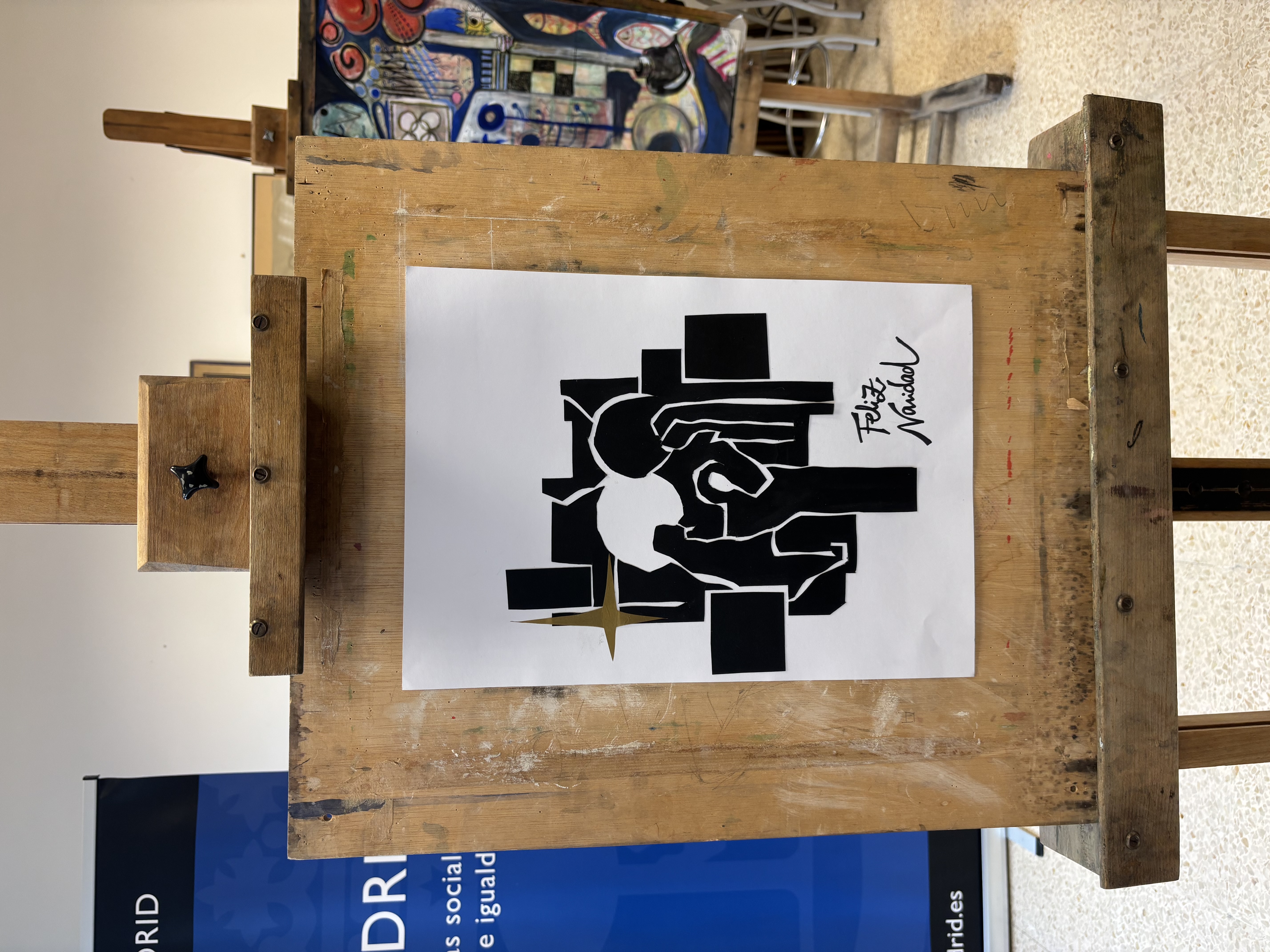 El diseño presentado por Laura Moreta, alumna de primer curso de la asignatura ‘Bases de enseñanzas cerámicas’, ha sido elegido ganador. La artista ha homenajeado a Eduardo Chillida en el centenario de su nacimiento inspirándose en sus grabados, en el contraste entre blanco y negro, en el ritmo de sus composiciones y en la fuerza de los bloques para dar forma mediante un collage a un misterio de Navidad en el que aparecen la Virgen, San José, el Niño y la estrella.