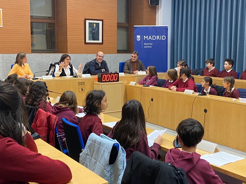 El próximo día 6 de diciembre se conmemora el 44º aniversario de la Constitución Española. Para acercar la Carta Magna a los más pequeños de Centro, el concejal del distrito ha presidido hoy un acto con alumnado de 5º y 6º de primaria del CEIP San Ildefonso en el que ha participado la periodista y cronista parlamentaria Lucía Méndez.
