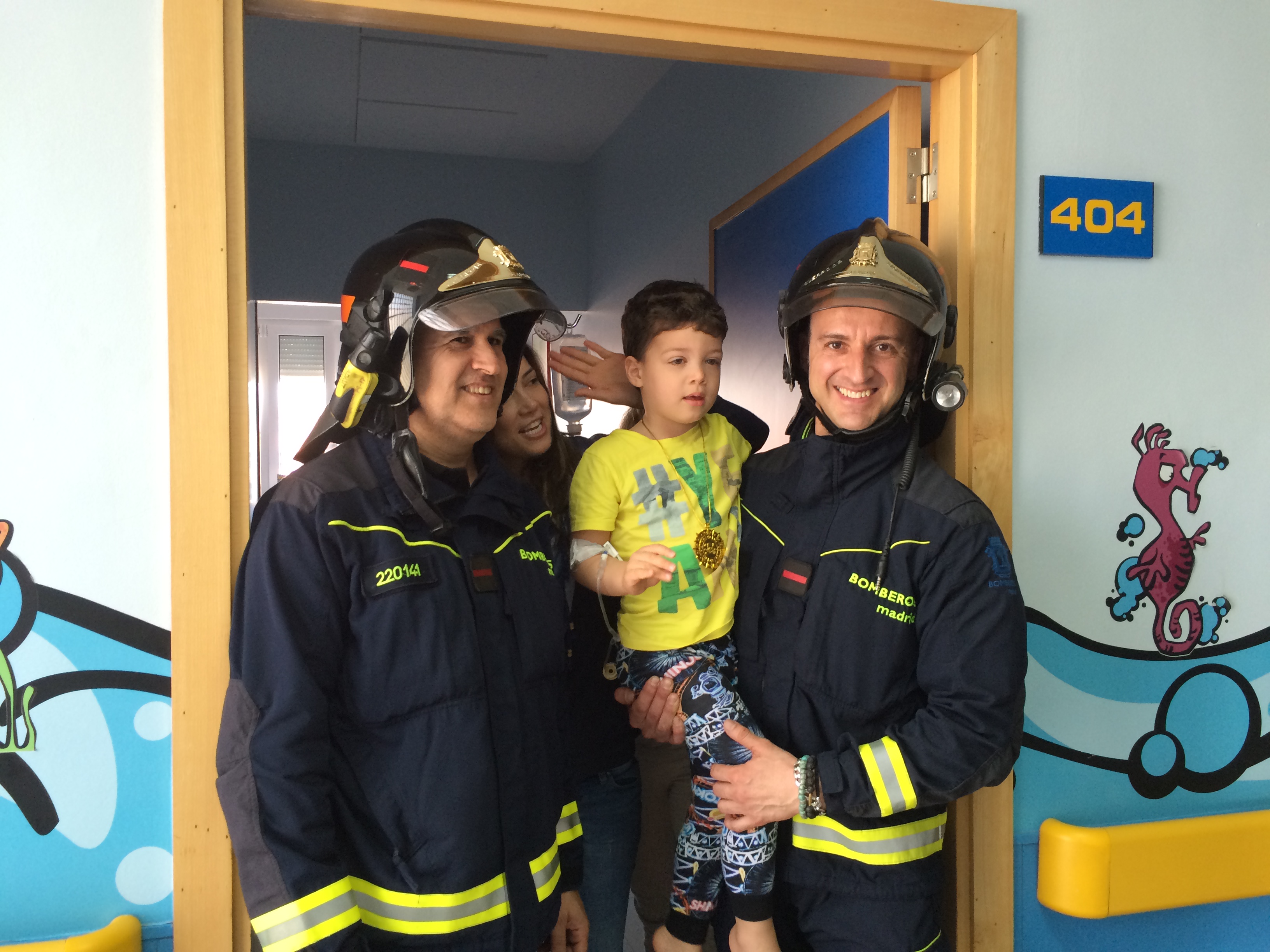 El delegado de Salud, Seguridad y Emergencias, Javier Barbero, y los bomberos del Ayuntamiento de Madrid han visitado esta mañana a los niños ingresados en el Hospital de San Rafael con motivo de la celebración de San Juan de Dios, patrón del Cuerpo. Se trata de una tradición que vienen cumpliendo desde hace más de 50 años.