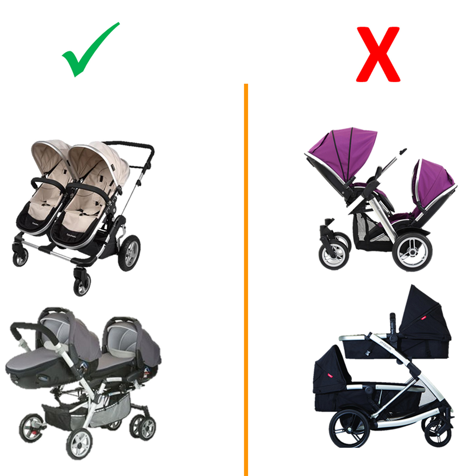 Por otro lado, es obligatorio que ambos niños vayan situados en sentido contrario a la marcha del autobús, al igual que ocurre con los cochecitos o sillitas para un solo bebé. Por tanto, no se autorizará el acceso de carritos dobles en los que los bebés viajan enfrentados uno a otro.