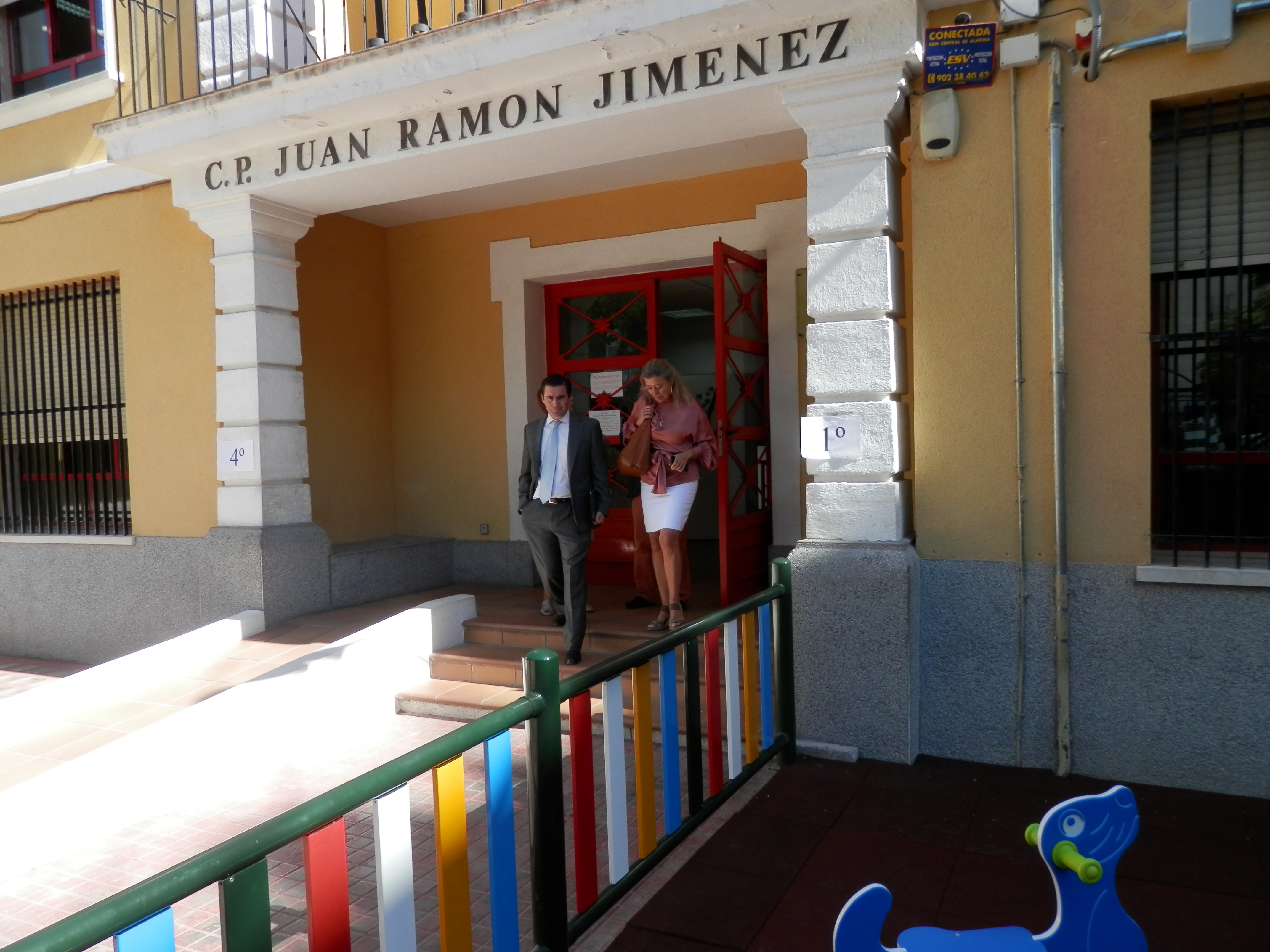 Paloma García Romero durante su visita al CEIP Juan Ramón Jiménez, donde se han invertido más de 86.000 euros en mejoras de la instalación eléctrica, gimnasio patio y zona infantil