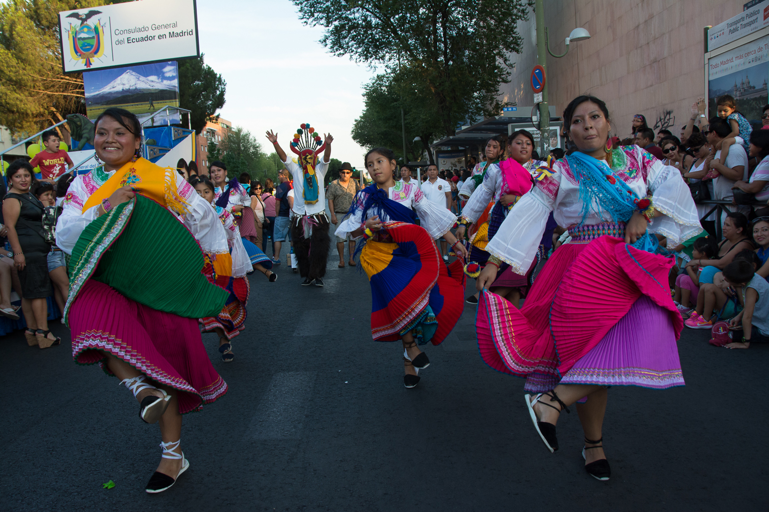 Los ecuatorianos afincados en Madrid celebraron los 206 años de independencia de su país ayer con un desfile que discurrió por la avenida de los Hermanos García Noblejas, en el entorno del metro de Ciudad Lineal. Los participantes, ataviados con sus trajes típicos, mostraron sus expresiones musicales y danzas, sacaron a la calle carrozas alegóricas y comparsas e invitaron a degustar platos típicos de su país. Toda una fiesta en la que estuvieron presentes las concejalas del Ayuntamiento Marta Higueras y Yolanda Rodríguez, invitadas por el embajador de Ecuador en España, Miguel Calahorrano.