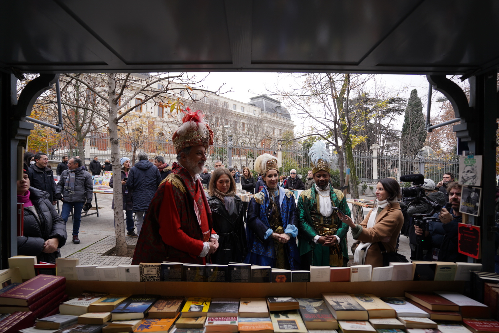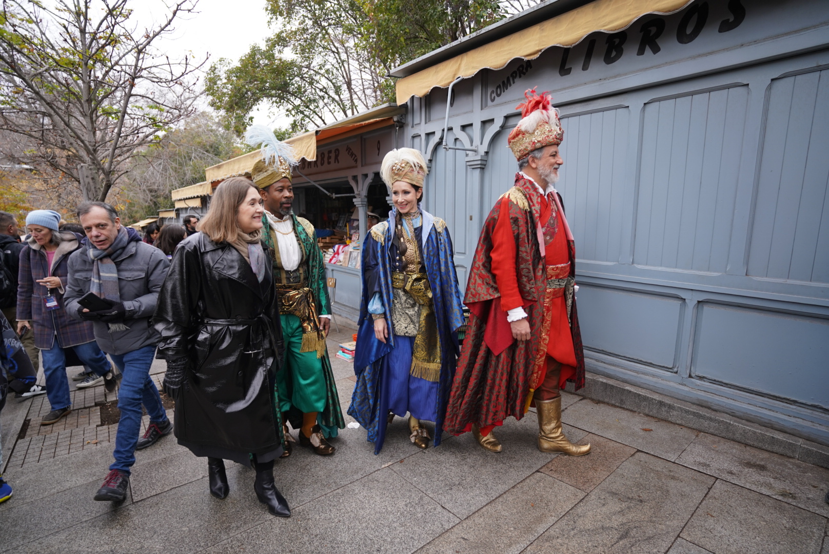 Los libros suelen ser parte de los regalos que aparecen en la mañana del 6 de enero junto al árbol de Navidad y por eso los Reyes Magos han enviado hoy a sus emisarios a uno de los lugares más literarios de Madrid, la Cuesta de Moyano, donde han estado acompañados por la delegada de Cultura, Turismo y Deporte, Marta Rivera de la Cruz.