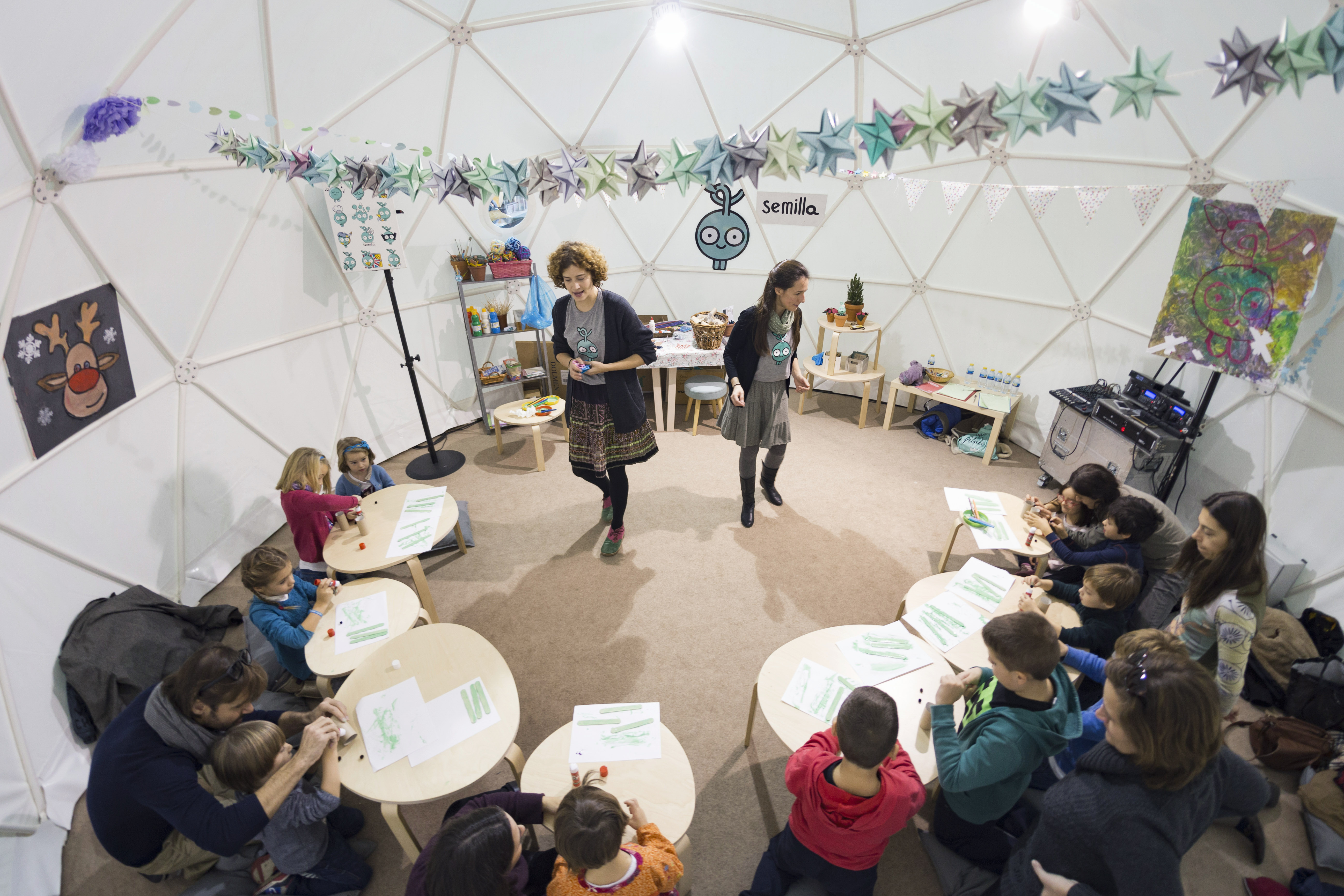 - En el ‘Iglú de la Creatividad’ se celebran talleres para oír y tocar música, hacer mochilas espaciales o aprender a bailar