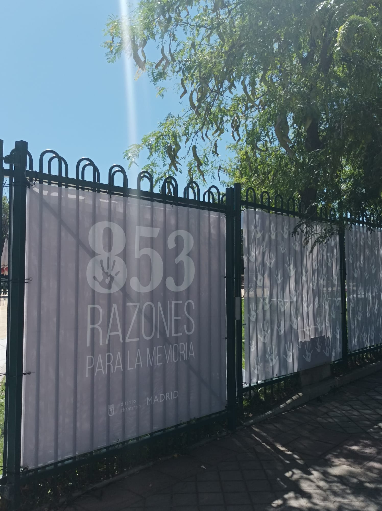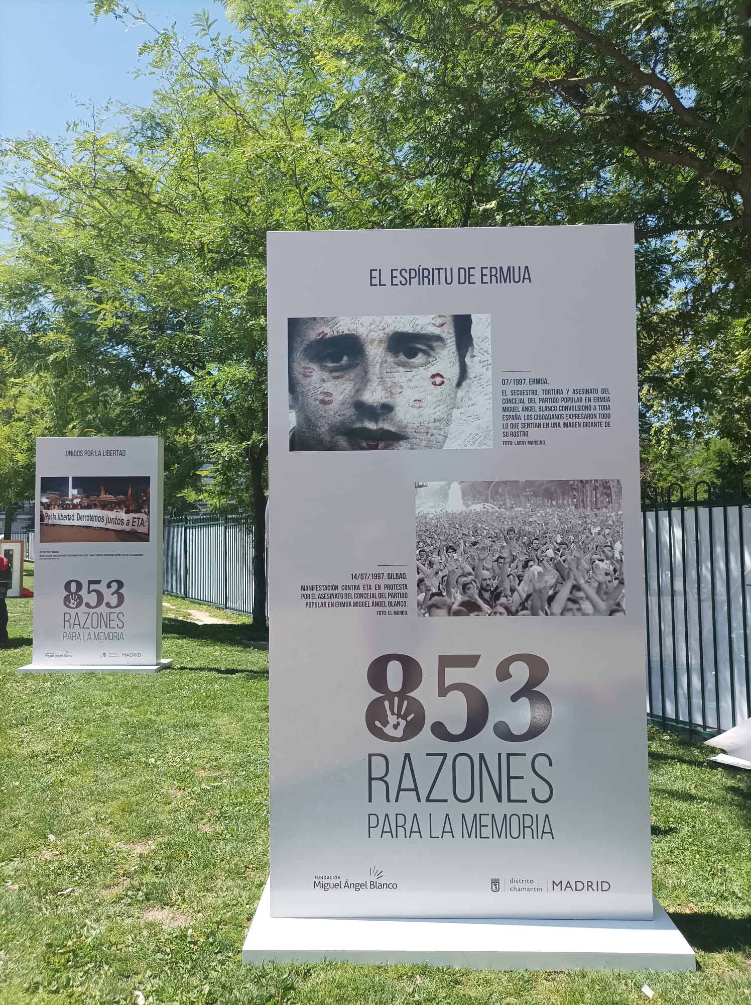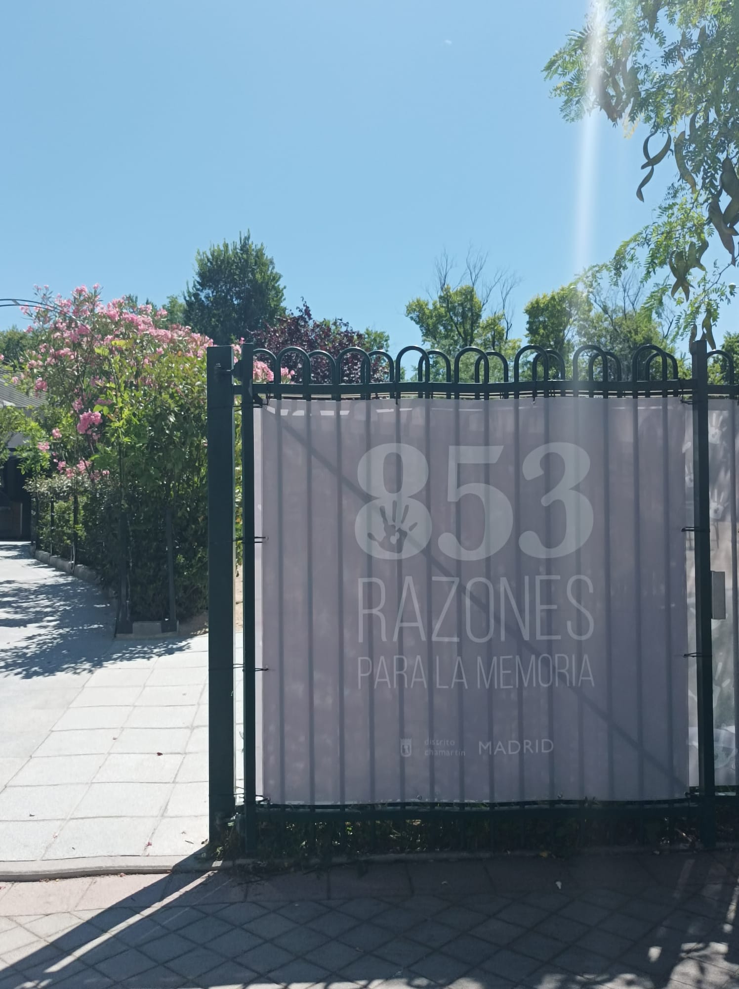 En el interior de los jardines, situados en la calle Federico Salmón, en el distrito de Chamartín, se podrá visitar una muestra de fotografías titulada 853 razones para la memoria, fotos que simbolizan el llamado espíritu de Ermua y son un homenaje a todas las víctimas de la banda terrorista.