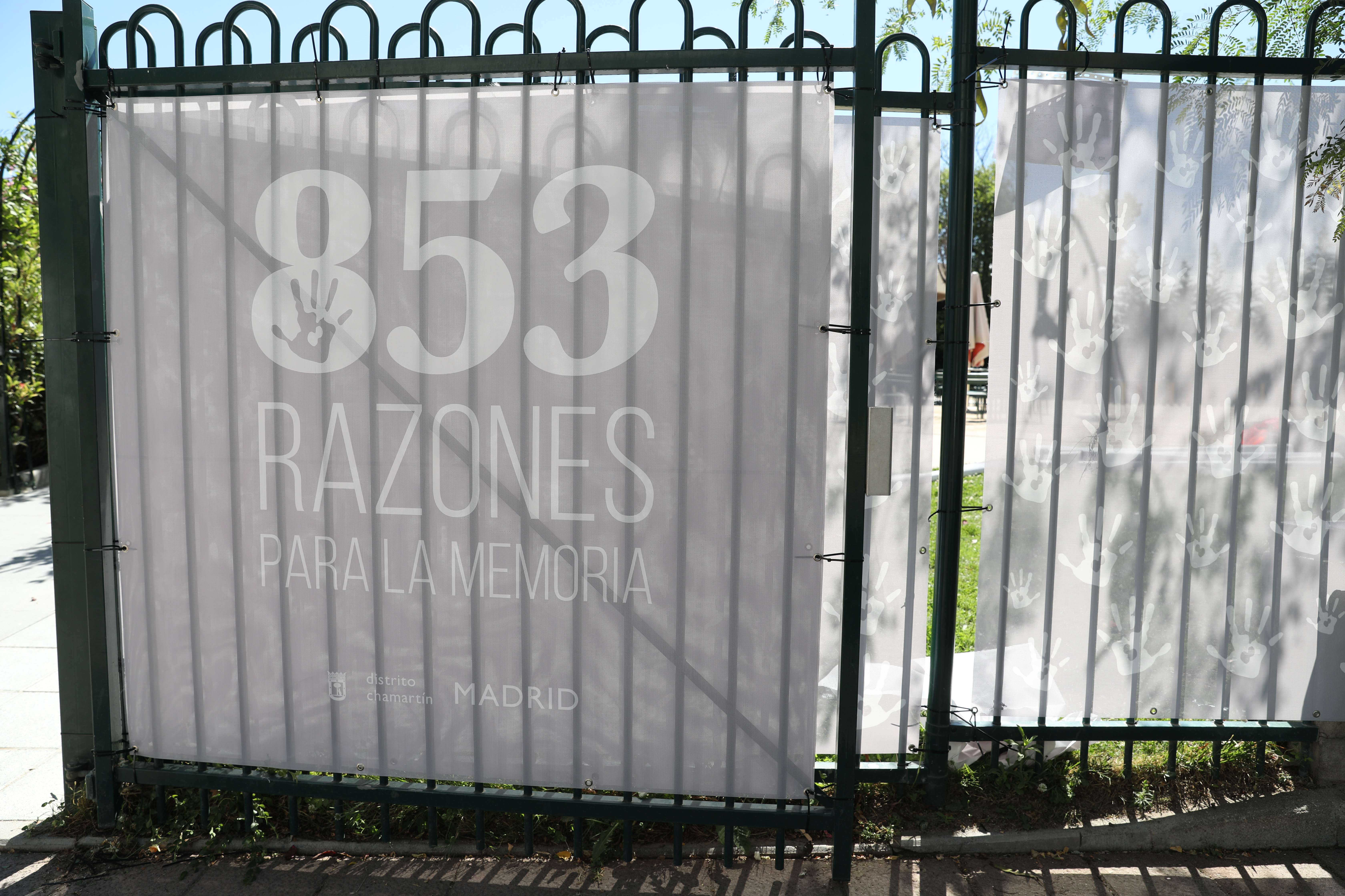 Esta mañana, los jardines Miguel Ángel Blanco han amanecido envueltos con una lona con 853 manos blancas que representan a todas las víctimas del terrorismo de ETA. Con este acto simbólico, la Junta Municipal de Chamartín recuerda a las personas asesinadas por la banda terrorista y conmemora el 24 aniversario del asesinato del que fuera concejal de la localidad vizcaína de Ermua.