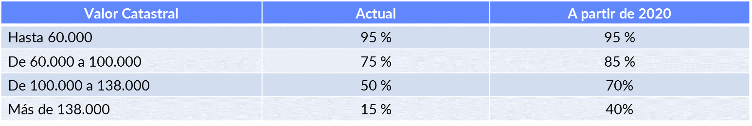 En concreto, se rebaja el tipo de gravamen general del Impuesto de Bienes Inmuebles del 0,510 % actual al 0,479 %. Se trata de una reducción del tipo general de más del 6 % que supondrá un ahorro superior a los 62 millones. El objetivo es alcanzar el 0,4 % fijado en el acuerdo de Gobierno a lo largo de la legislatura.