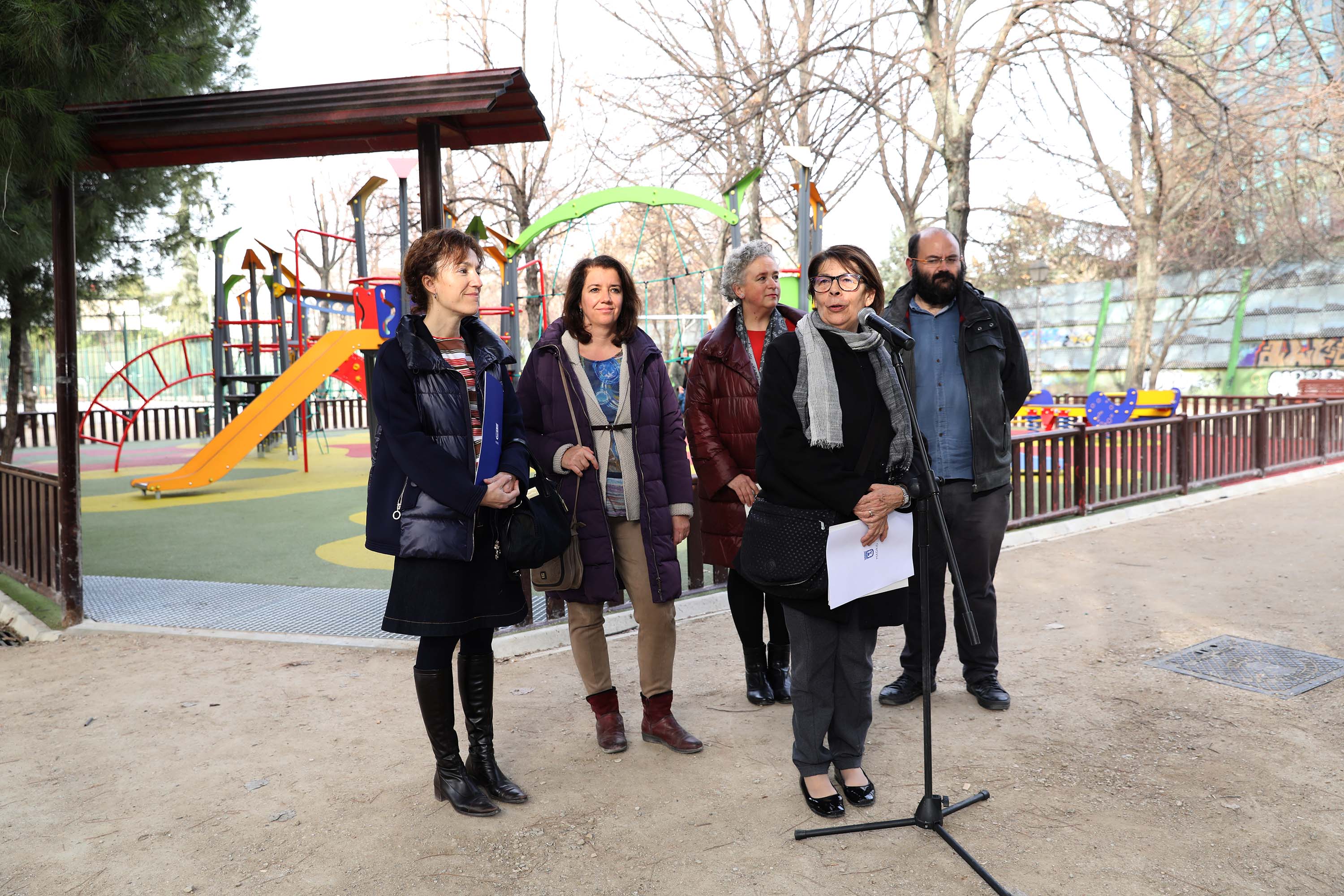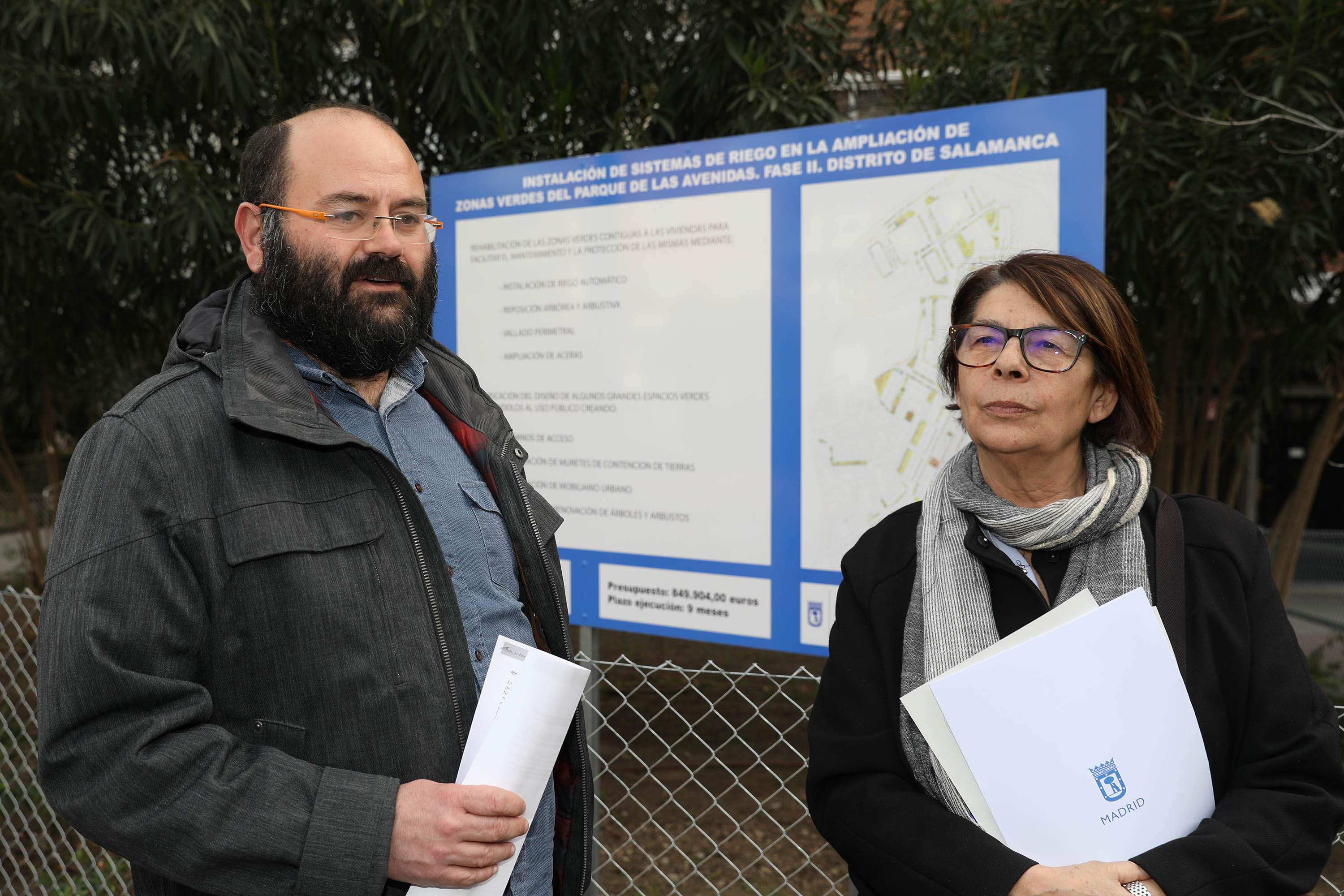 La delegada del Área de Medio Ambiente y Movilidad, Inés Sabanés, ha visitado hoy junto a Pablo Carmona, concejal de los distritos de Salamanca y Moratalaz, las actuaciones de rehabilitación y remodelación de los parques Breogán y Avenidas Sur en el distrito de Salamanca. Las reformas, con un presupuesto de 1.012.770 euros, han incluido la mejora de los accesos, una nueva pavimentación, la instalación de sistemas de drenajes sostenibles, la dotación de mobiliario urbano, la creación de un espacio deportivo y otro para perros, así como un nuevo pavimento de caucho en el área infantil.