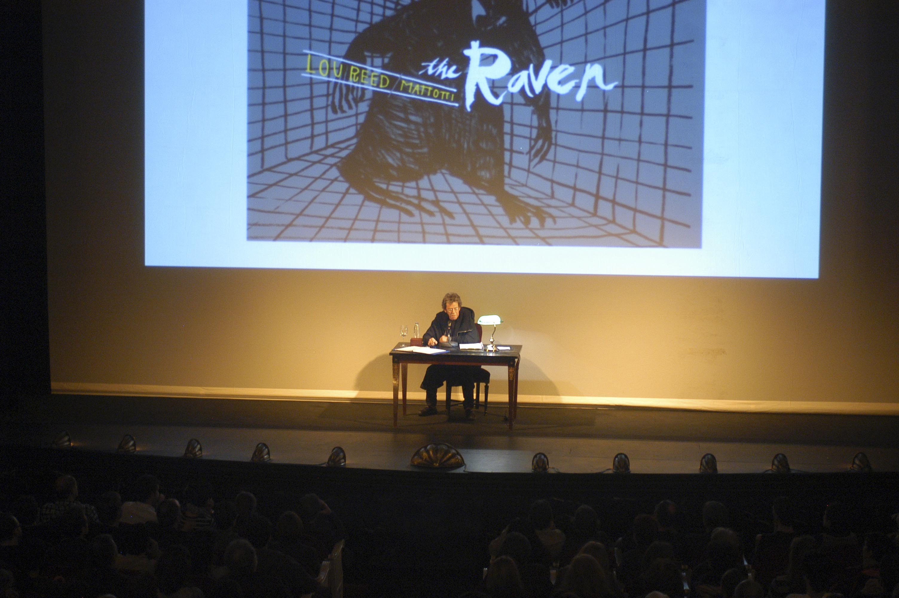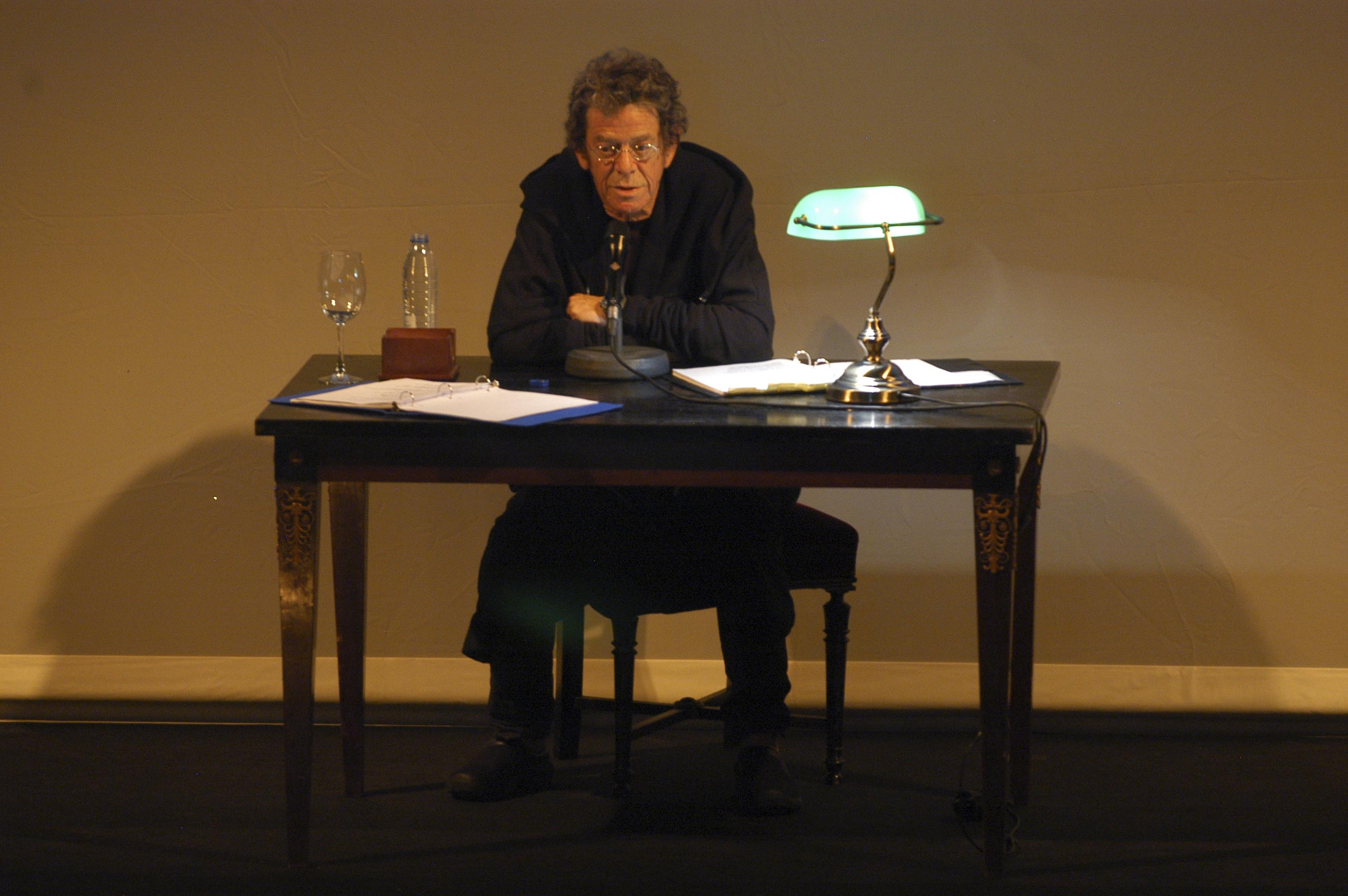 El polifacético artista, Lou Reed, durante el recital poético que ha ofrecido este mediodía en el teatro Español.