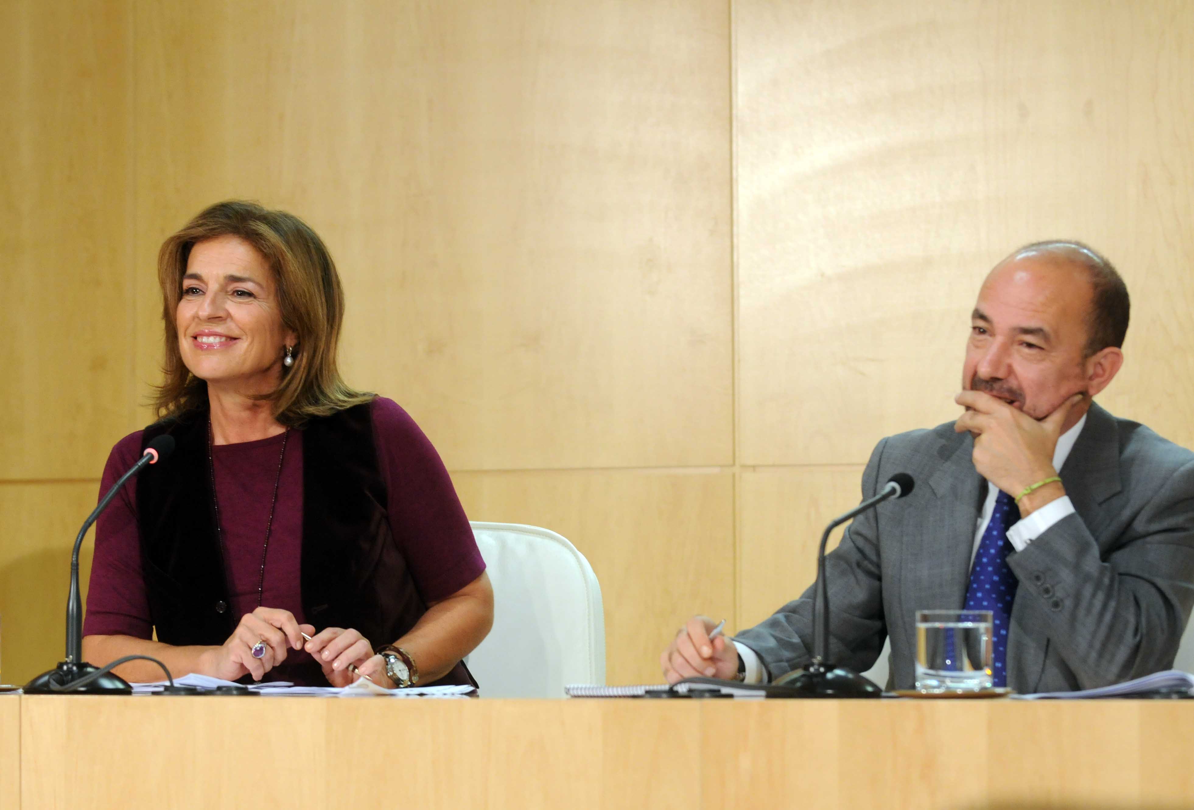 Distintos momentos de la rueda de prensa que, tras la reunión de la Junta de Gobierno, ha ofrecido la alcaldesa de Madrid, Ana Botella, acompañada por el vicealcalde, Miguel Ángel Villanueva. Entre los asuntos tratados, la nueva ordenanza que regula el sector del taxi en la capital.